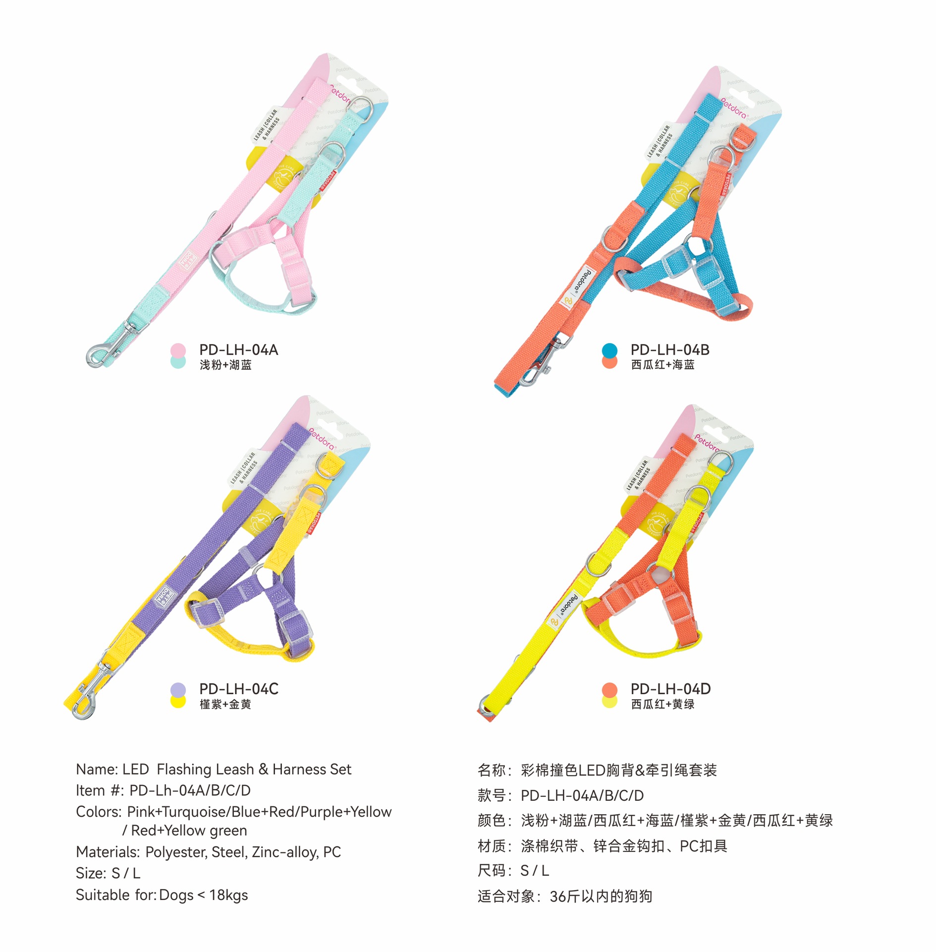 PETDORA 멋진 LED 버클 면화 개 견인 로프 가슴과 등 조정 가능한 질식 방지 개 목 반지 세트스토어 가기