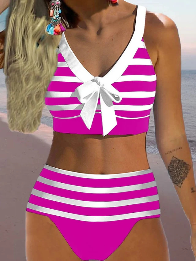 2024 새로운 새로운 줄무늬 나비 여성 플러스 사이즈 비치 무역 비키니 수영복스토어 가기