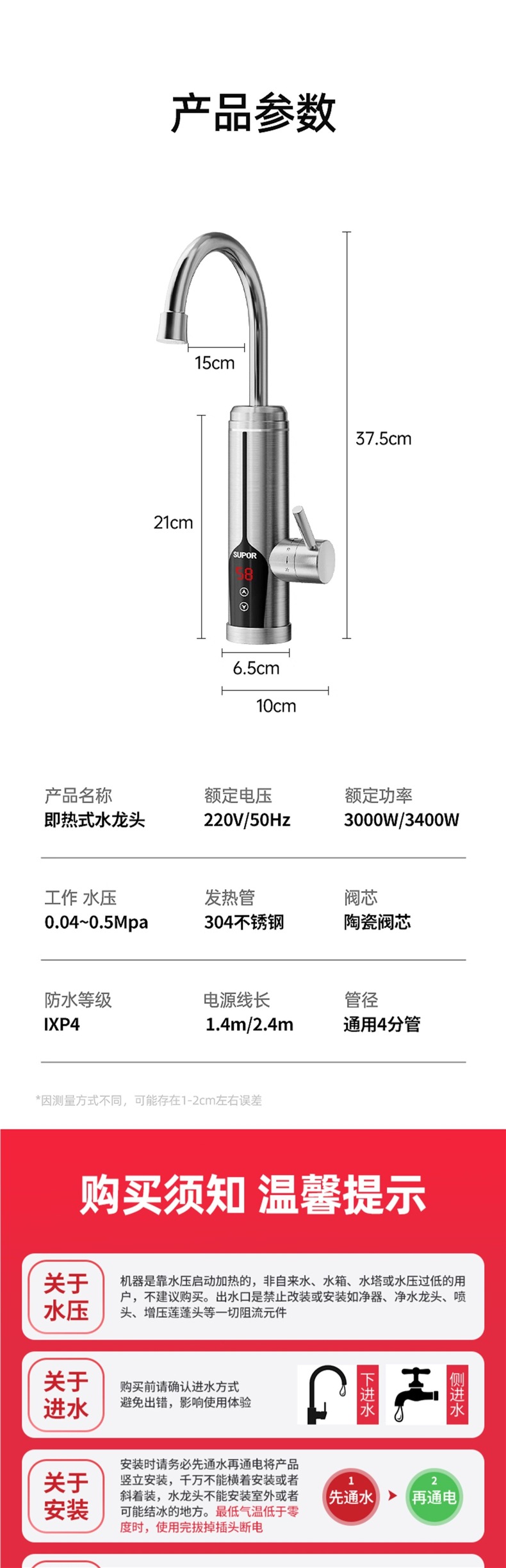 전기 수도꼭지 히터 인스턴트 난방 온수기 주방 가정용 전기 난방 냉기와 뜨거운 이중 목적스토어 가기