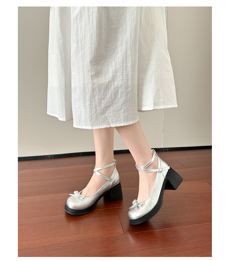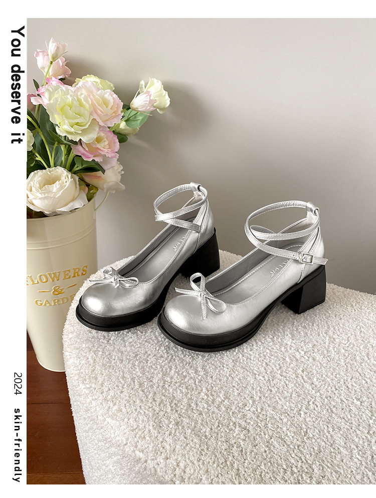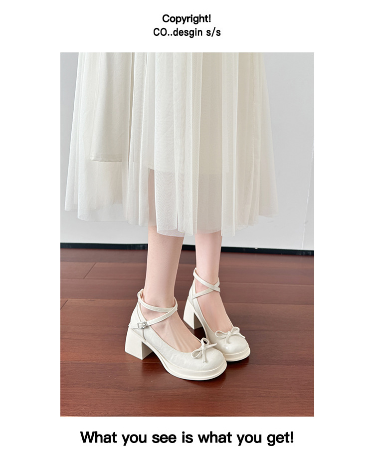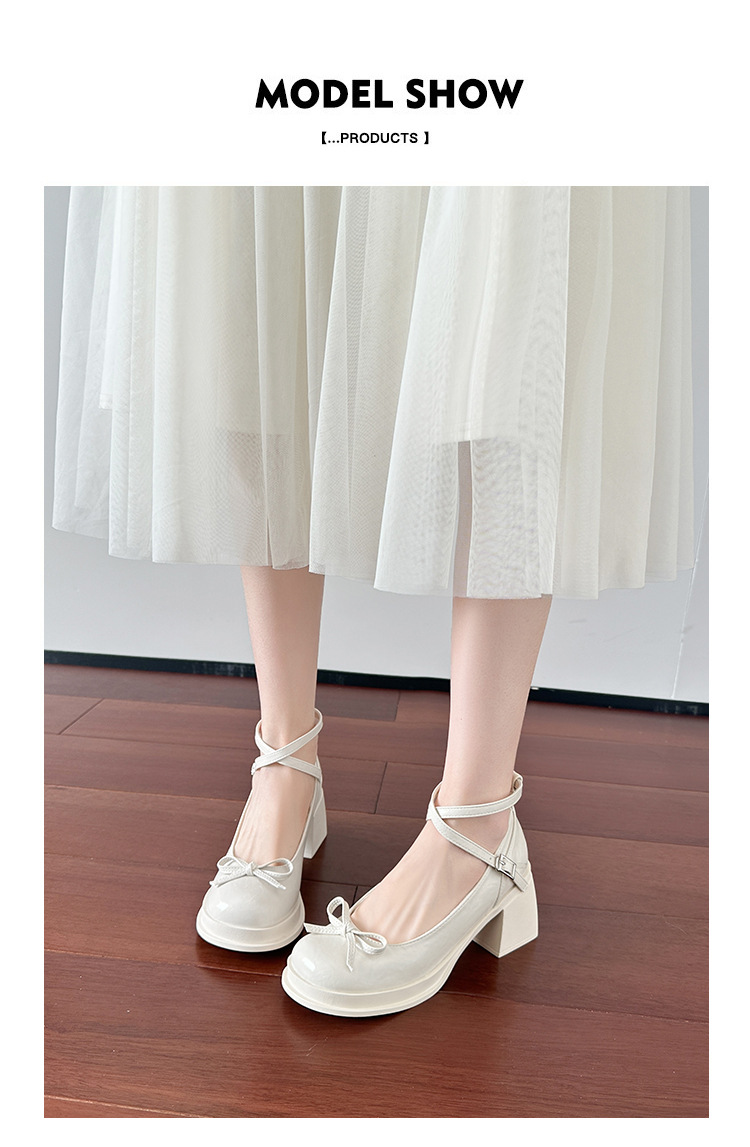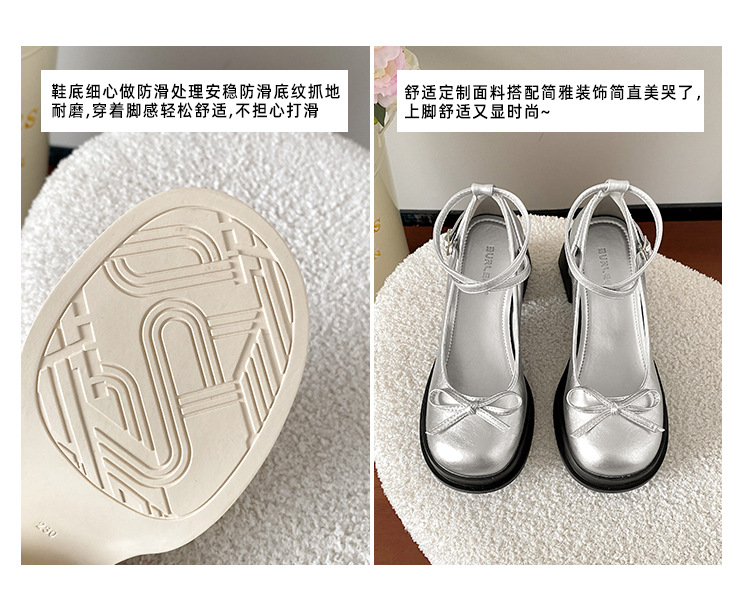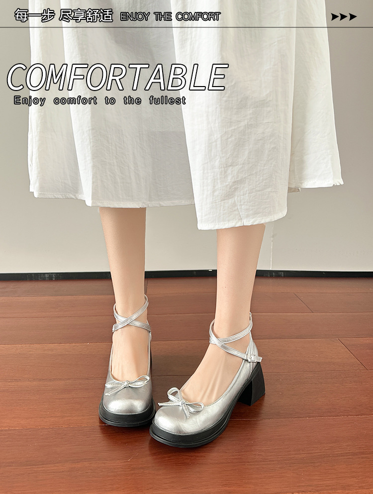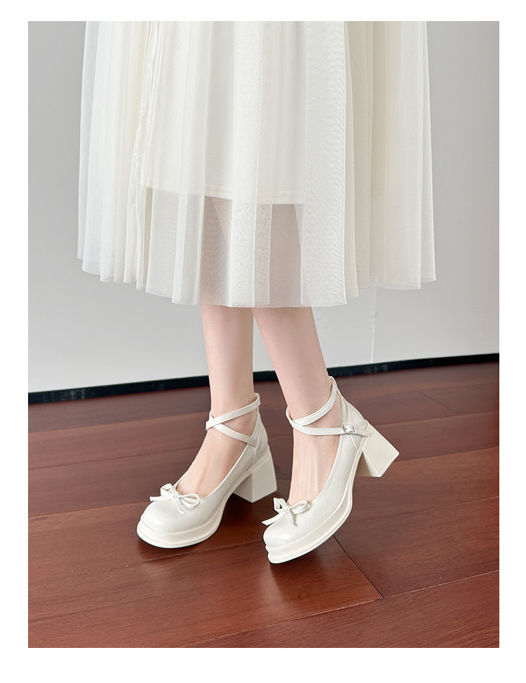 프랑스 소프트 가죽 두꺼운 힐 플랫폼 메리 제인 신발 요정 높이 올리는 활 버클 얕은 입 하이힐스토어 가기