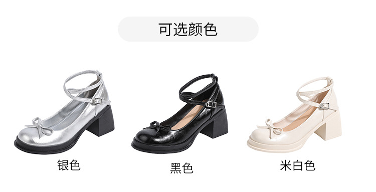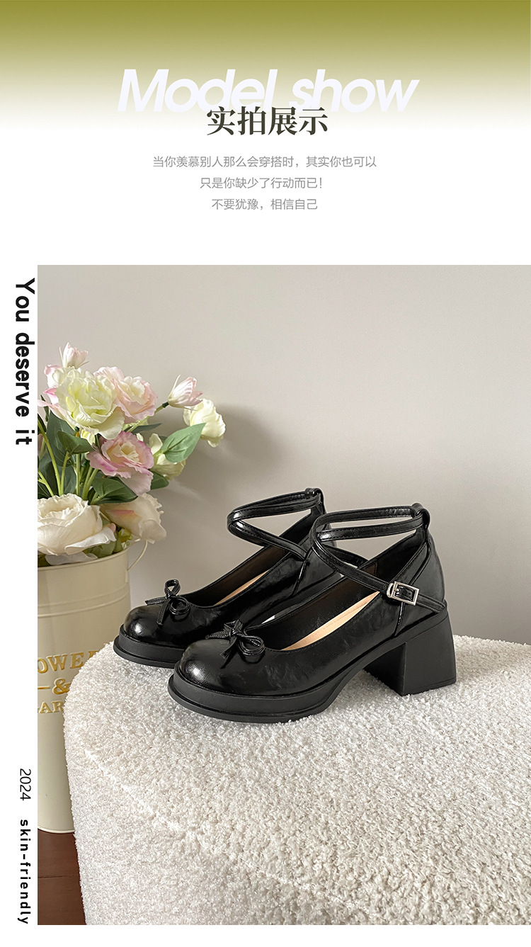 프랑스 소프트 가죽 두꺼운 힐 플랫폼 메리 제인 신발 요정 높이 올리는 활 버클 얕은 입 하이힐