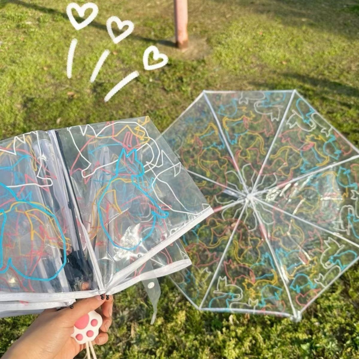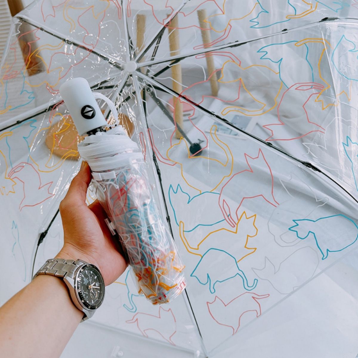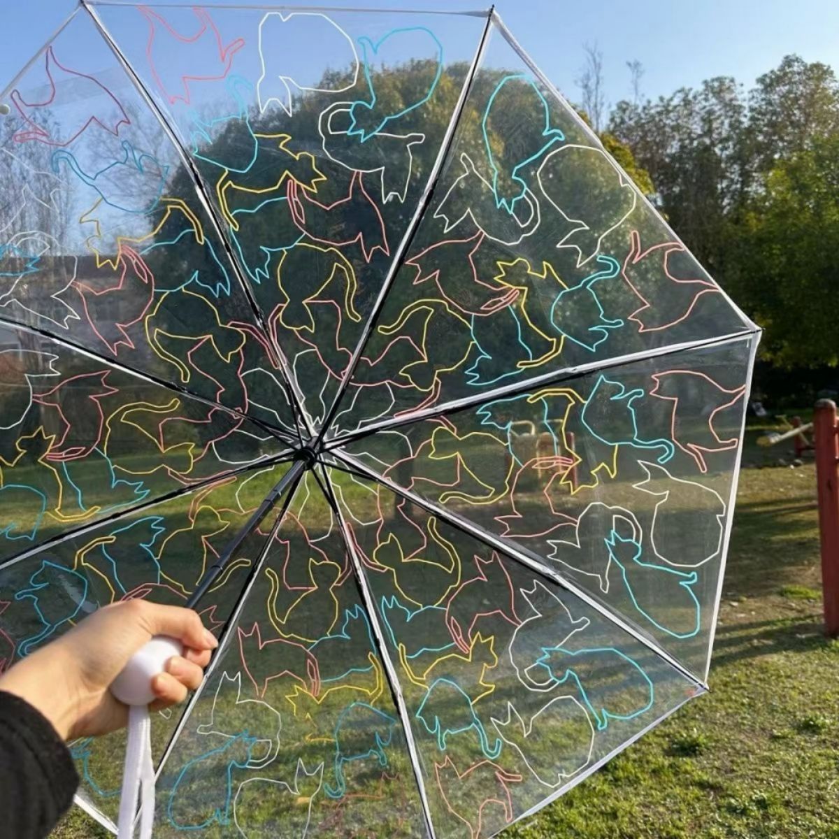 원래 고양이 창조적 인 투명 우산 3 배 전체 자동 인터넷-유명한 귀여운 접는 어린이 성인 두꺼운 소녀스토어 가기