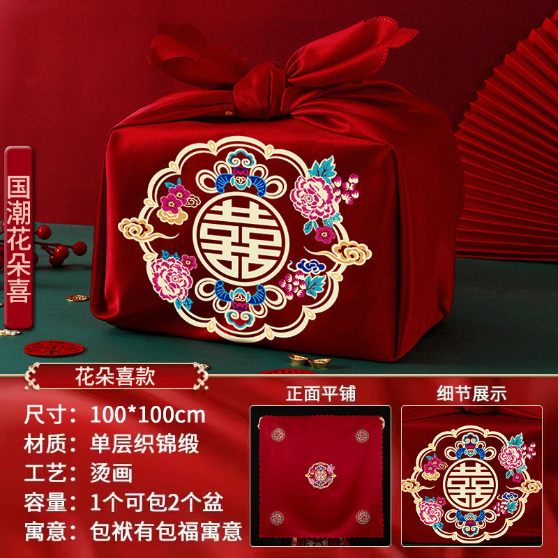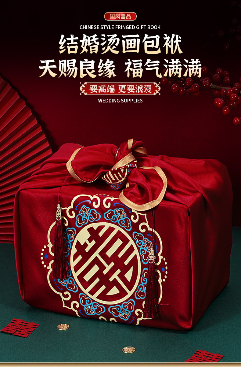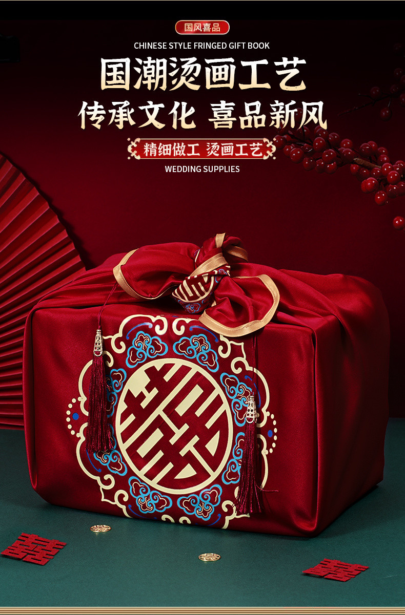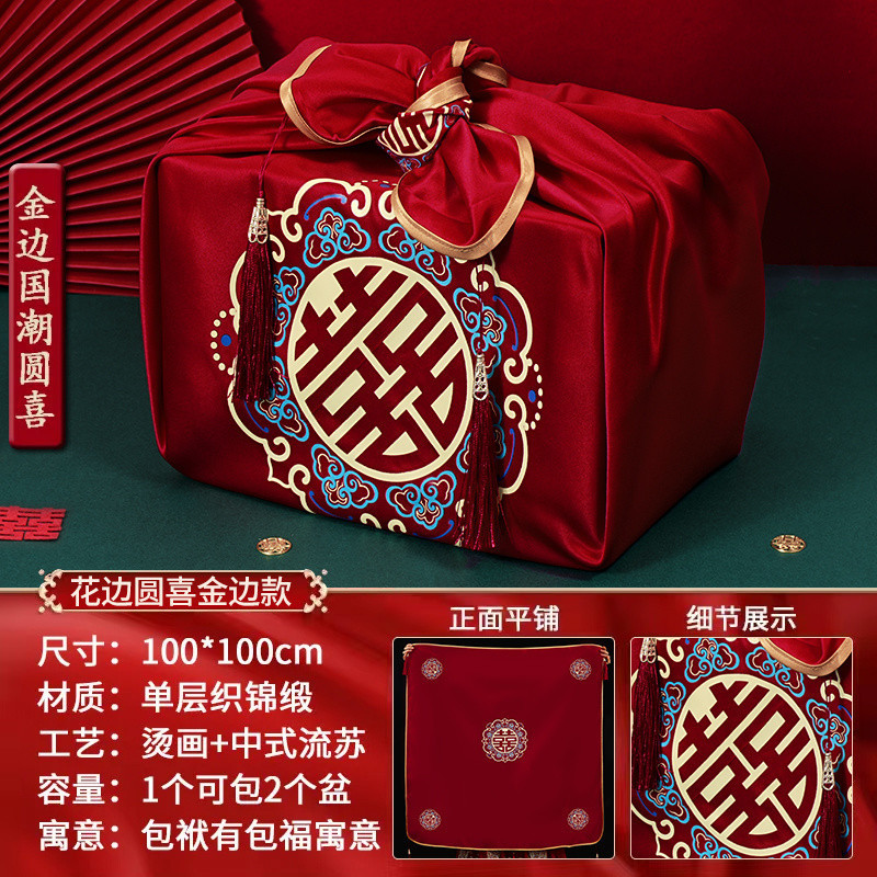 웨딩 포장 천 신부 함께 빨간 가방 큰 Dowry 가방 분지 천 웨딩 용품 해피 분지 빨간 천