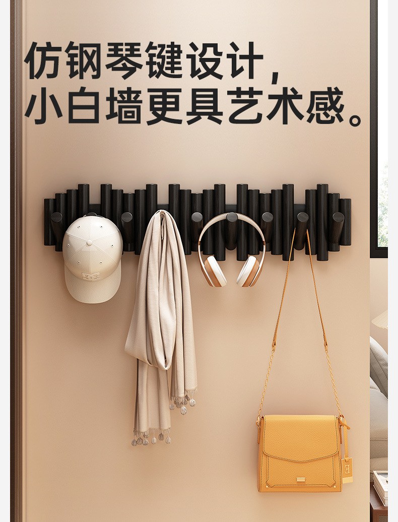 솔리드 우드 피아노 키 옷걸이 벽 입구 문 교수형 후크 입구 코트 랙 펀치 프리 옷 후크