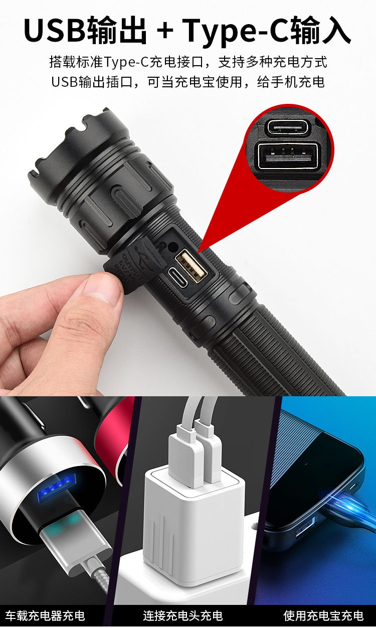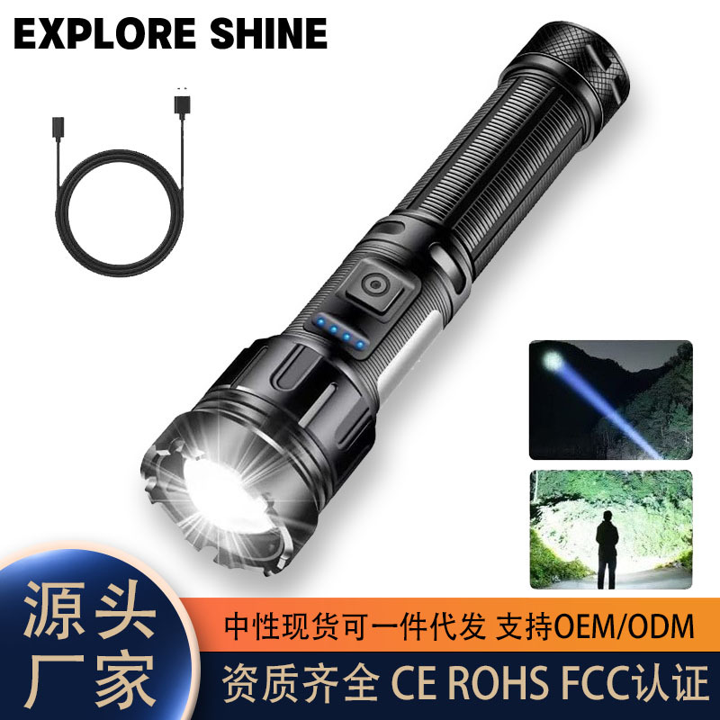 국경 폭발 흰색 레이저 줌 손전등 유형-C 충전 COB 측 라이트 레드 흰색 자기 출력