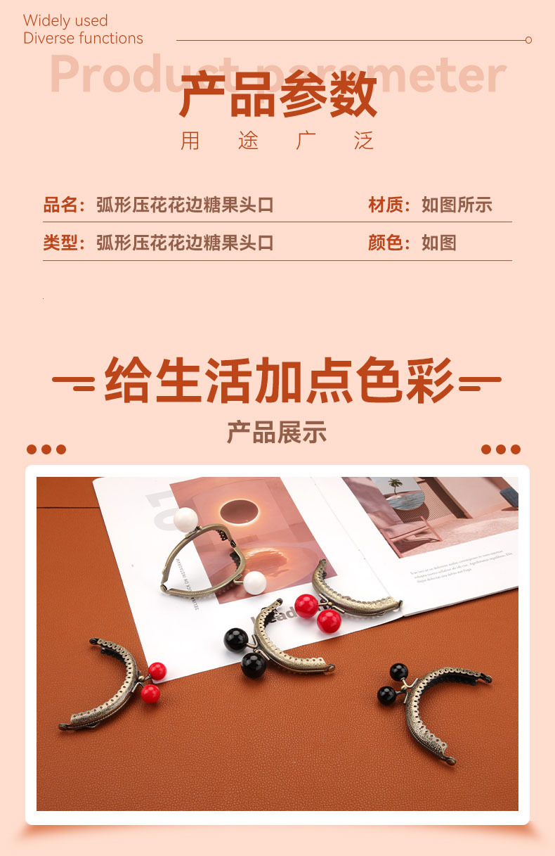 10.5CM 단일 귀 반원 양각 레이스 21MM 큰 구슬 캔디 헤드 골드 DIY 핀홀 백 액세서리