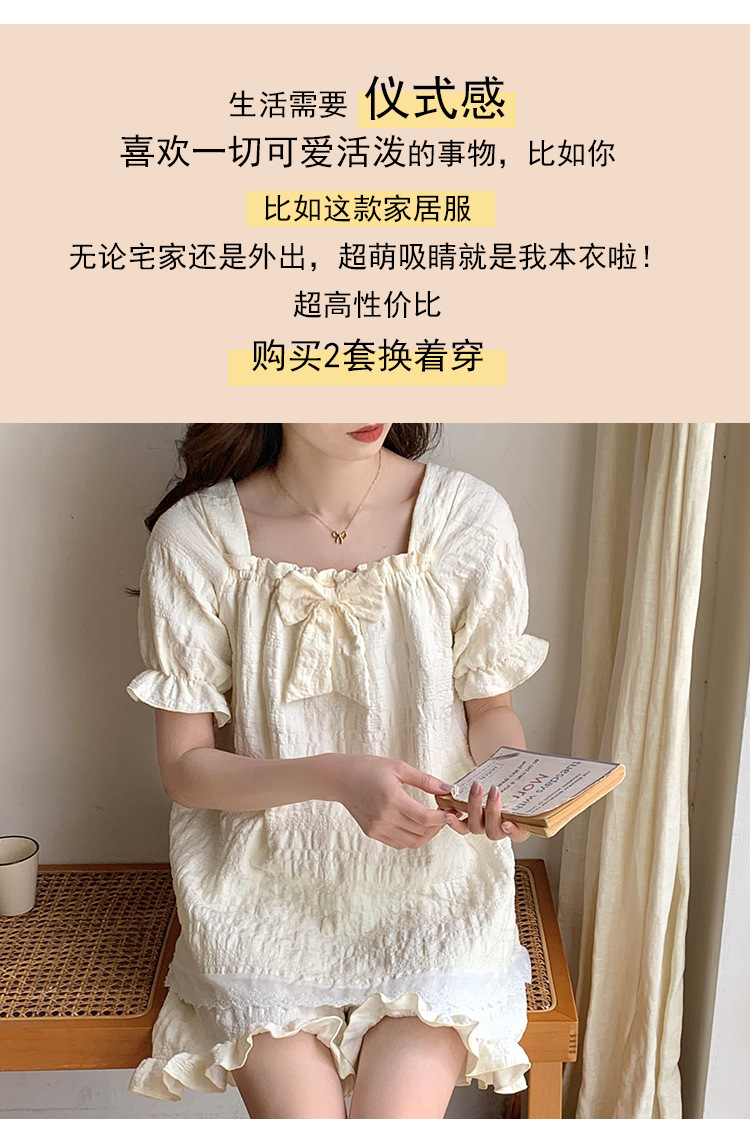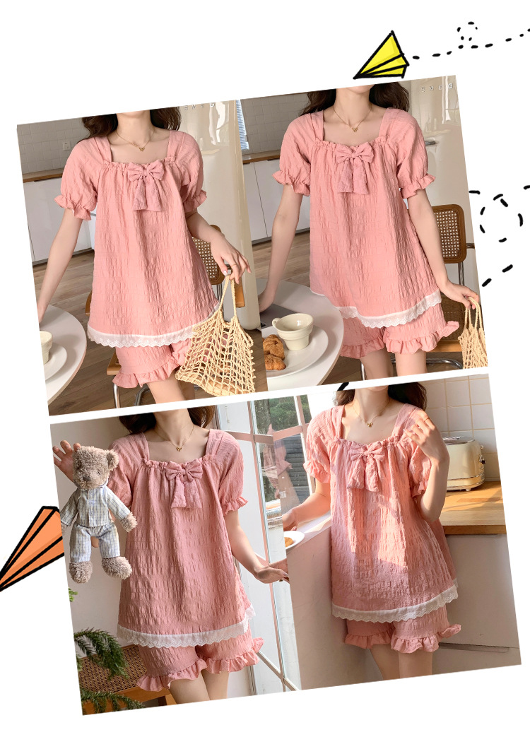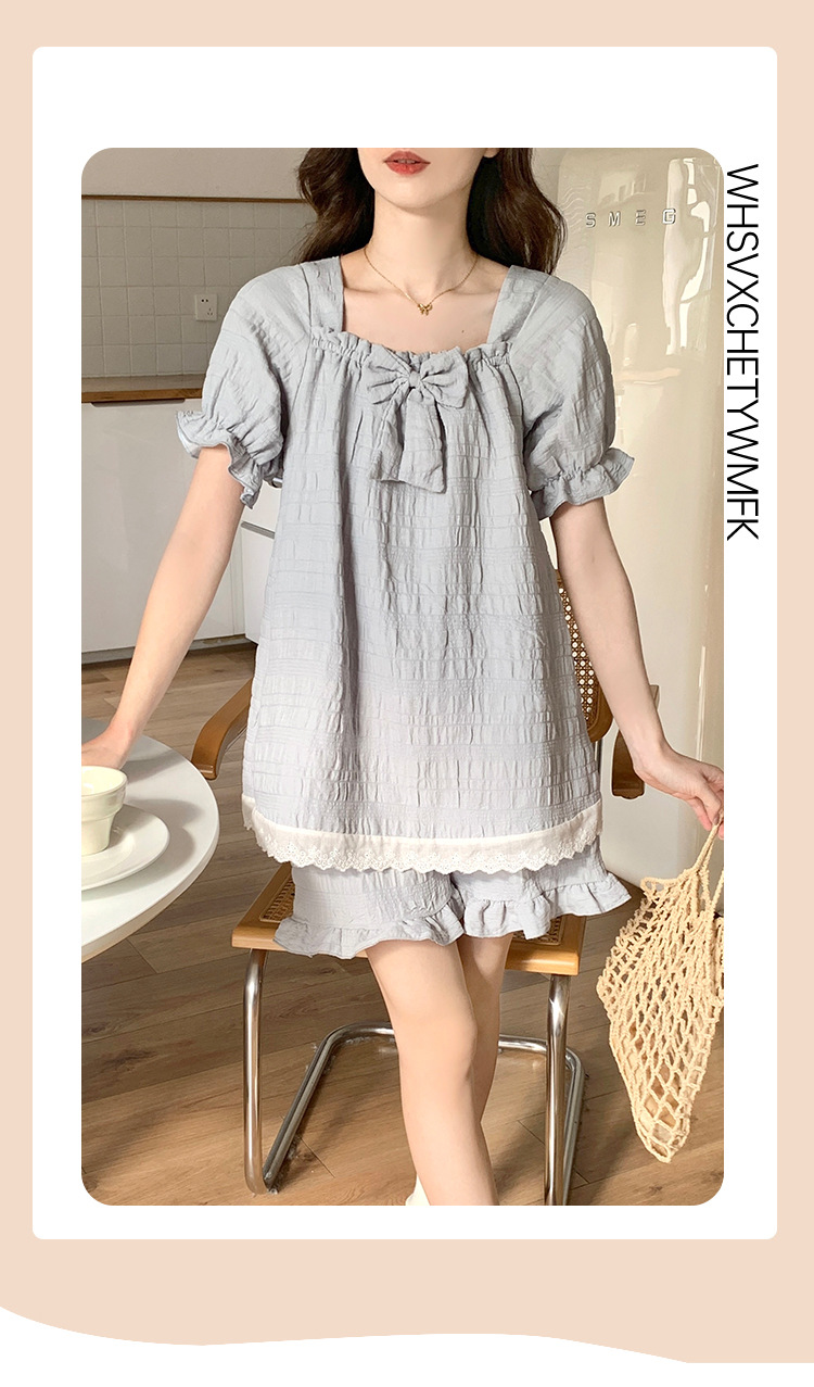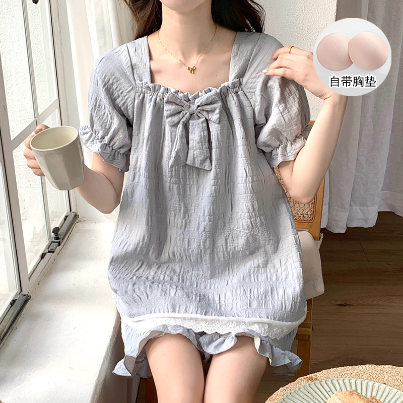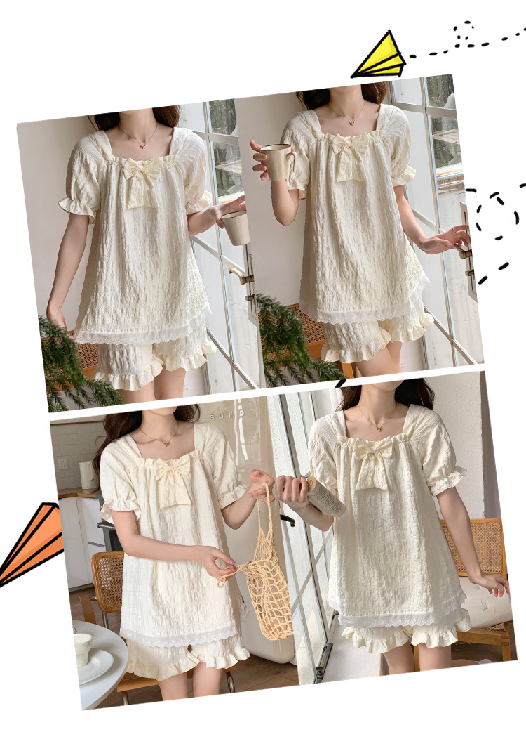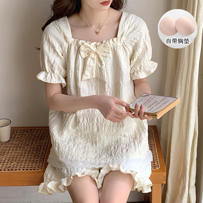 새로운 잠옷 여성 여름 가슴 패드 짧은 소매 반바지 구름 코튼 레이스 스위트 세트 홈 의류 크로스 보더 도매스토어 가기