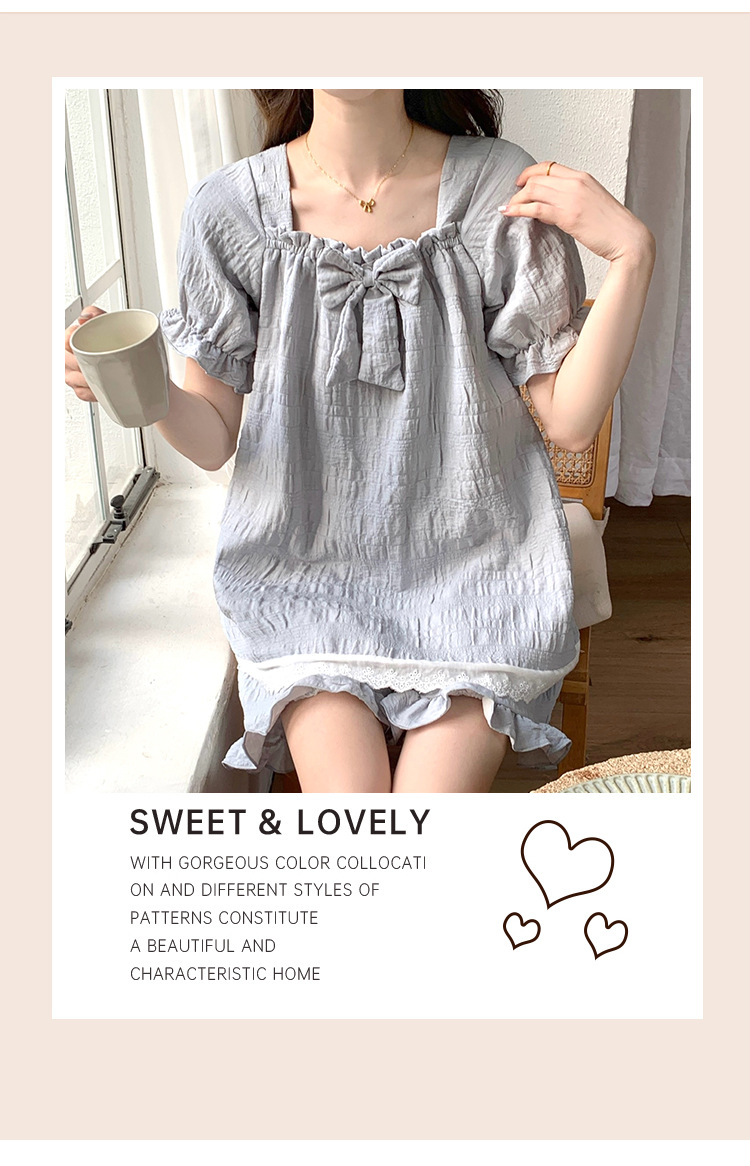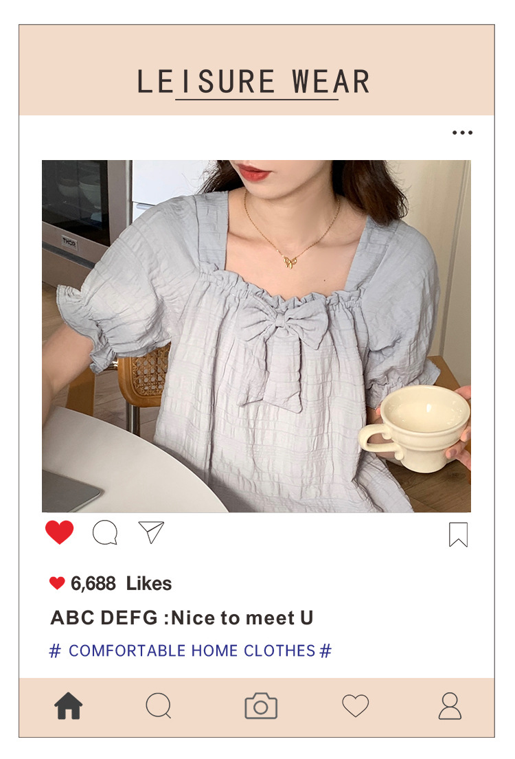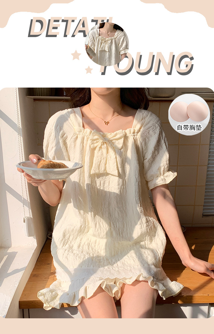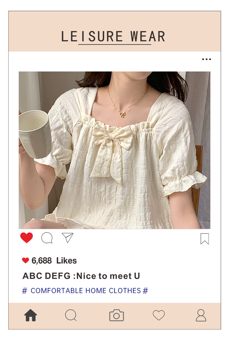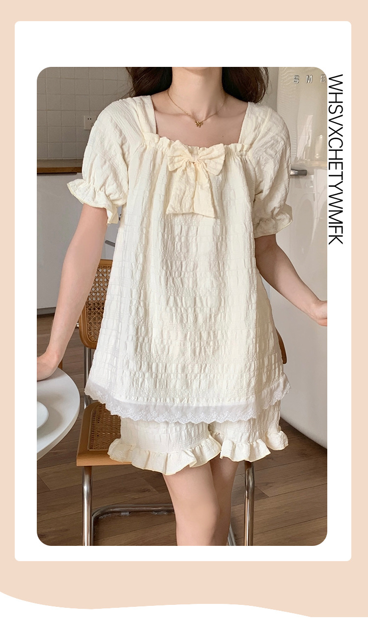 새로운 잠옷 여성 여름 가슴 패드 짧은 소매 반바지 구름 코튼 레이스 스위트 세트 홈 의류 크로스 보더 도매스토어 가기