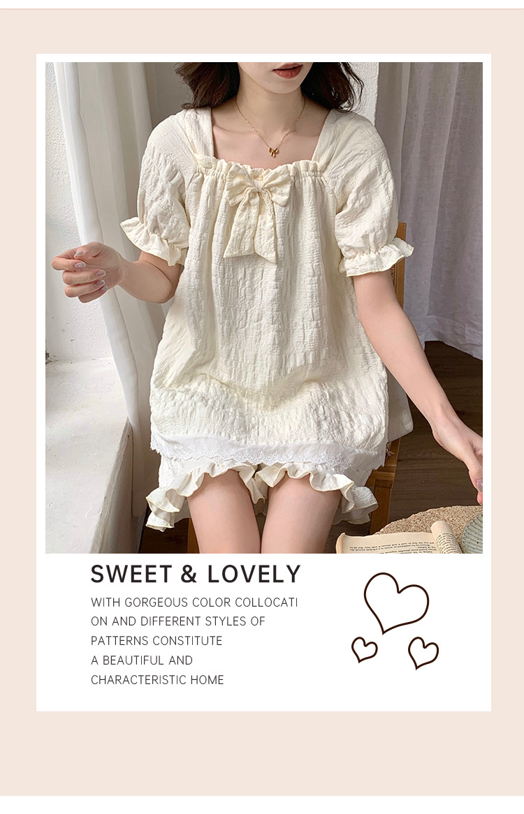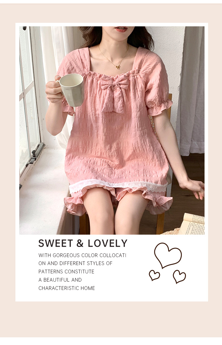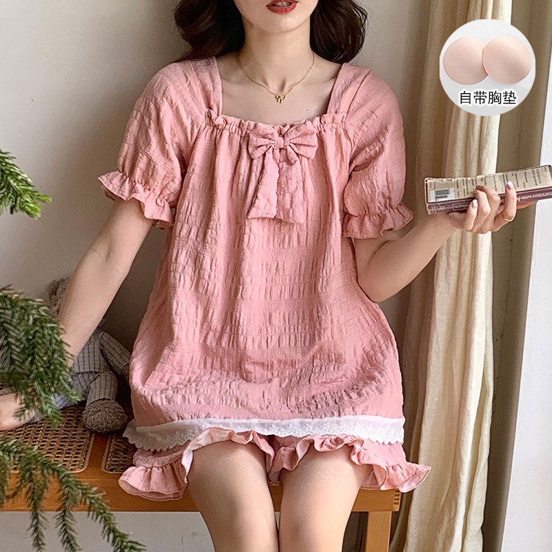 새로운 잠옷 여성 여름 가슴 패드 짧은 소매 반바지 구름 코튼 레이스 스위트 세트 홈 의류 크로스 보더 도매