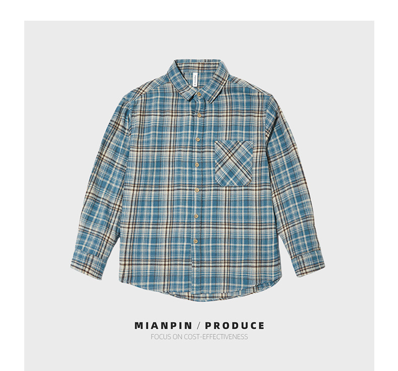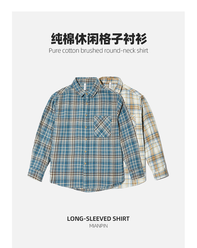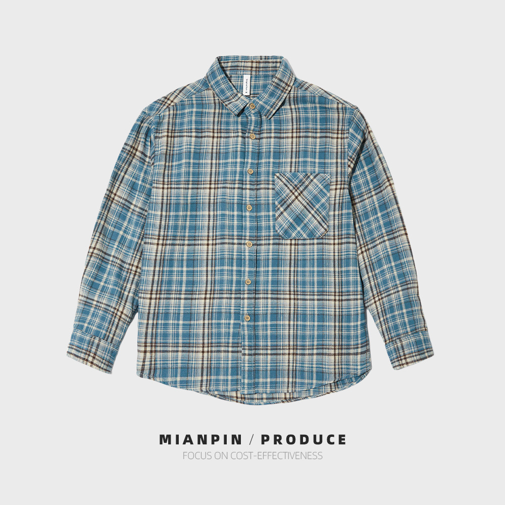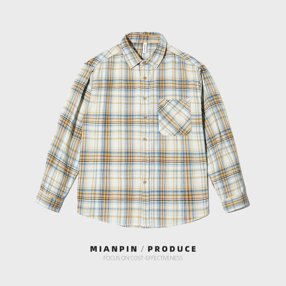 봄면 남자의 긴 소매 셔츠 캐주얼 빈티지 격자 무늬 셔츠 느슨한 편안한 탑 유행 재킷 D293