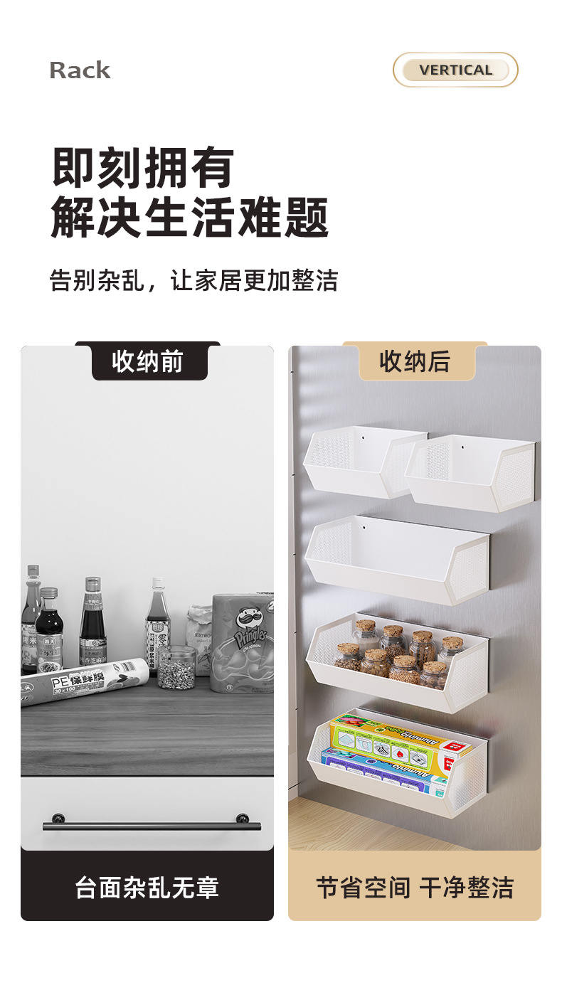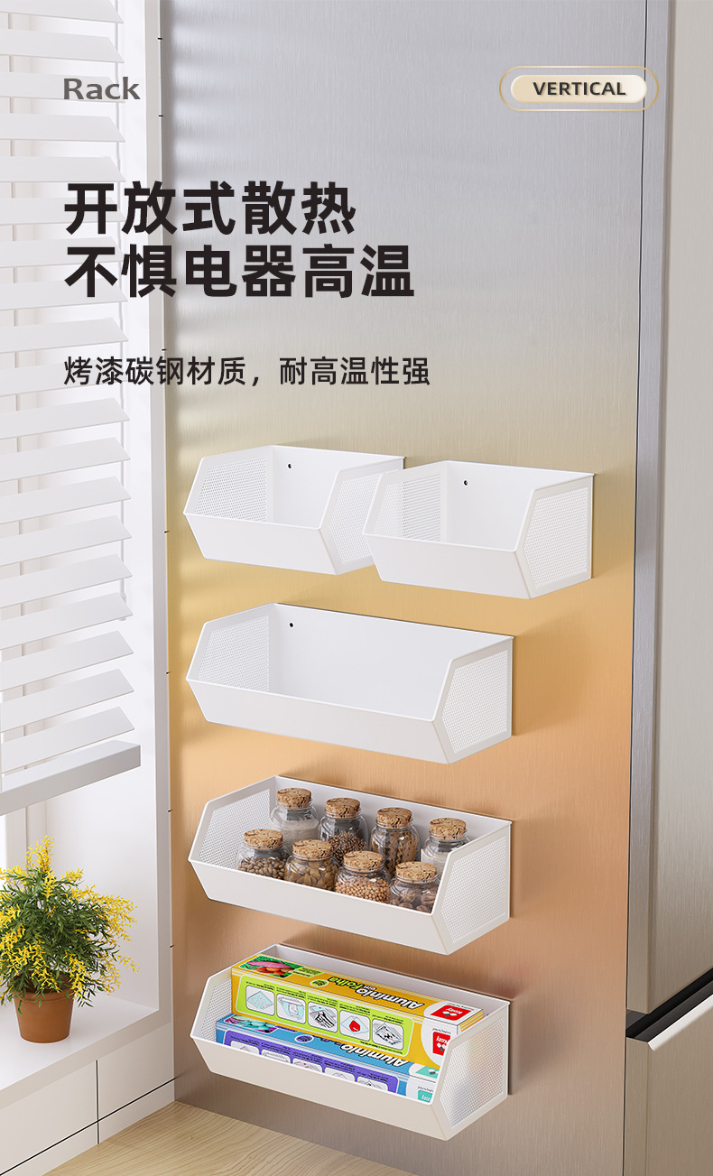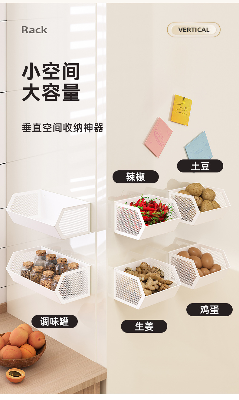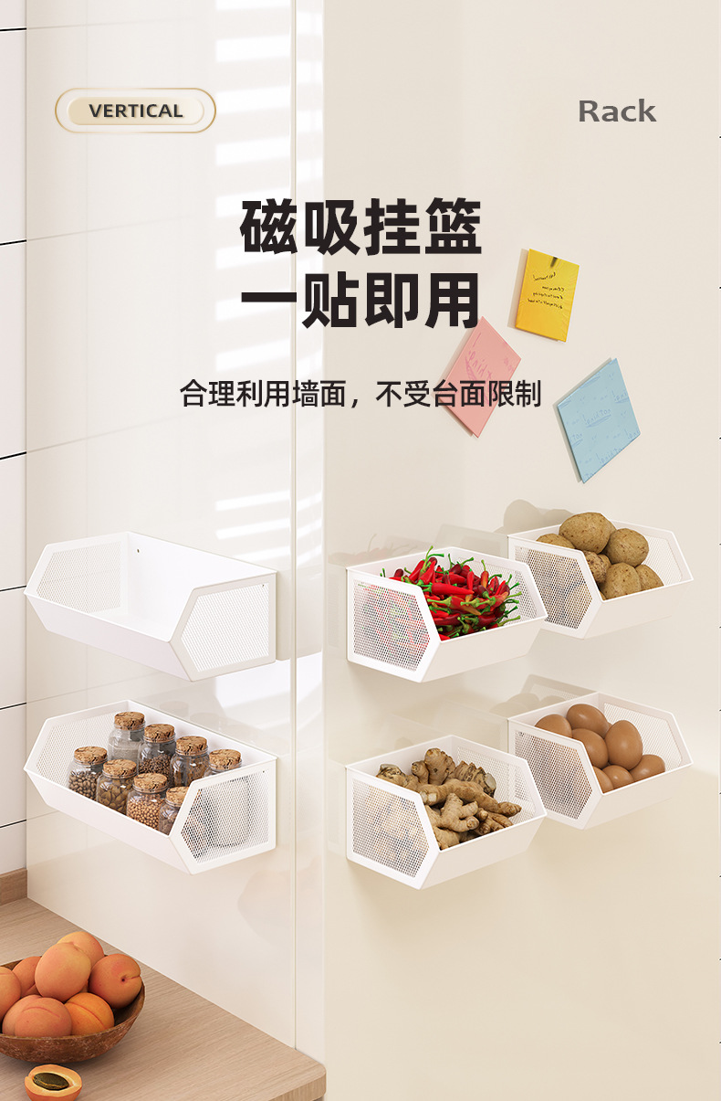 주방 자기 흡수 냉장고 저장 랙 저장 상자 종말, 생강 및 마늘 매달린 바구니 펀칭 사이드 스토리지 사이드 사이드 조미료스토어 가기