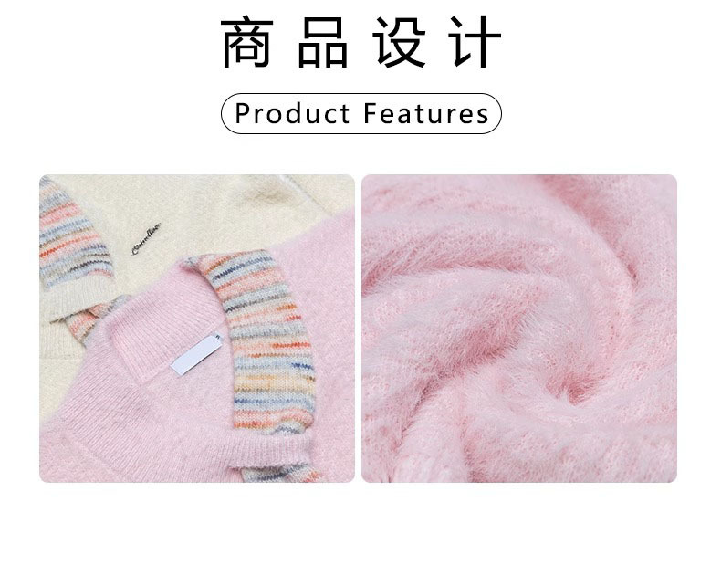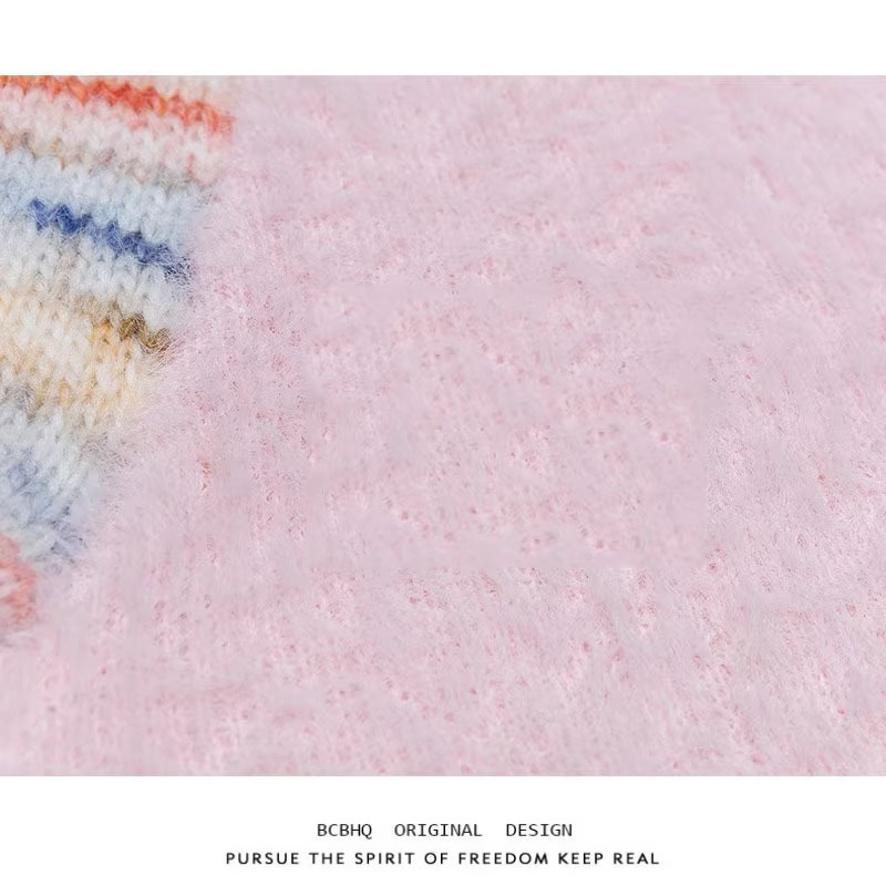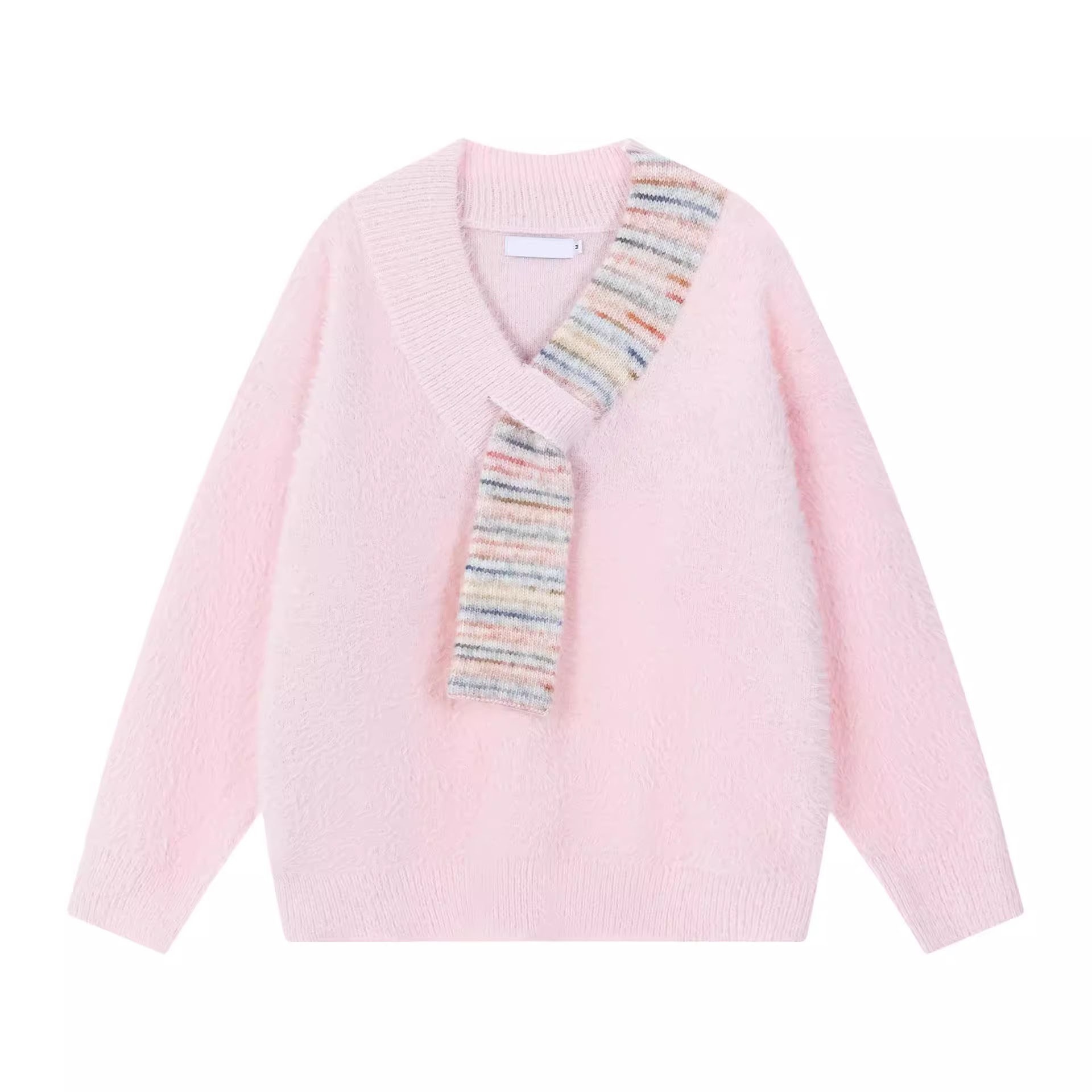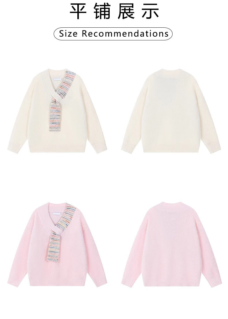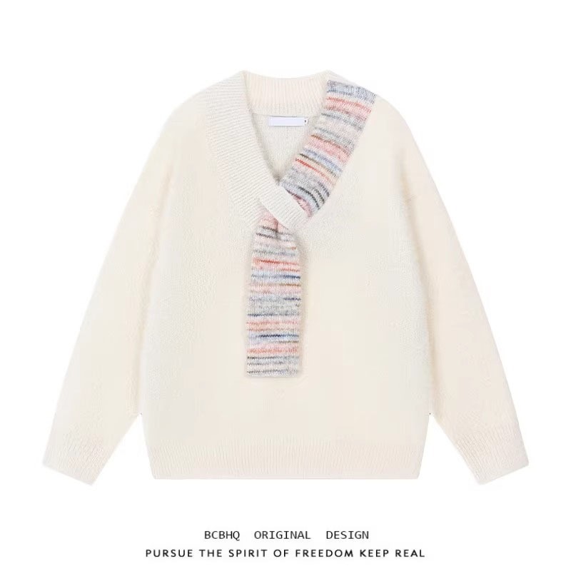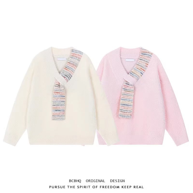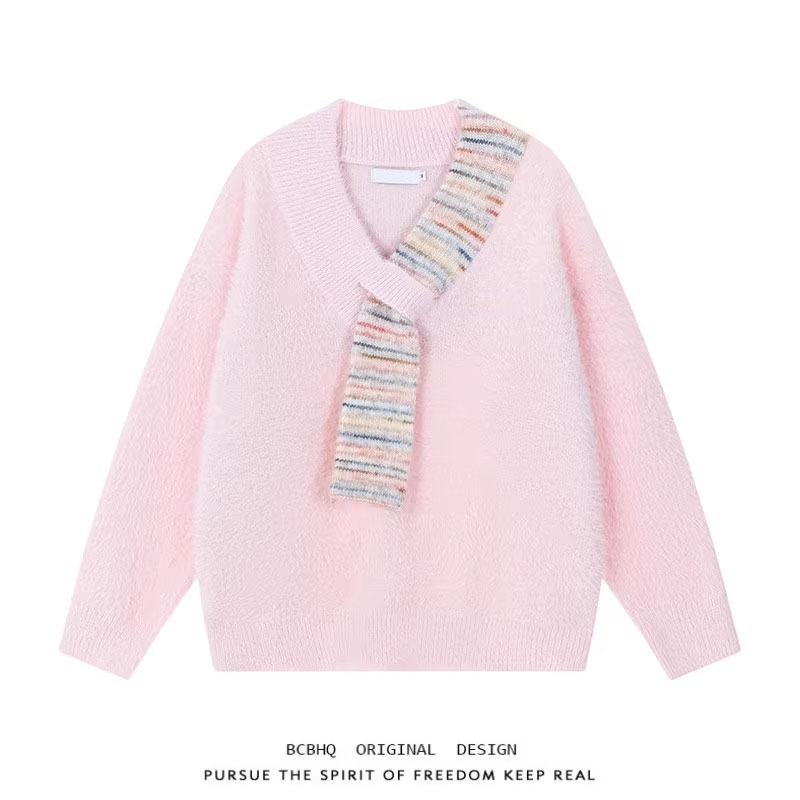 새해 레드 스카프 스웨터 남성과 여성의 스티칭 디자인 센스 커플 셔츠 캐주얼 올 매치 모조 밍크 헤어 소프트 스웨터 트렌디스토어 가기