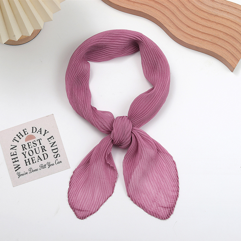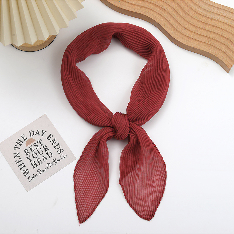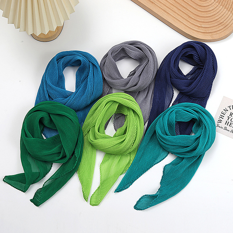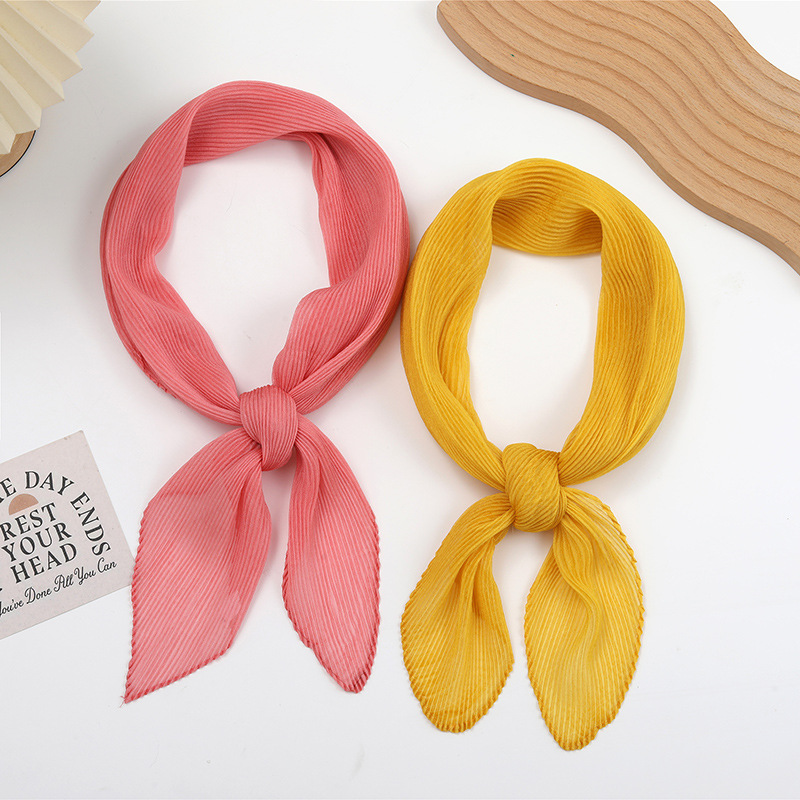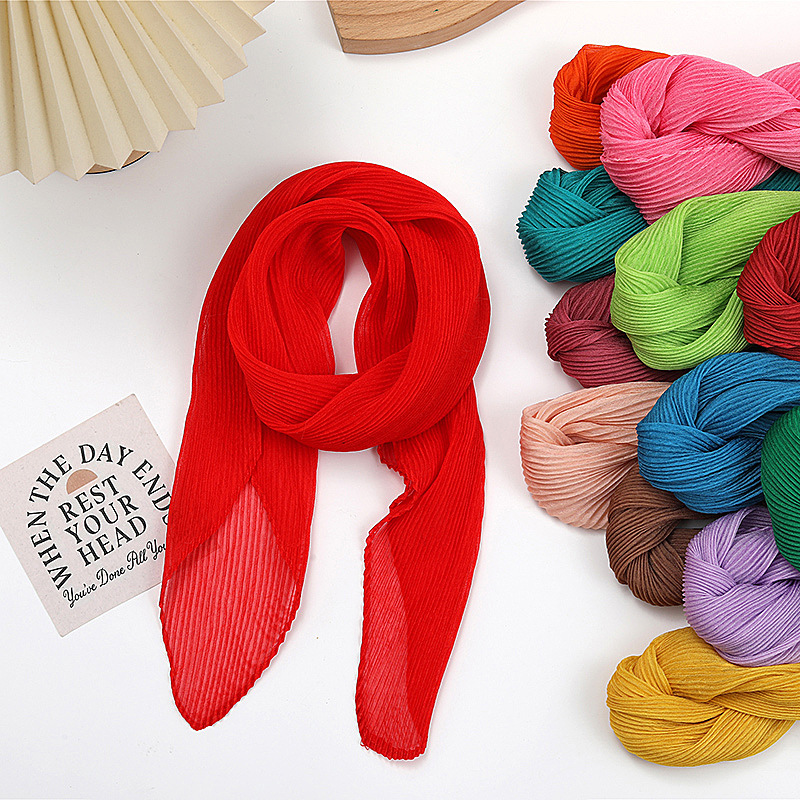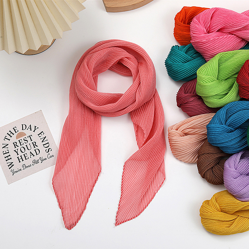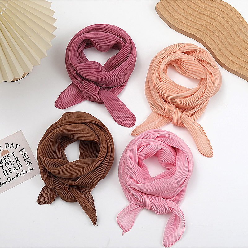 단색 구겨진 시폰 스카프 예술적 모든 경기 주름 스카프 여성의 봄과 가을 부드러운 통기성 다이아몬드 작은 스카프 가을과 겨울