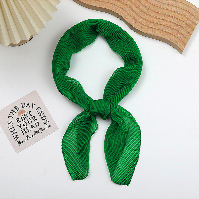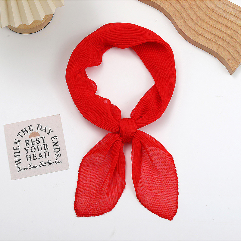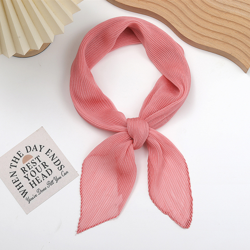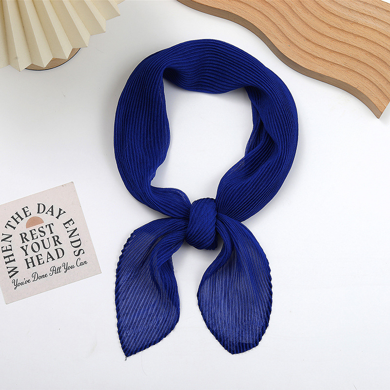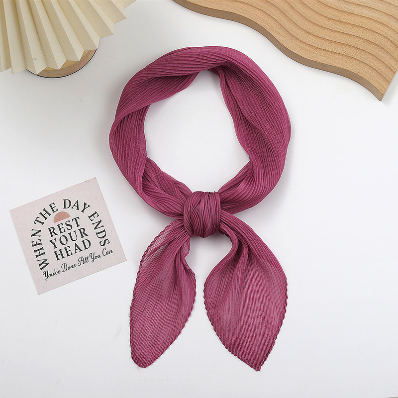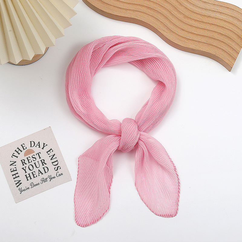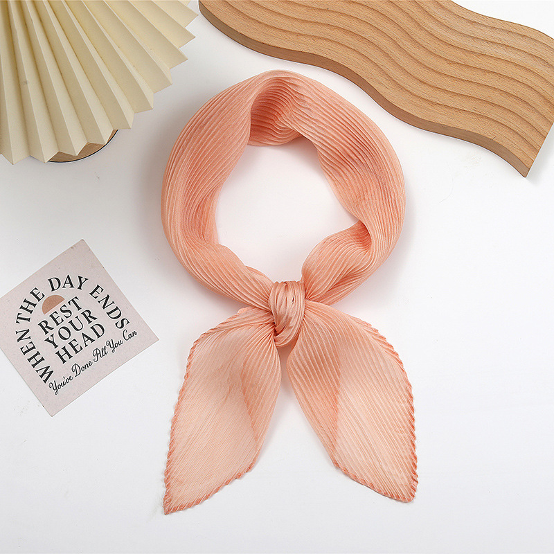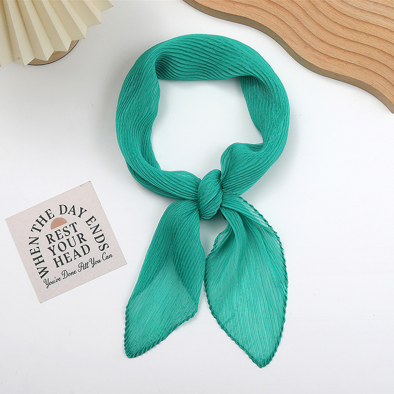 단색 구겨진 시폰 스카프 예술적 모든 경기 주름 스카프 여성의 봄과 가을 부드러운 통기성 다이아몬드 작은 스카프 가을과 겨울