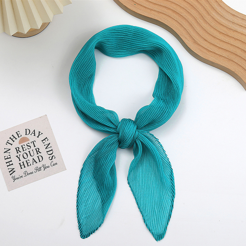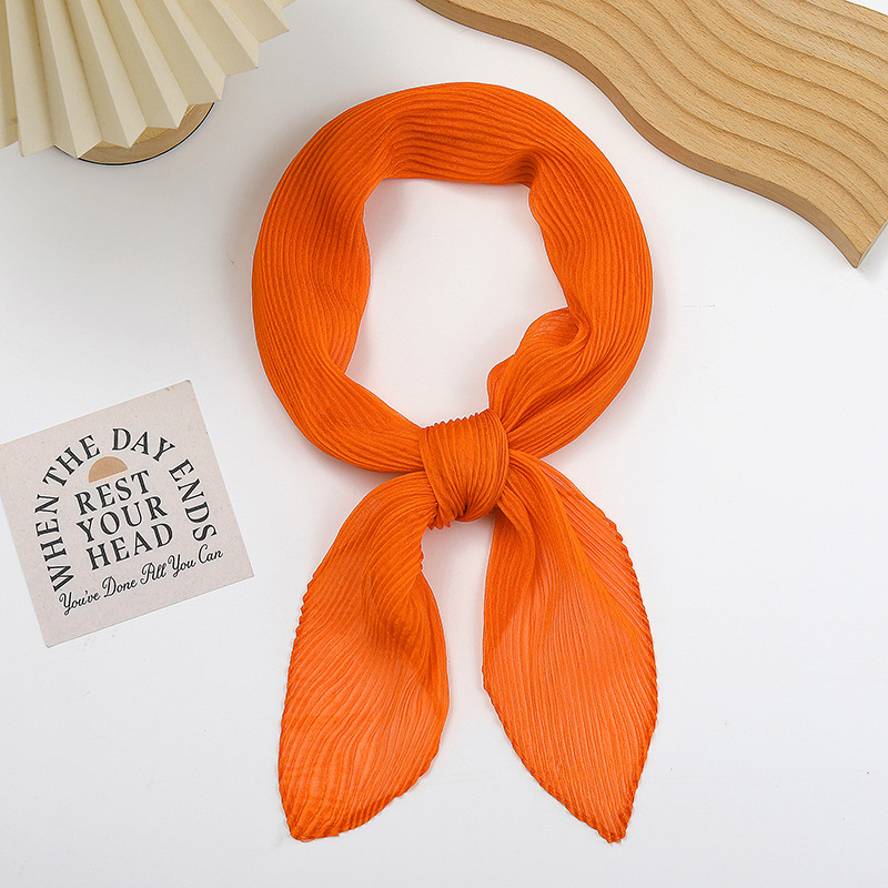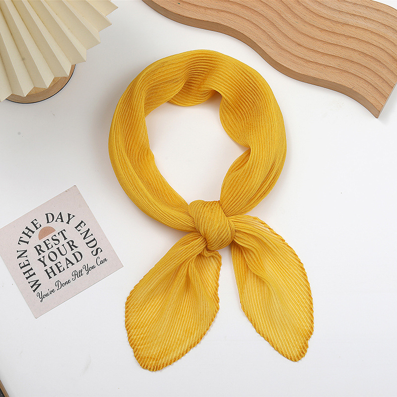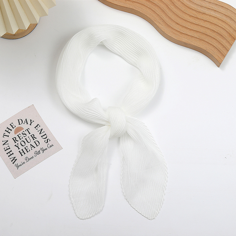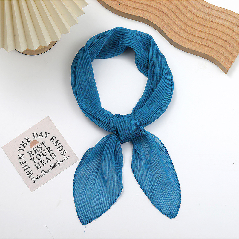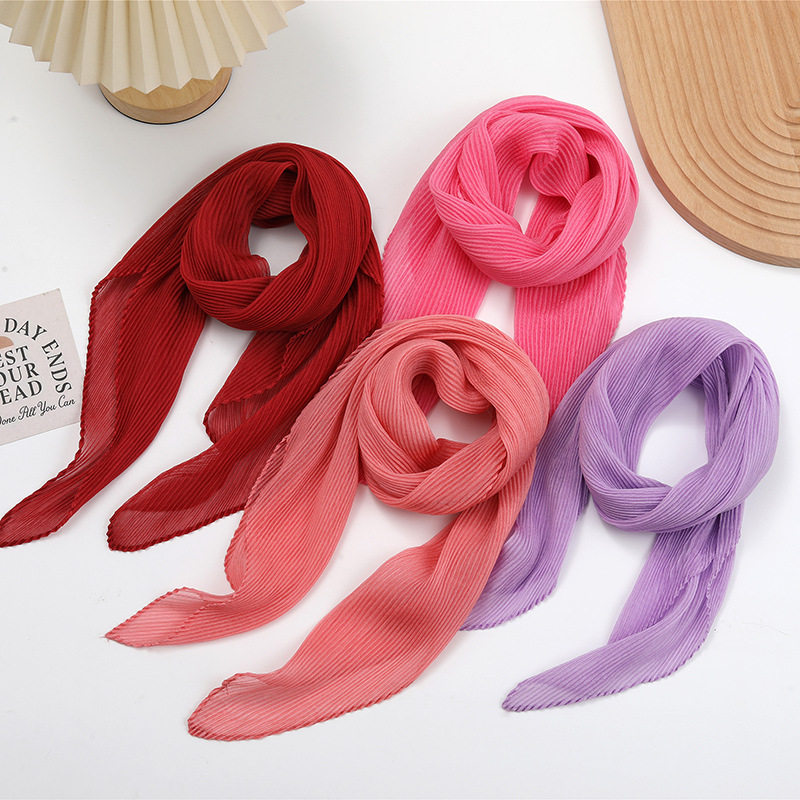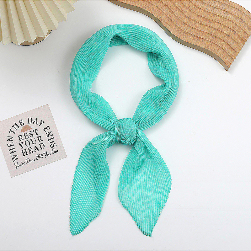 단색 구겨진 시폰 스카프 예술적 모든 경기 주름 스카프 여성의 봄과 가을 부드러운 통기성 다이아몬드 작은 스카프 가을과 겨울
