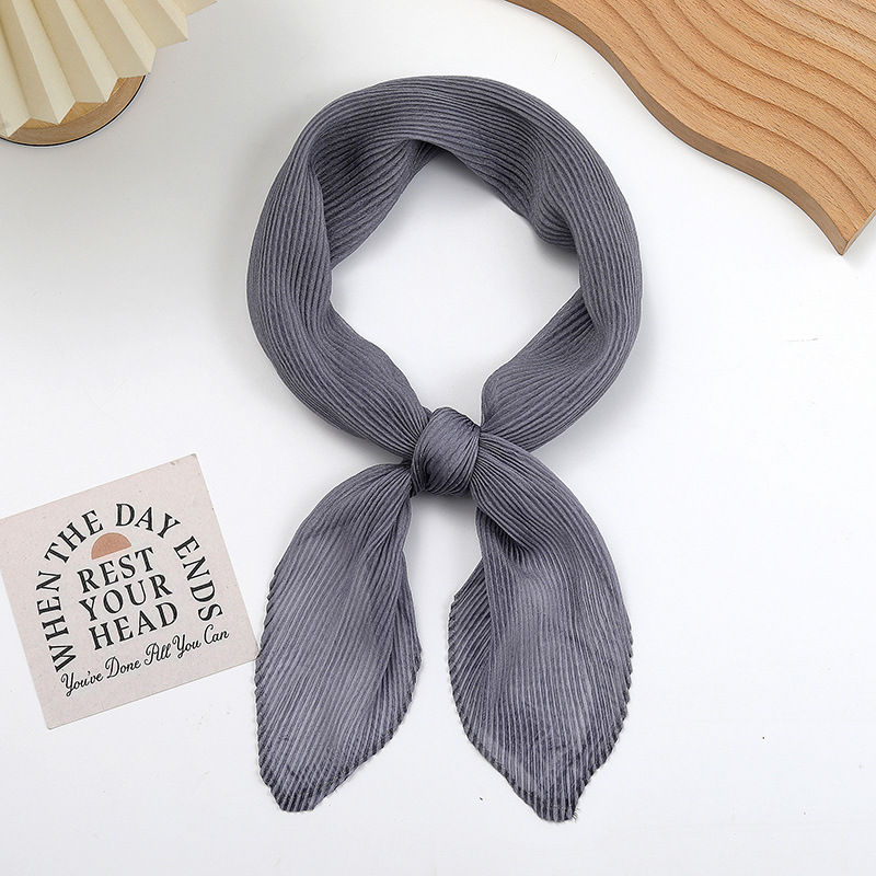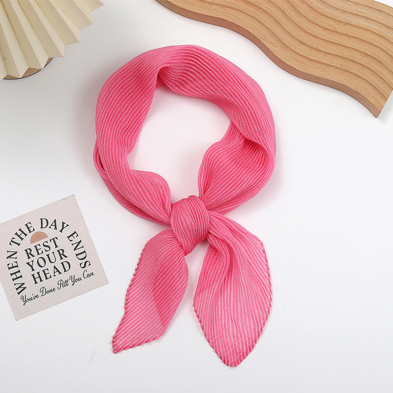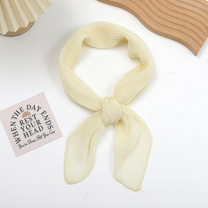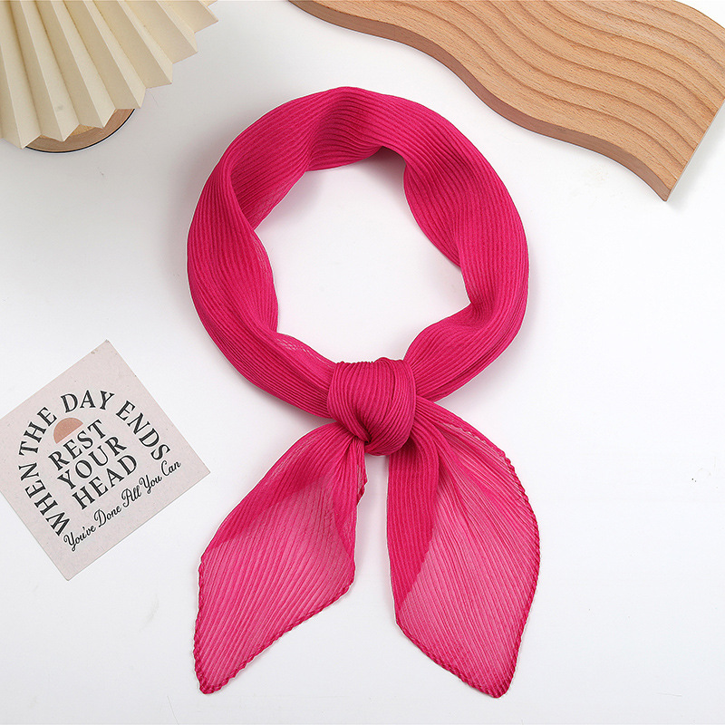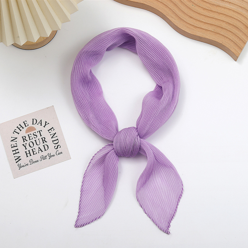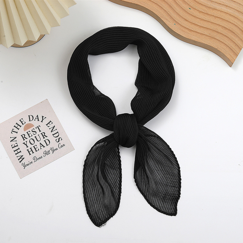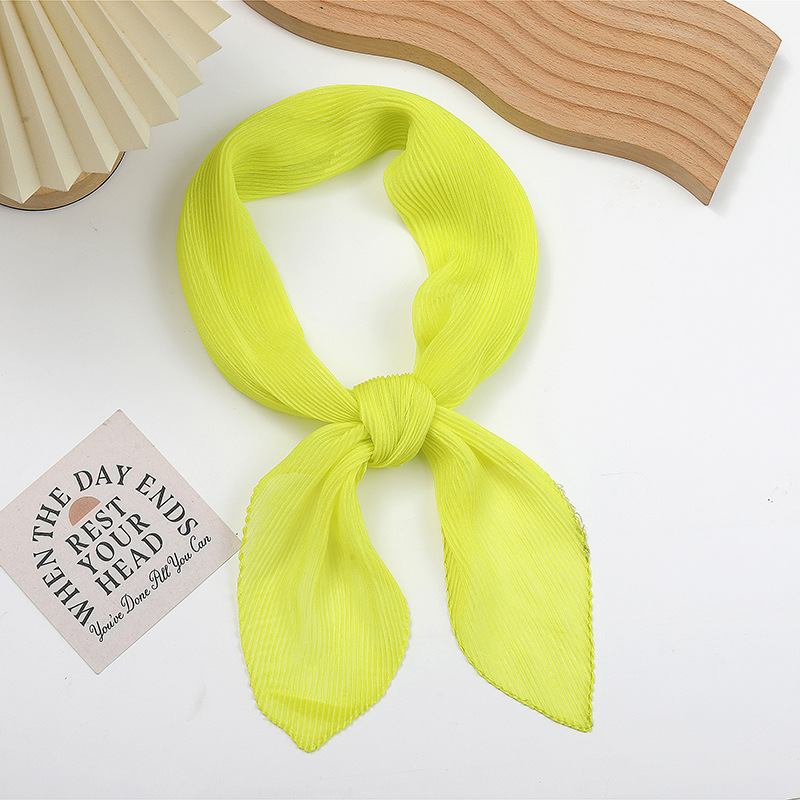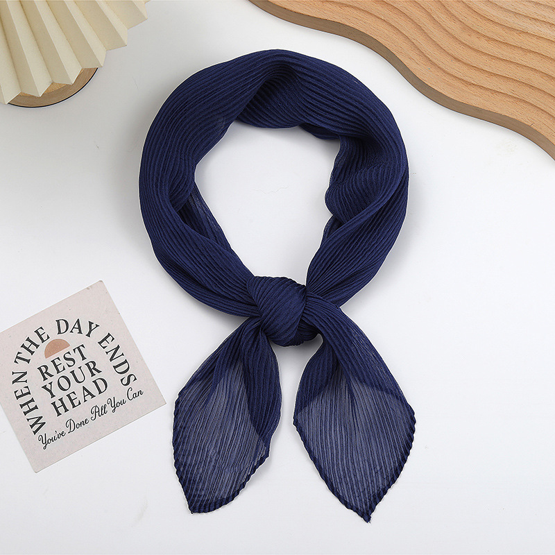 단색 구겨진 시폰 스카프 예술적 모든 경기 주름 스카프 여성의 봄과 가을 부드러운 통기성 다이아몬드 작은 스카프 가을과 겨울