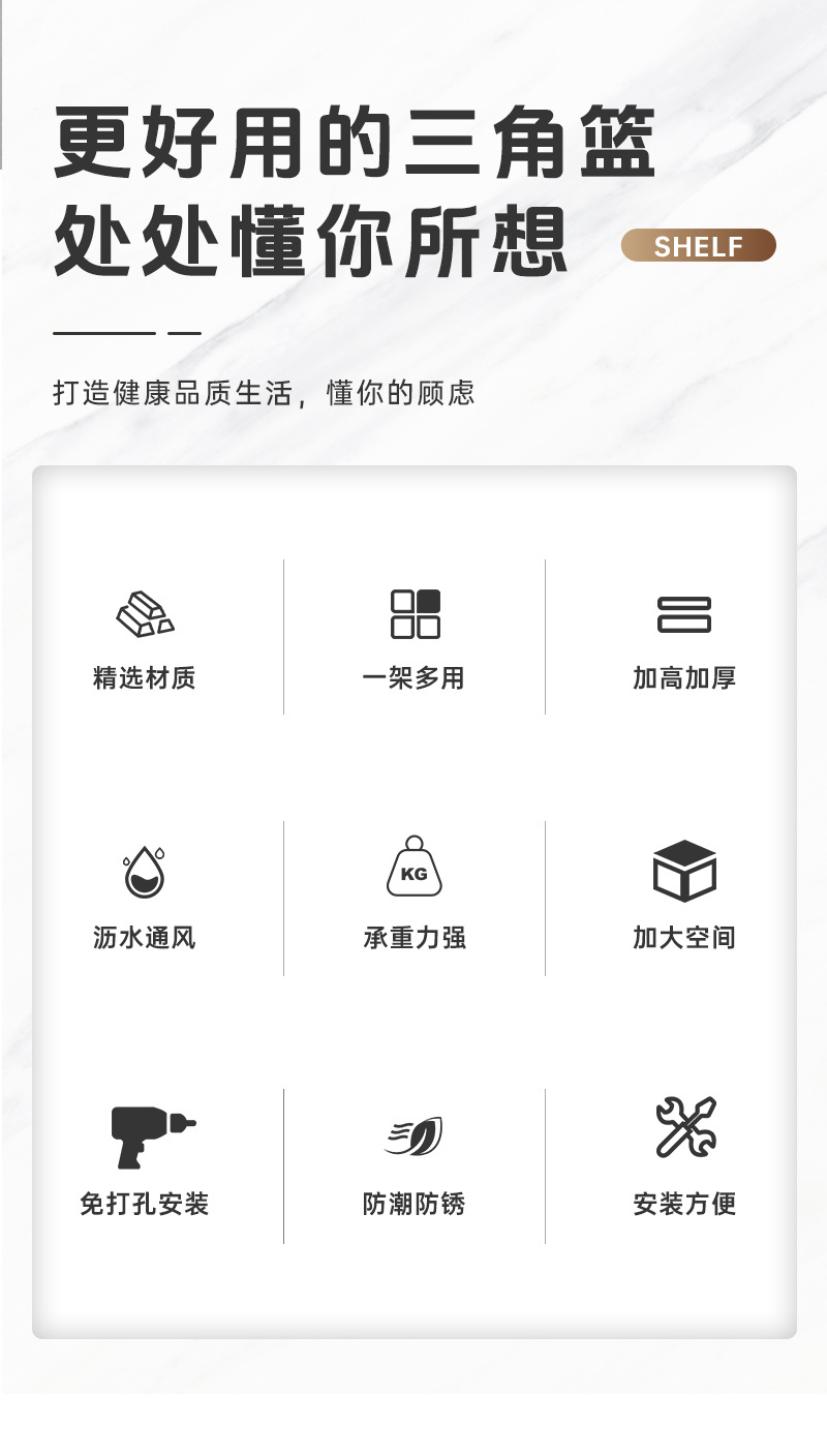 • ABS 소재 클래식 모델 - 흰색 삼각형 이중층 - 구멍을 뚫을 필요가 없습니다.