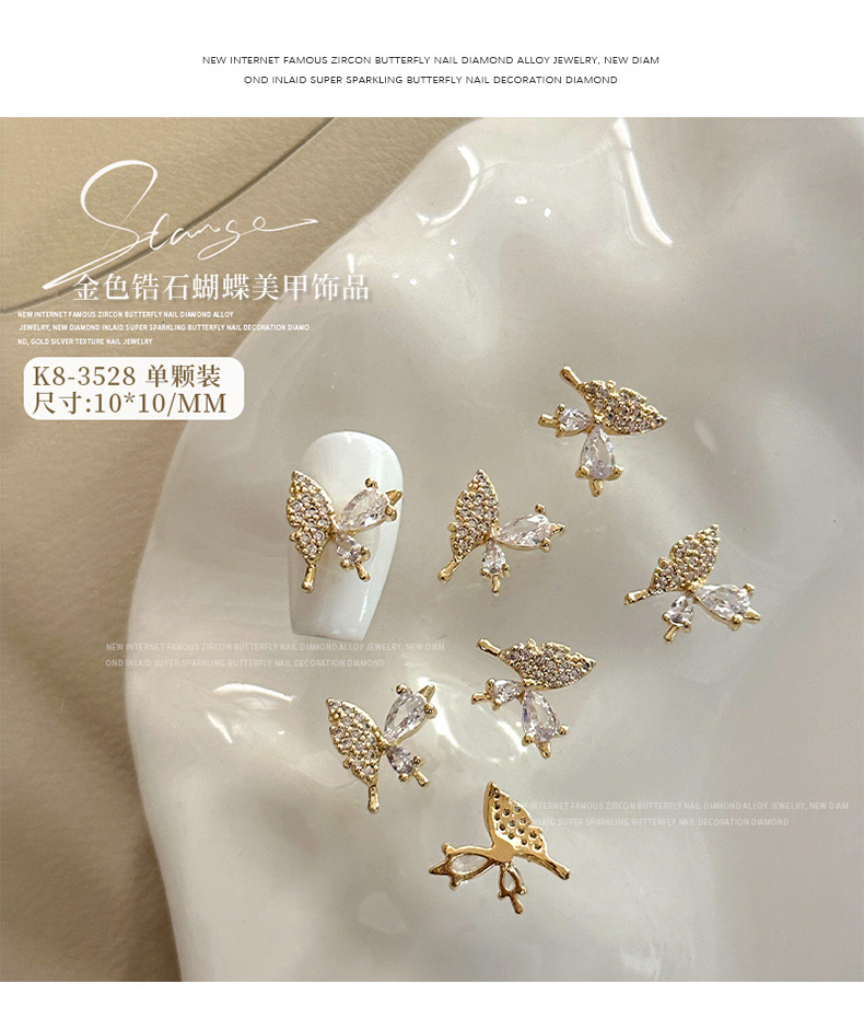 나비 지르콘 네일 아트 쥬얼리 새로운 도착 플래시 구리 지르코늄 골드 실버 나비 뷰티 라이트 럭셔리 풀 다이아몬드 네일 액세서리
