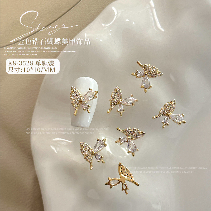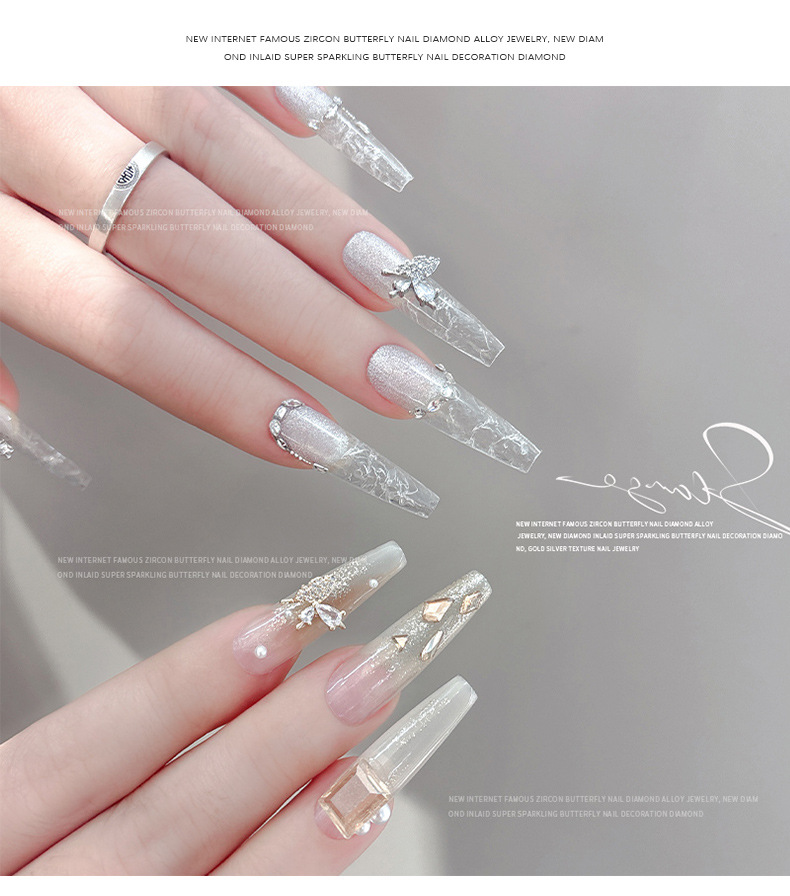 나비 지르콘 네일 아트 쥬얼리 새로운 도착 플래시 구리 지르코늄 골드 실버 나비 뷰티 라이트 럭셔리 풀 다이아몬드 네일 액세서리스토어 가기