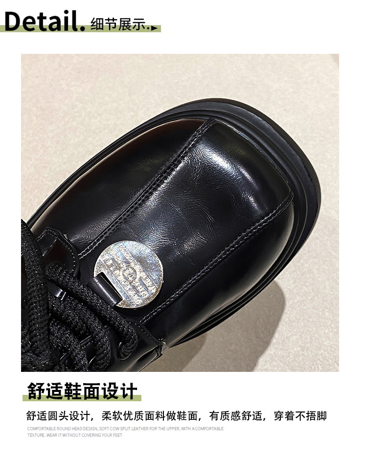 빈티지 영국 패션 캐주얼 조커 작은 가죽 신발 여성의 2024 가을과 겨울 새로운 큰 머리 작은 편안한 로퍼