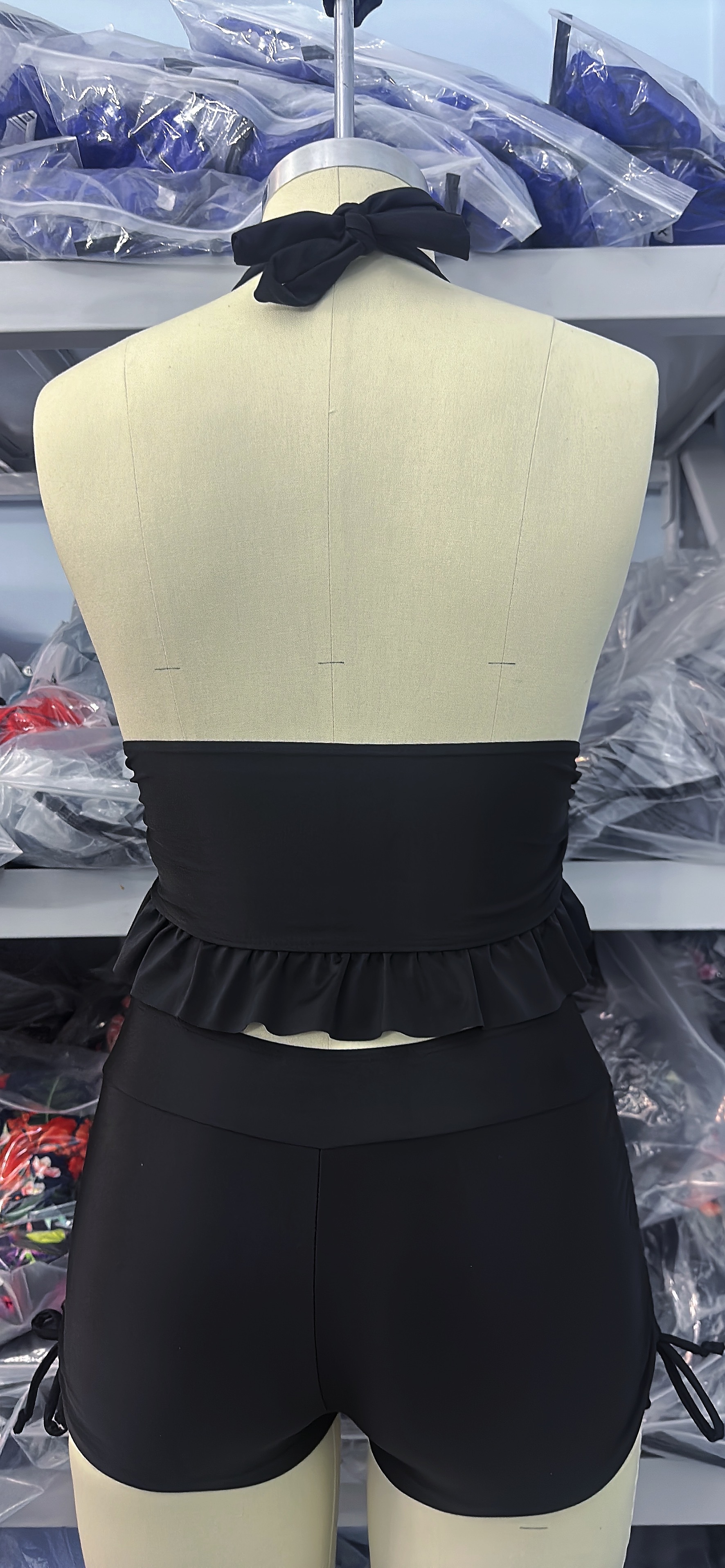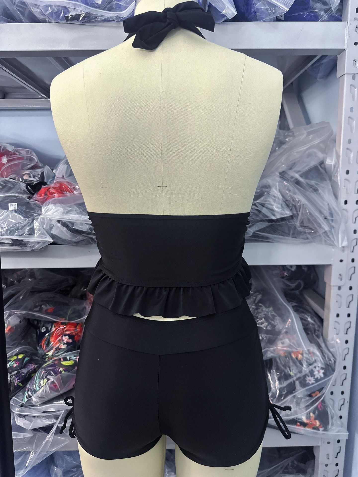 2025 유럽과 미국 국경 대외 무역 새로운 단색 섹시한 러플 조끼 레이스 업 스플릿 수영복 여성용 비키니스토어 가기