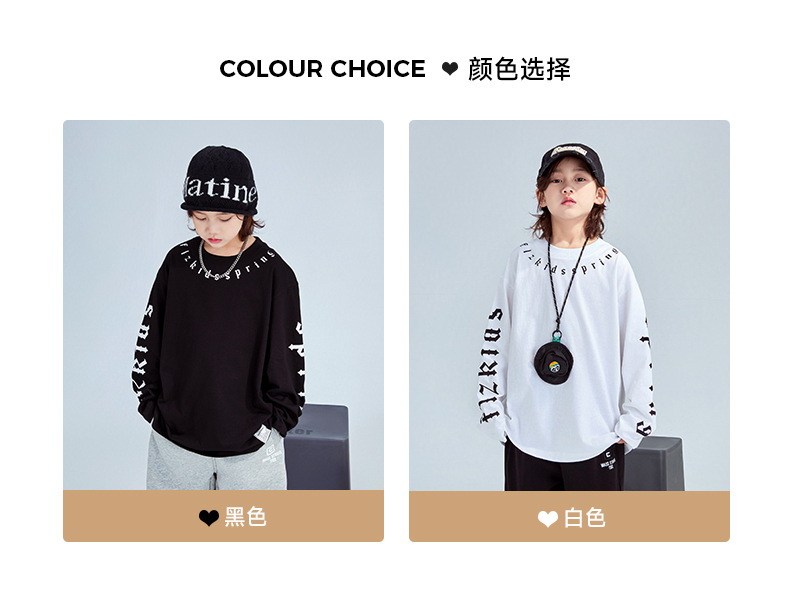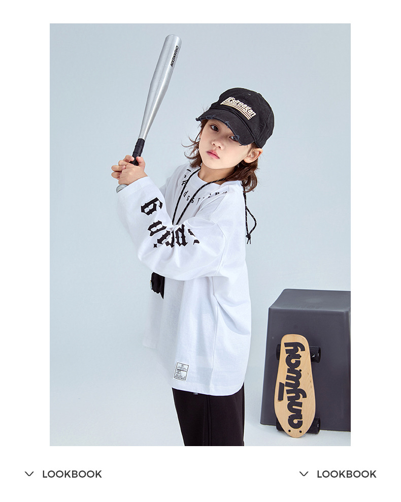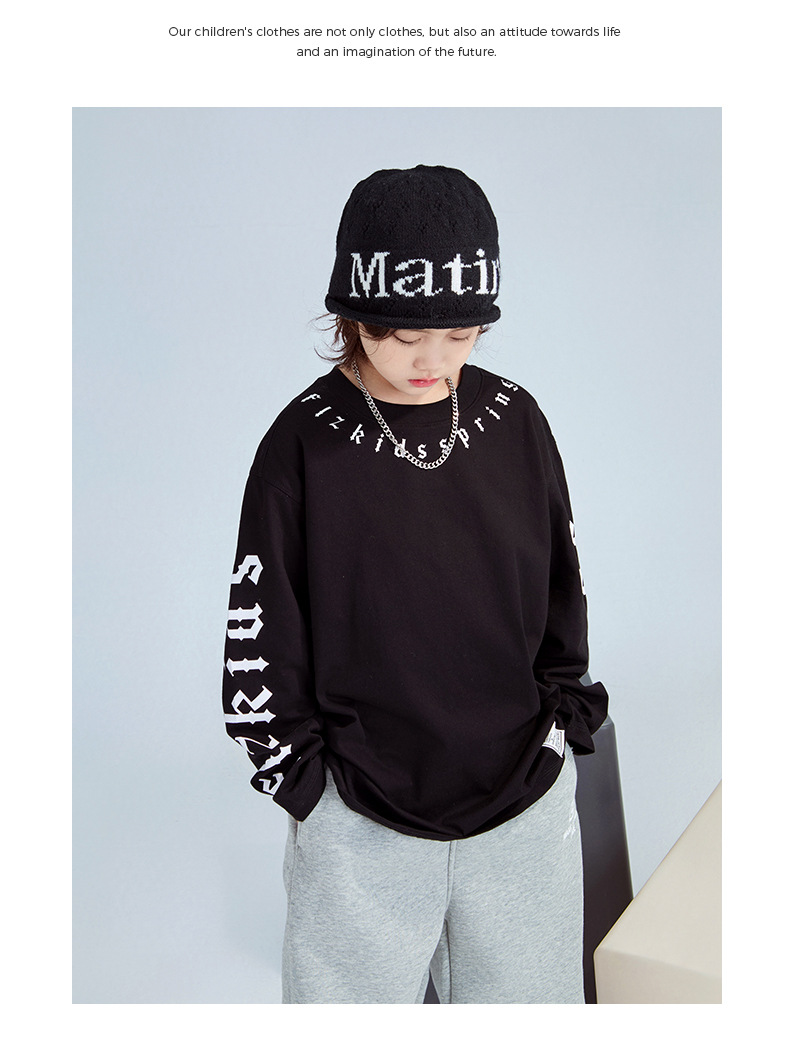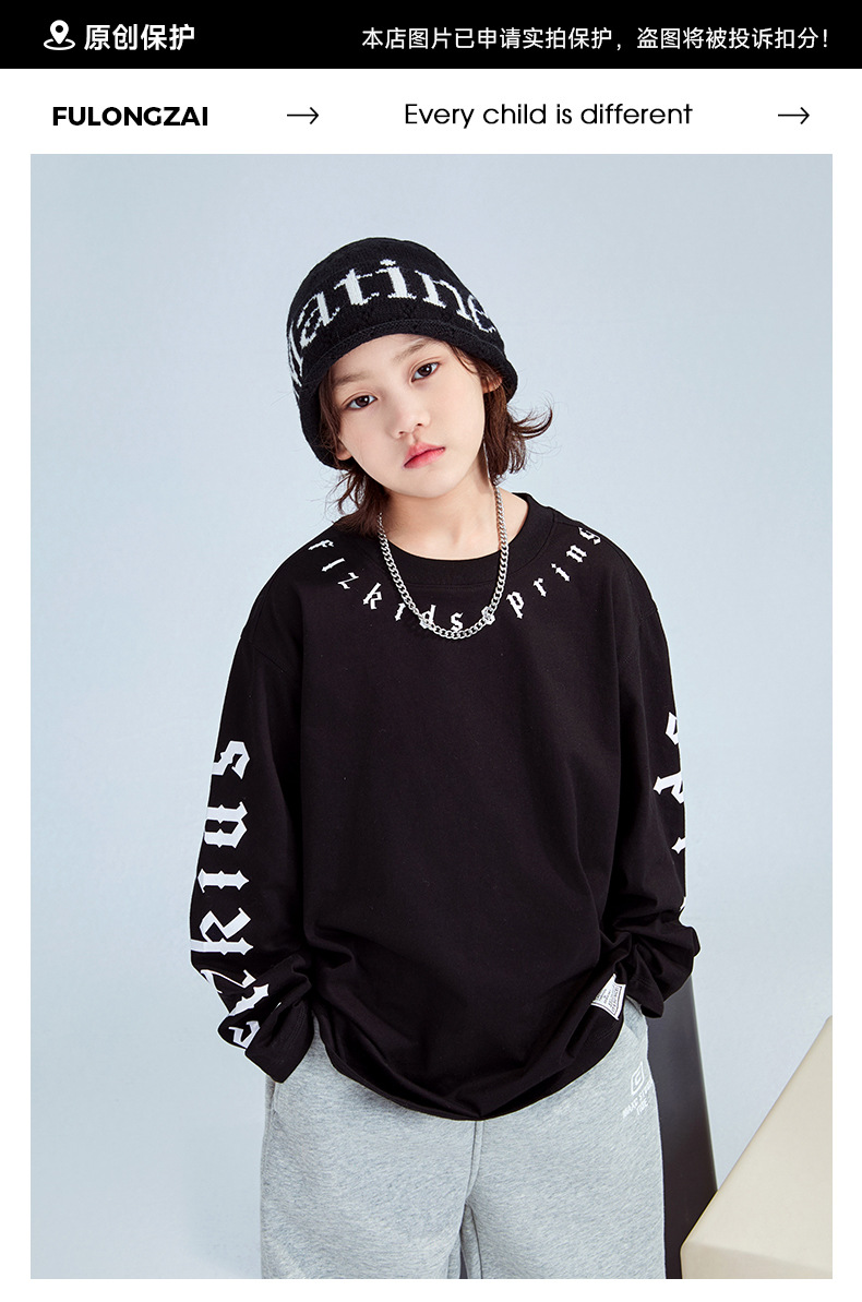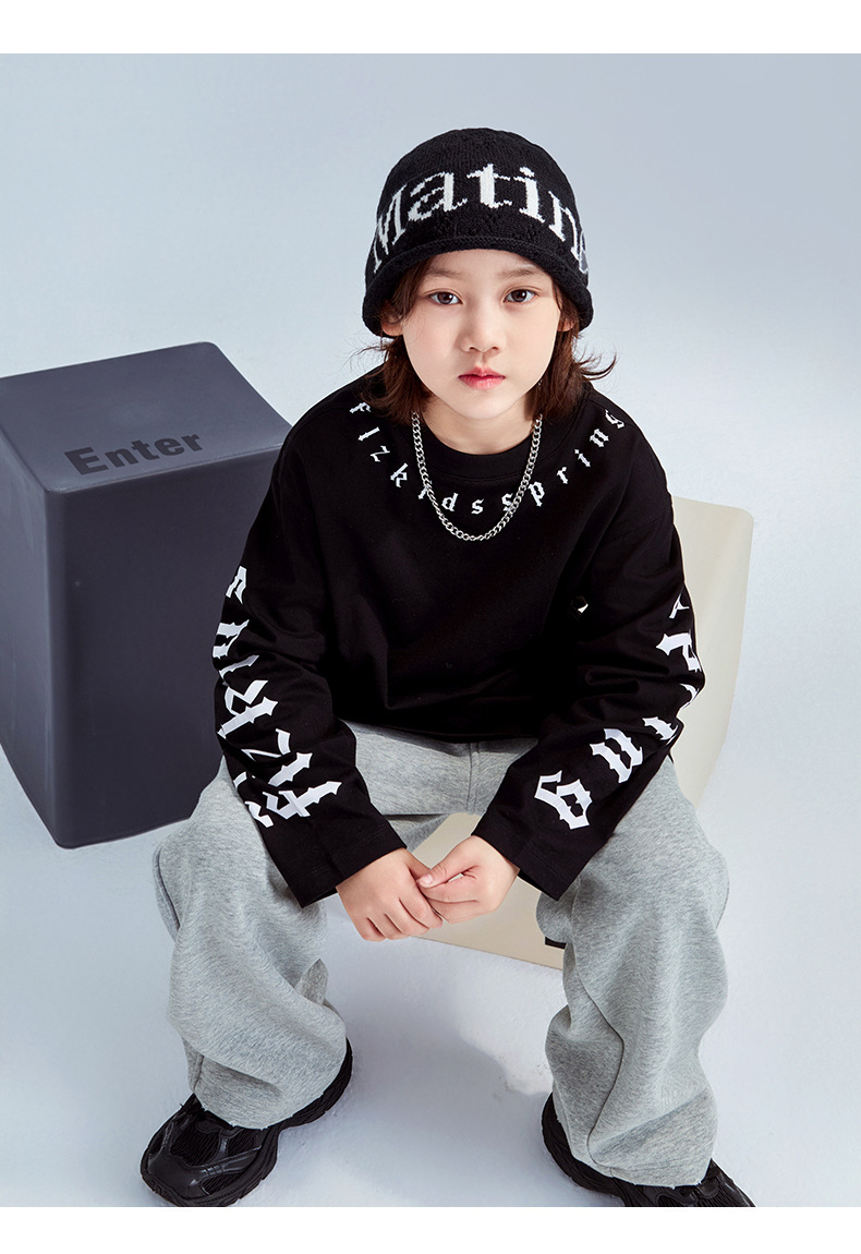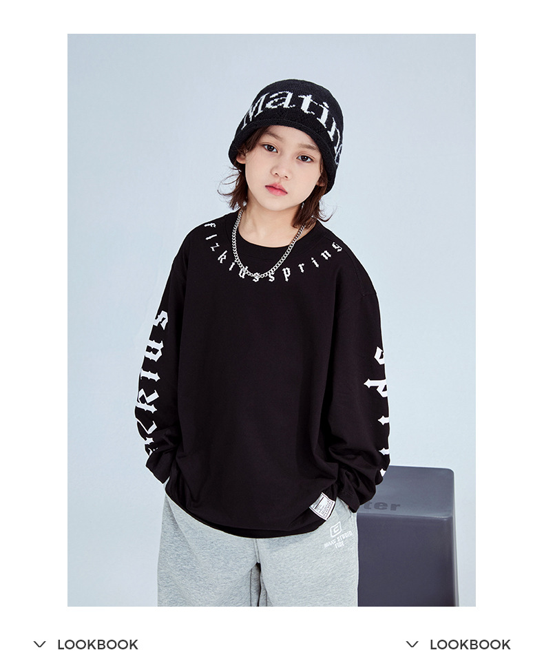 FULONGZAI 부모-자식 아동복 2025 봄 신작 봄, 가을 남성, 여성, 중대형 어린이 한국어 문자 티셔츠스토어 가기