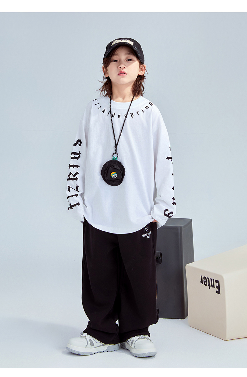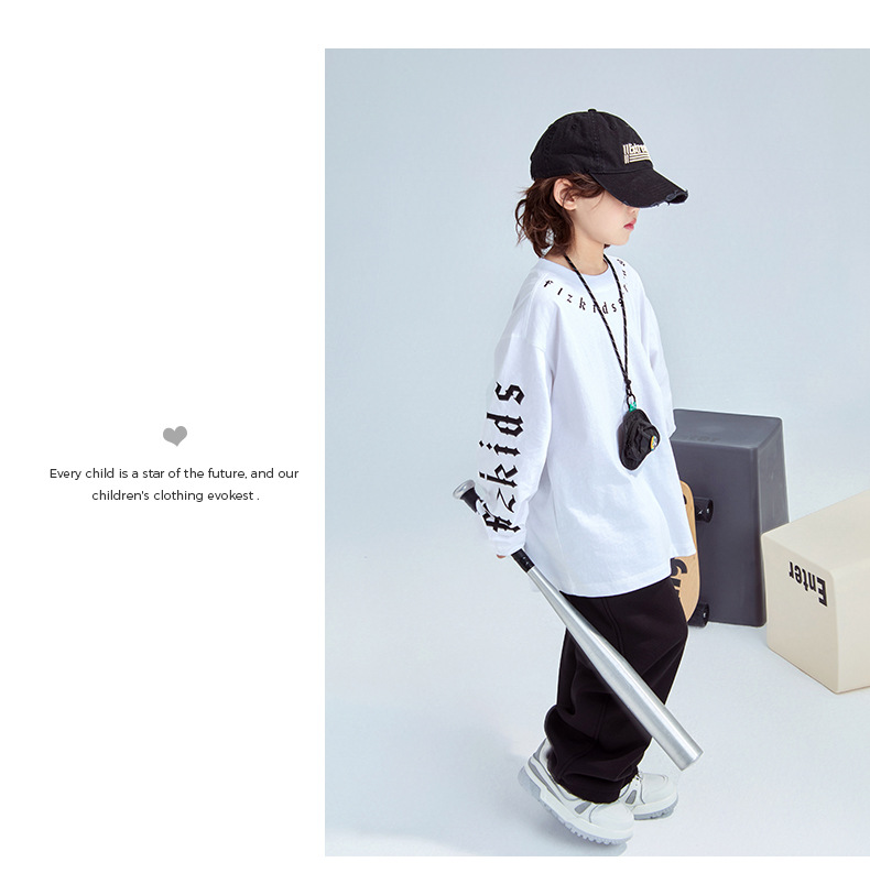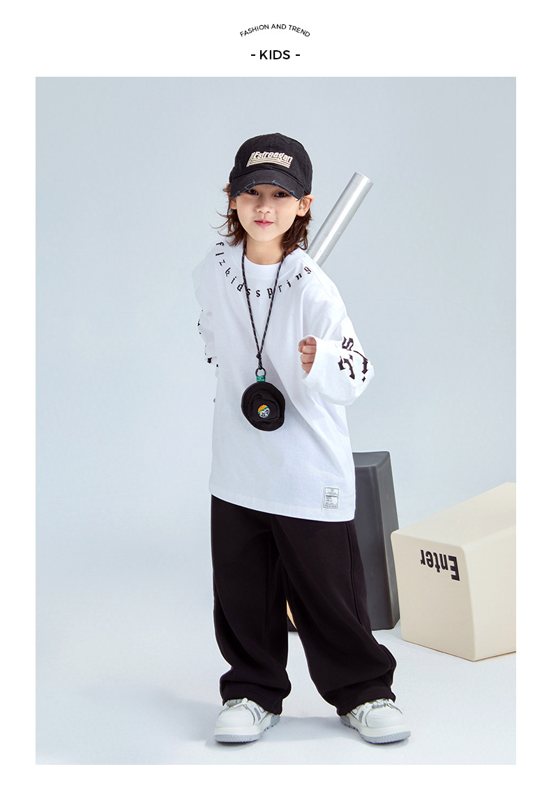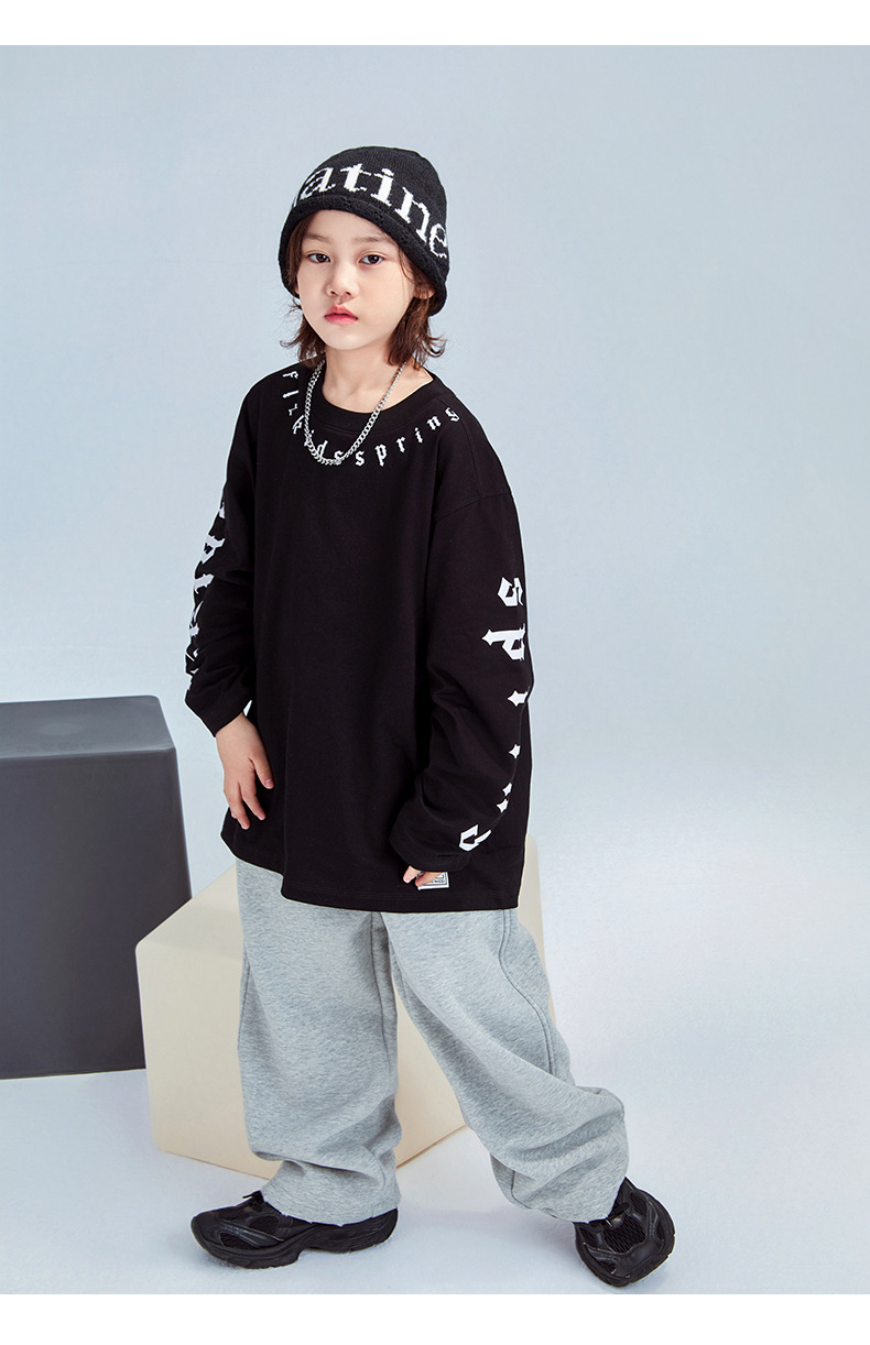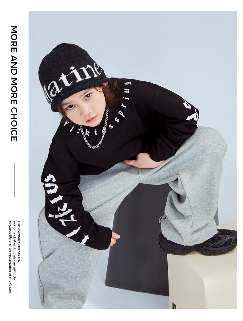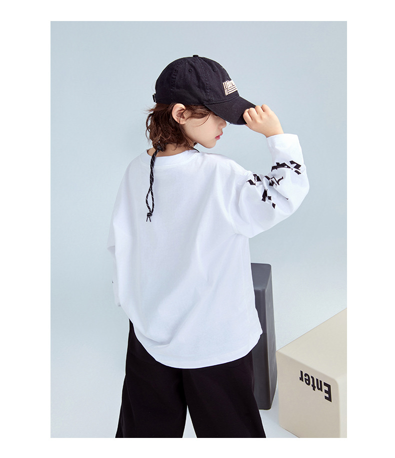 FULONGZAI 부모-자식 아동복 2025 봄 신작 봄, 가을 남성, 여성, 중대형 어린이 한국어 문자 티셔츠스토어 가기