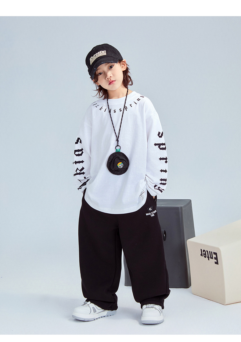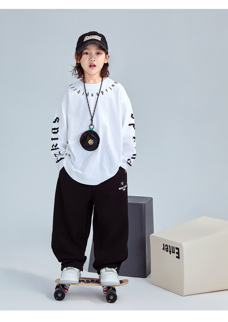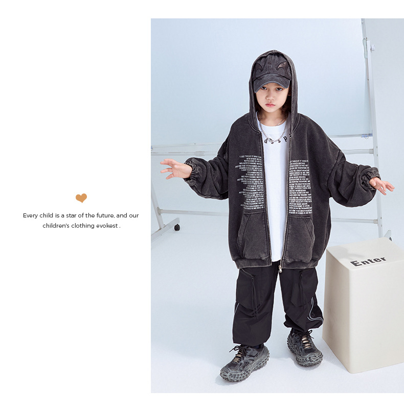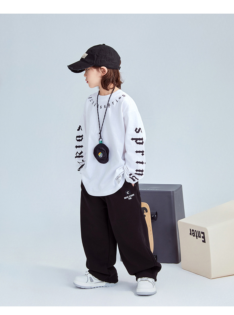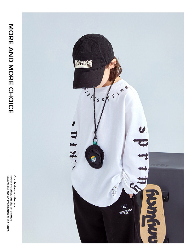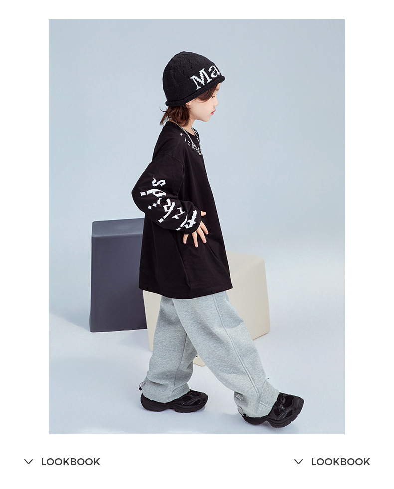 FULONGZAI 부모-자식 아동복 2025 봄 신작 봄, 가을 남성, 여성, 중대형 어린이 한국어 문자 티셔츠스토어 가기