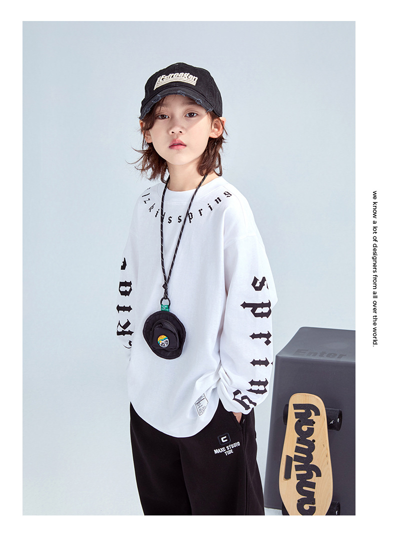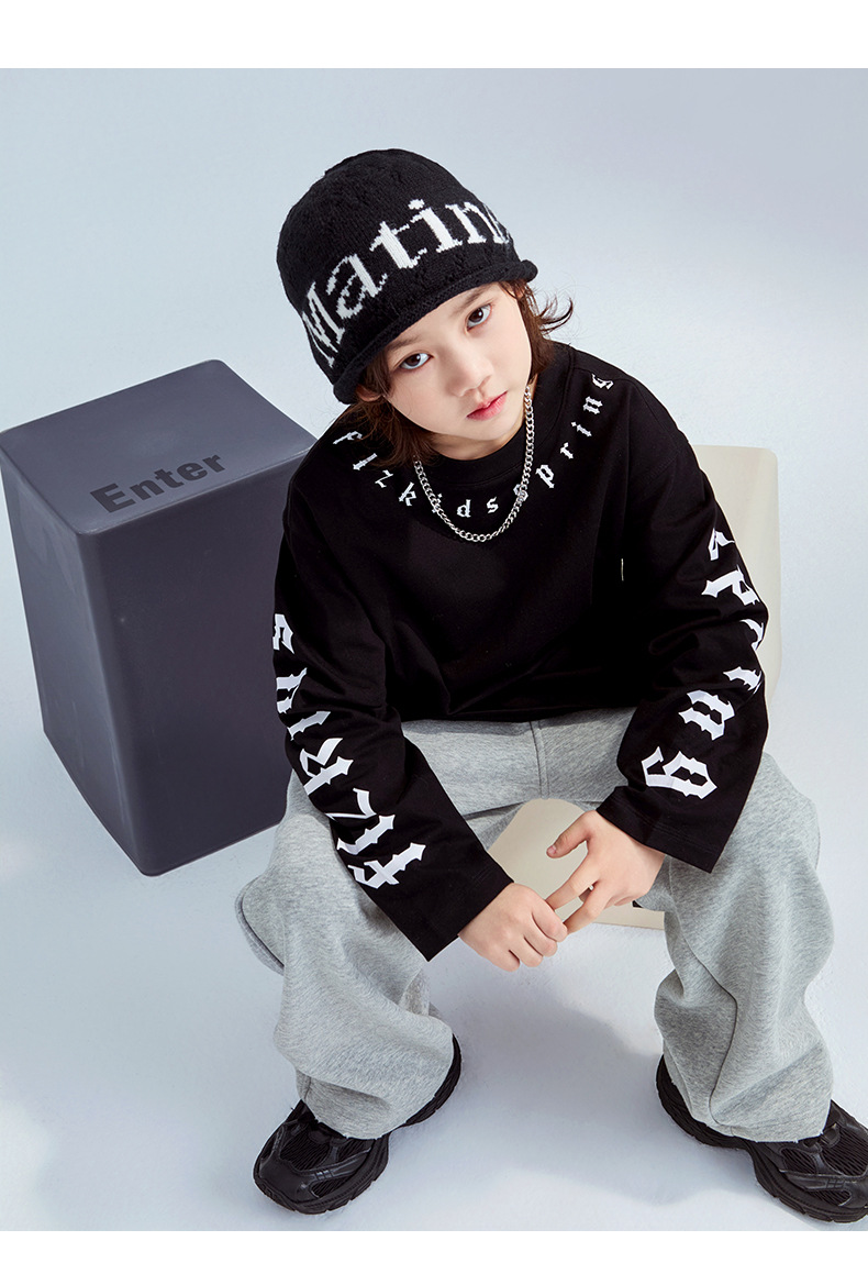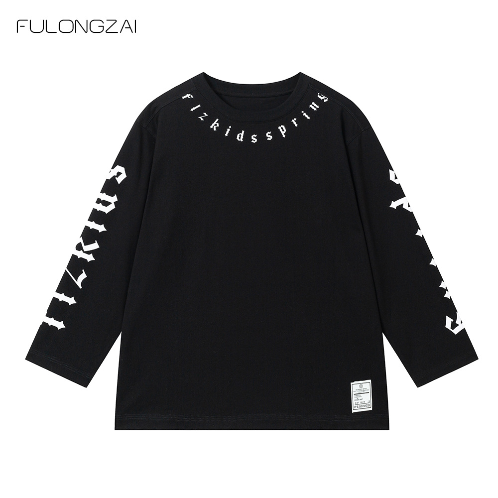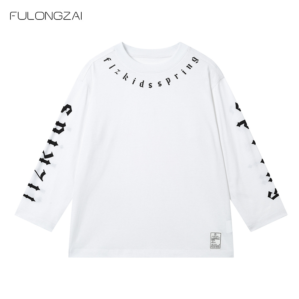 FULONGZAI 부모-자식 아동복 2025 봄 신작 봄, 가을 남성, 여성, 중대형 어린이 한국어 문자 티셔츠