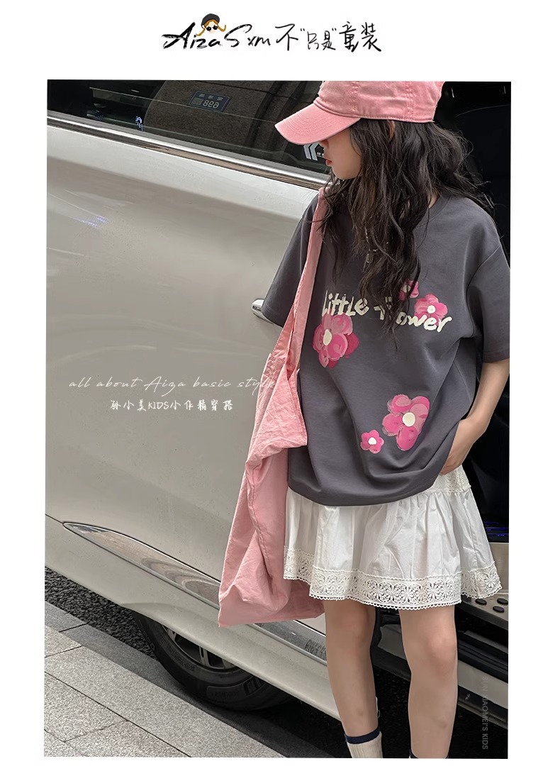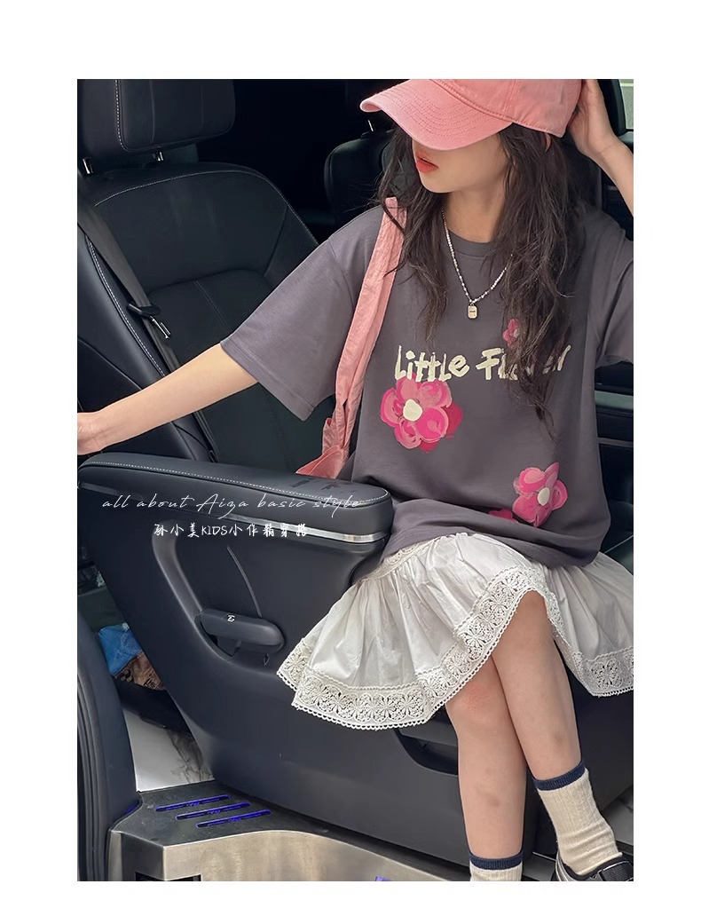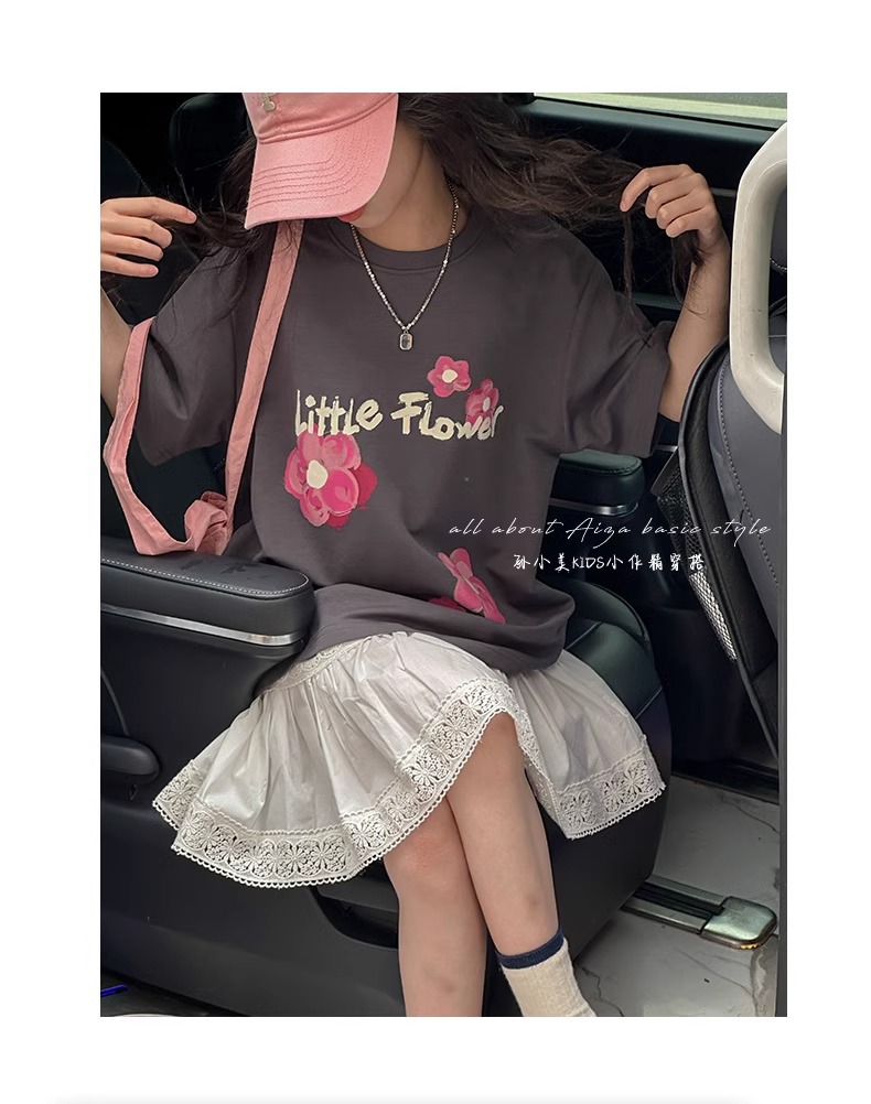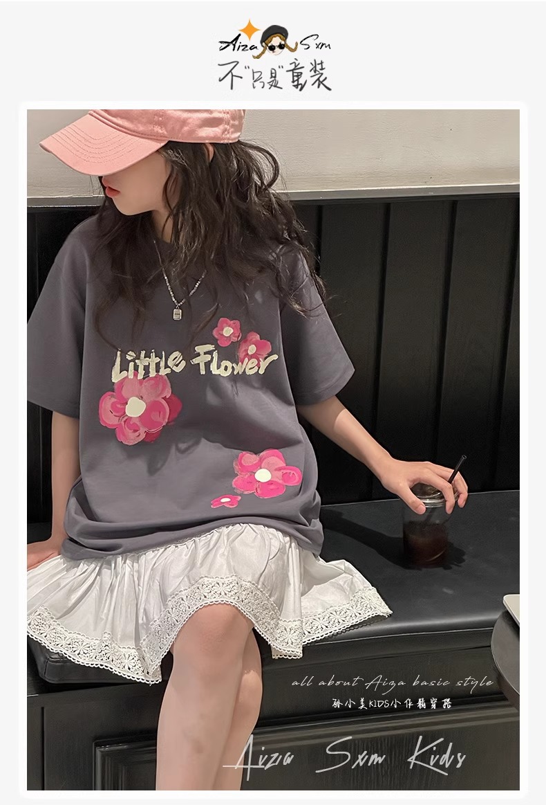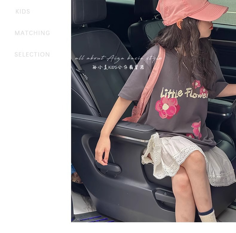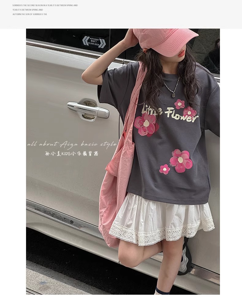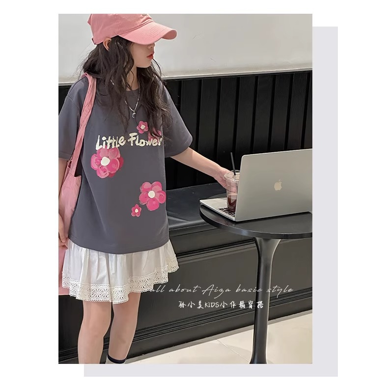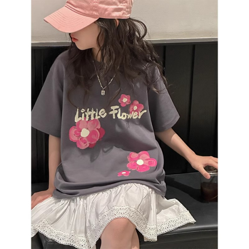 순수 코튼 소녀 반팔 티셔츠 2025 티셔츠 반팔 여름 소녀 미국 복고풍 여름 의류 트렌드 ins스토어 가기