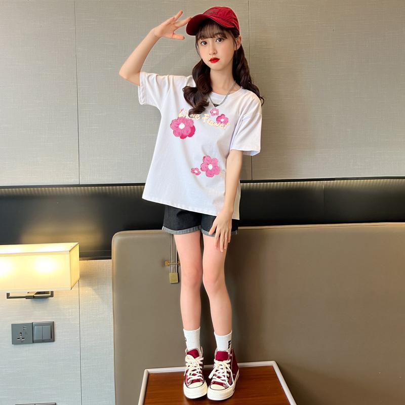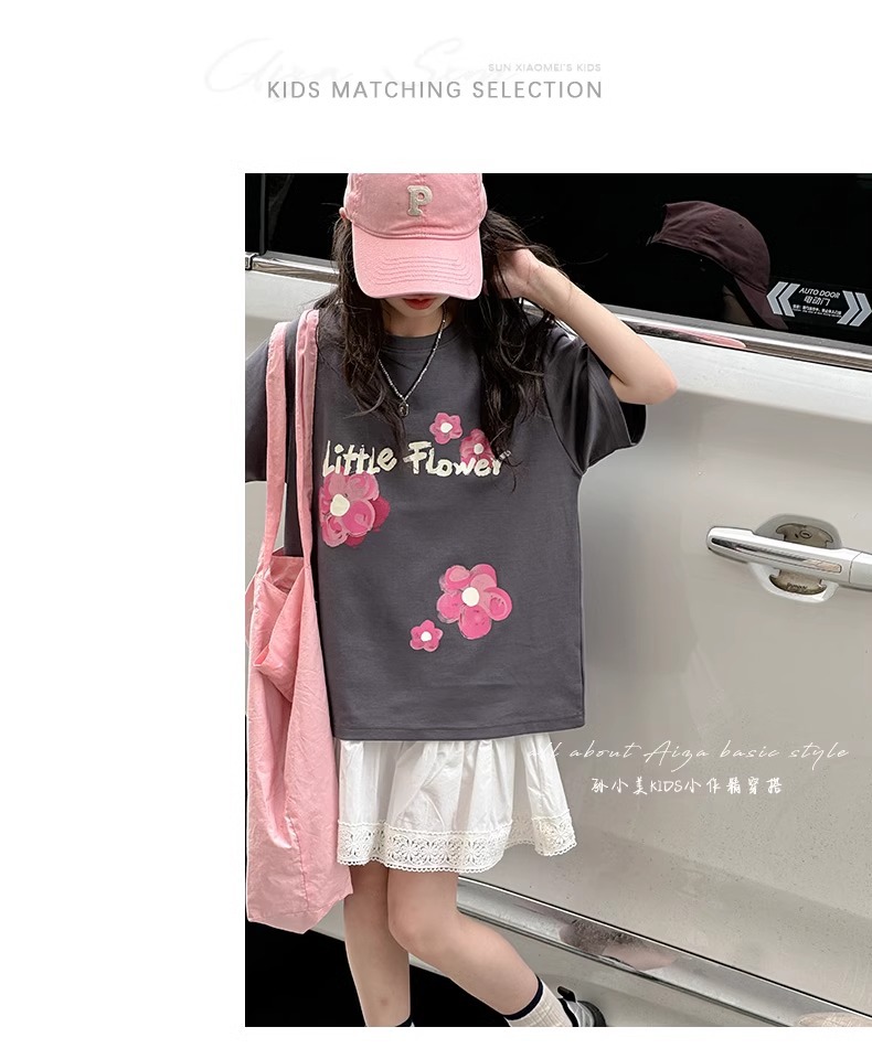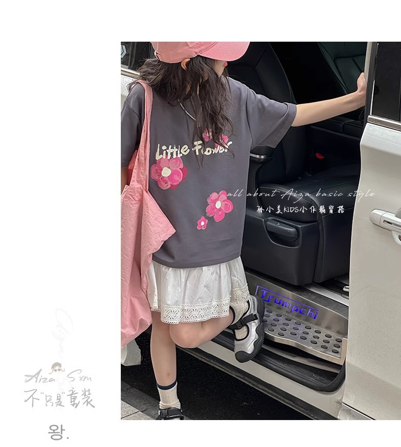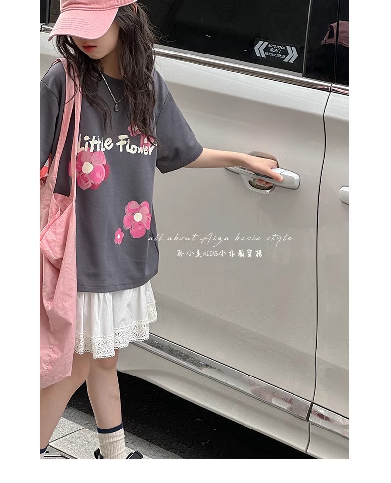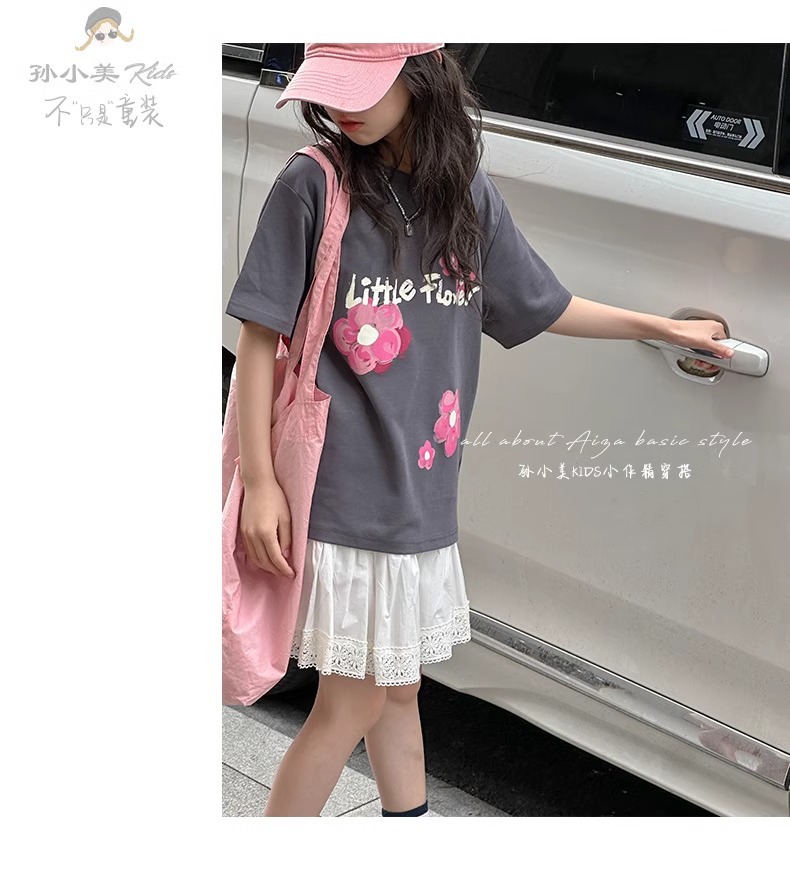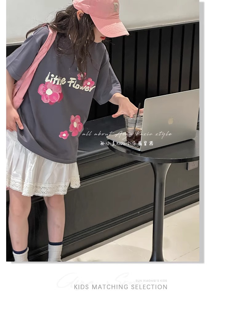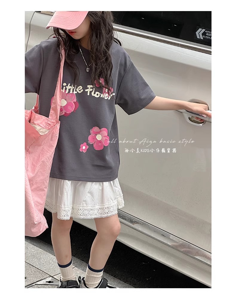 순수 코튼 소녀 반팔 티셔츠 2025 티셔츠 반팔 여름 소녀 미국 복고풍 여름 의류 트렌드 ins스토어 가기