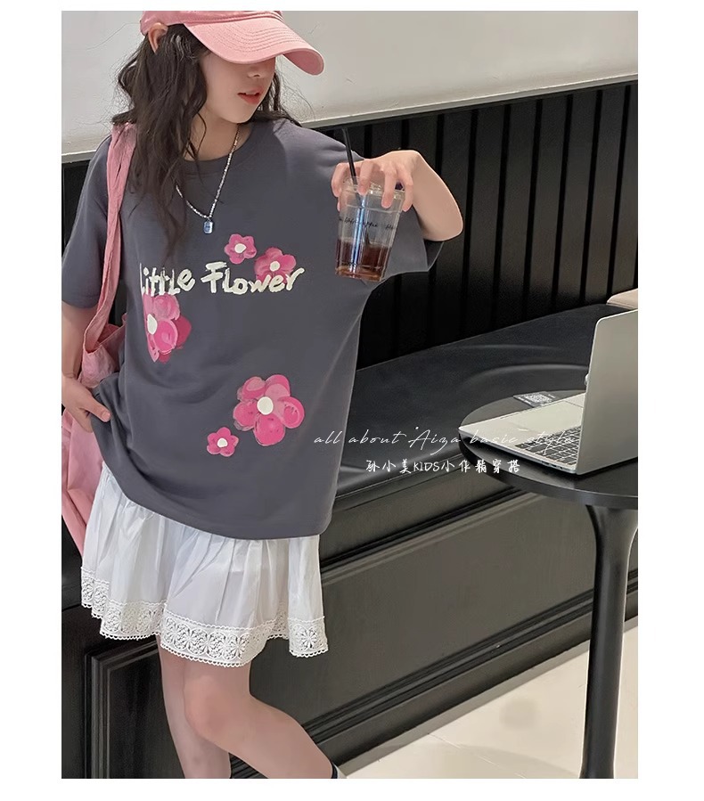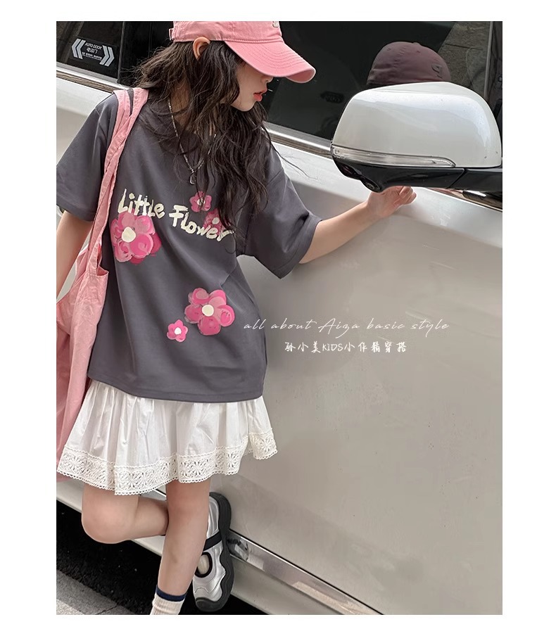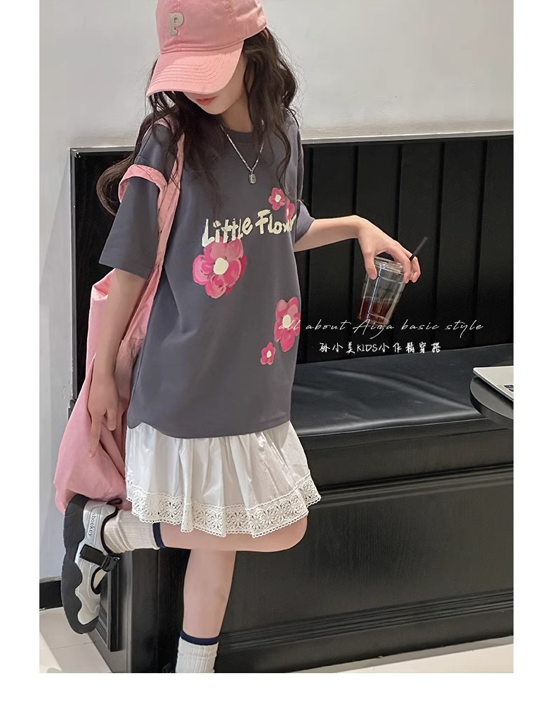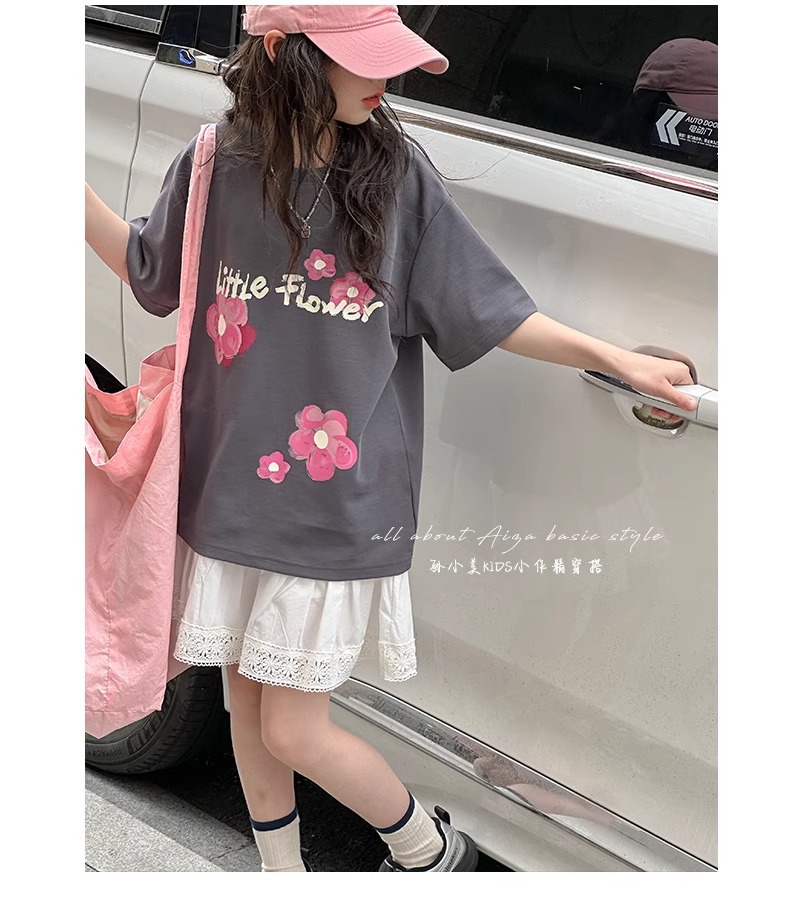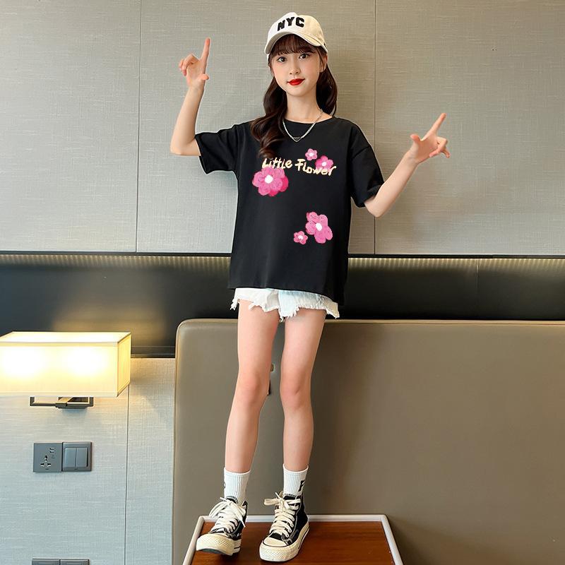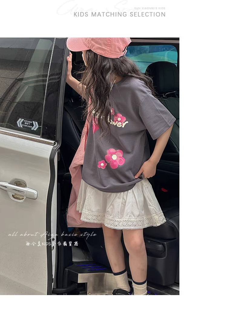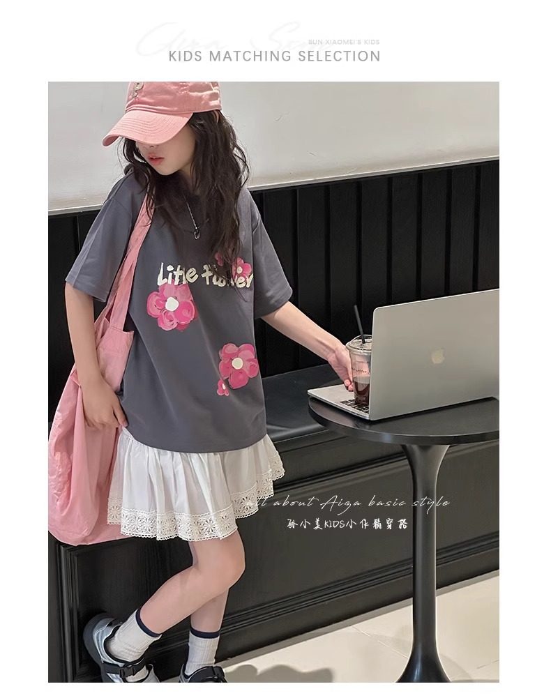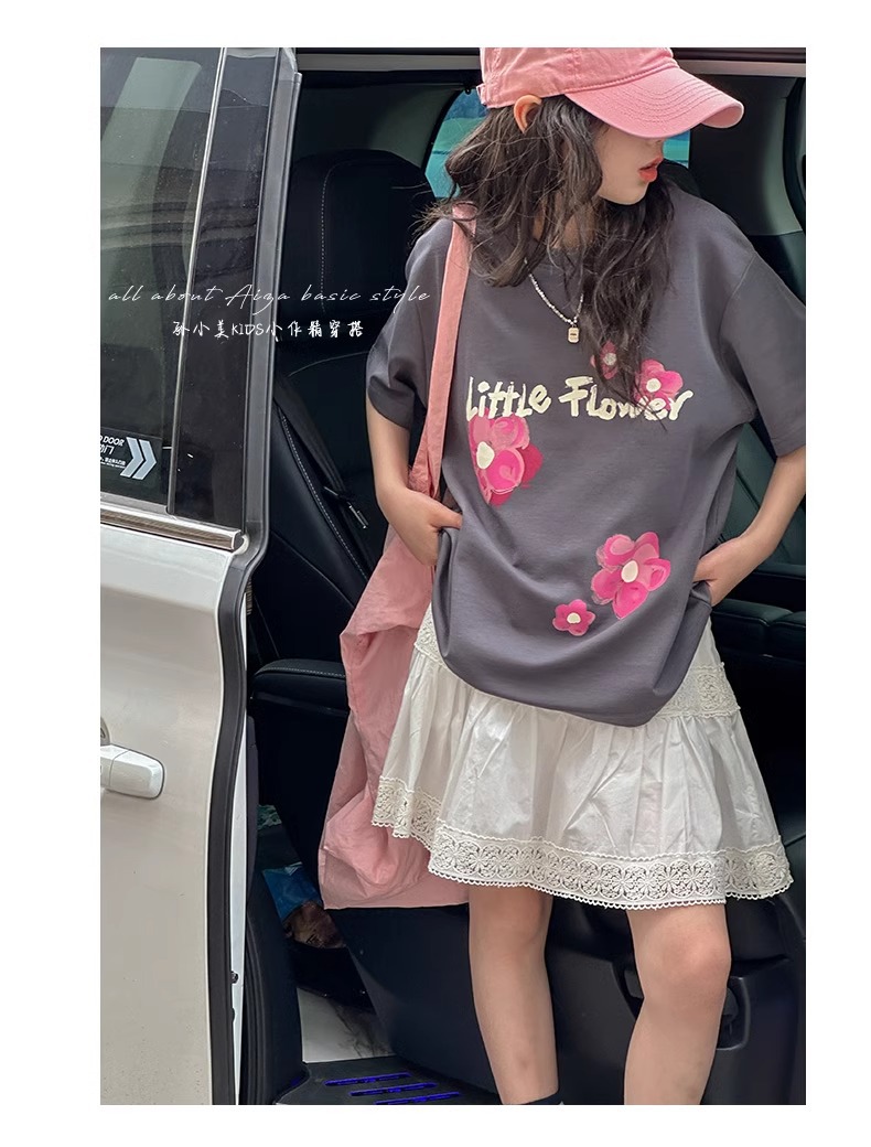 순수 코튼 소녀 반팔 티셔츠 2025 티셔츠 반팔 여름 소녀 미국 복고풍 여름 의류 트렌드 ins스토어 가기