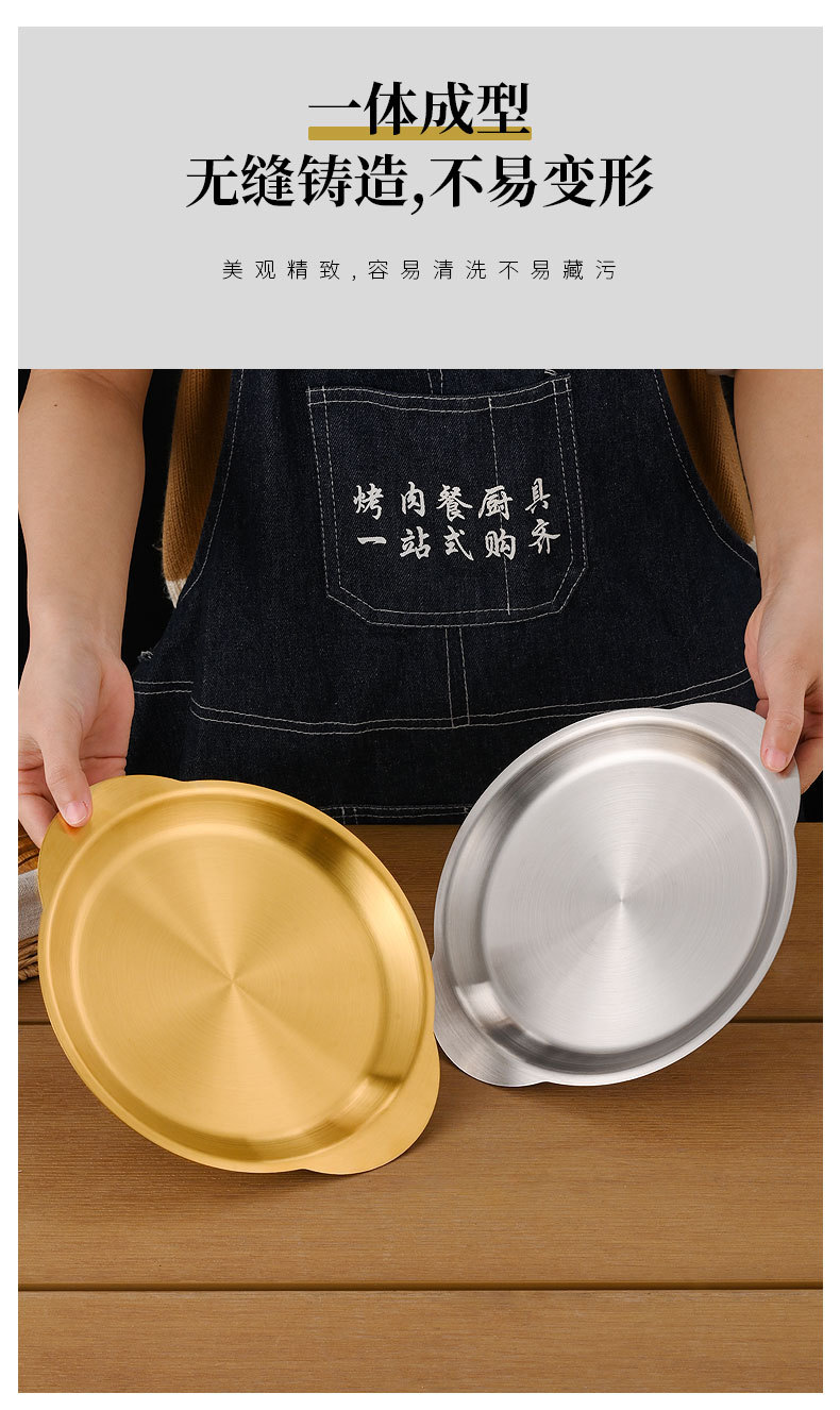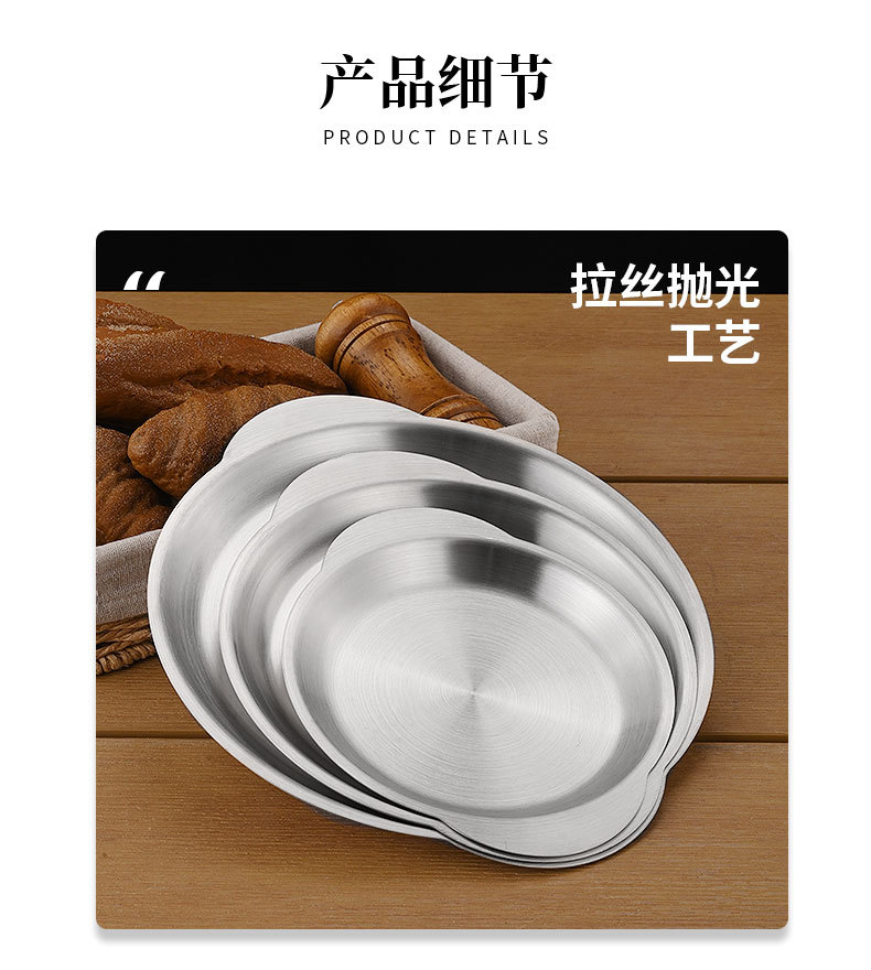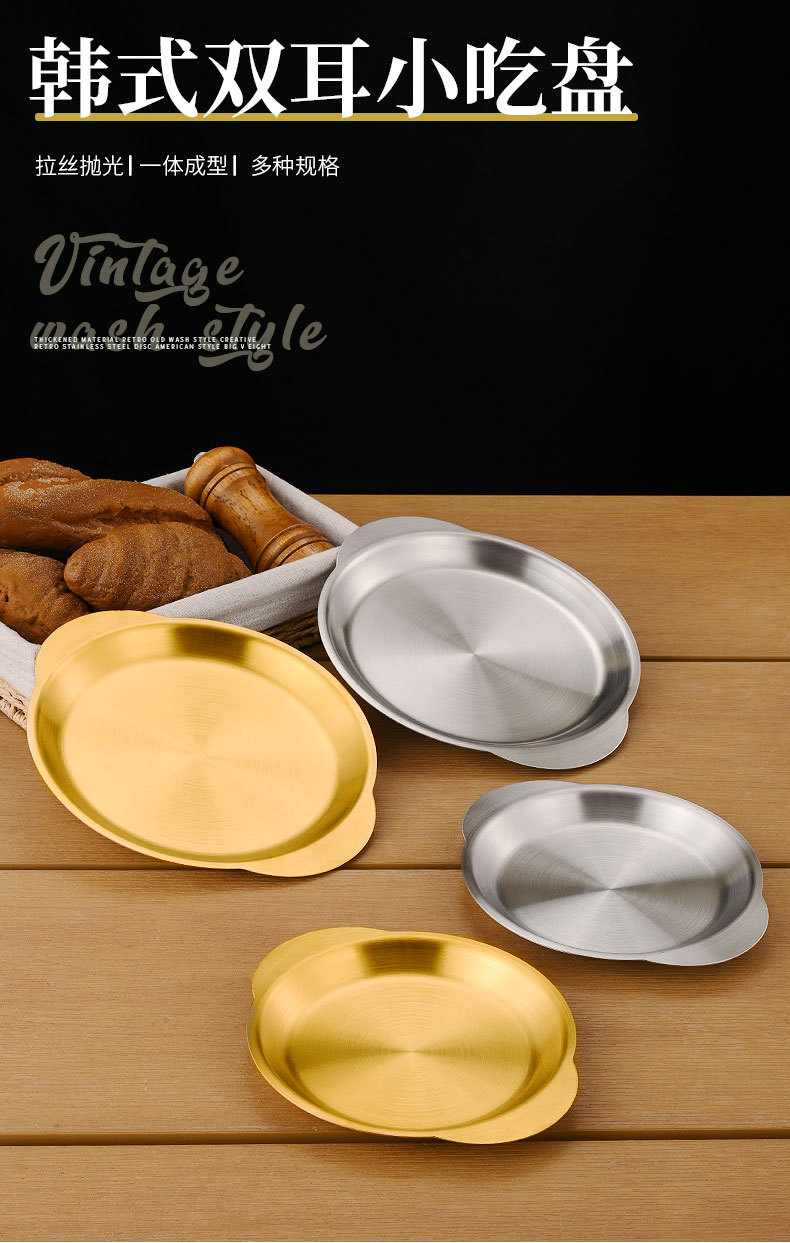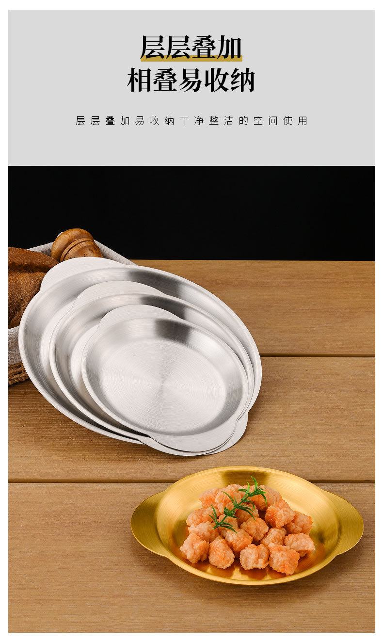 한국식 스테인레스 스틸 바이노럴 스낵 플레이트 평면 바닥 얕은 플레이트 바베큐 플레이트 결합 된 스낵 플레이트 트레이 과일 플레이트 페이스트리 플레이트스토어 가기