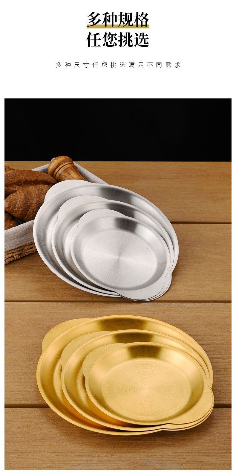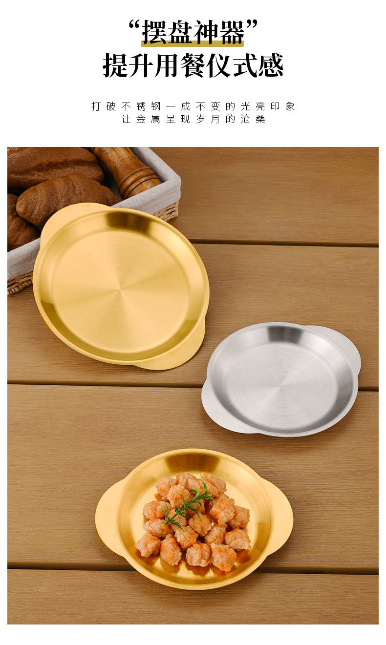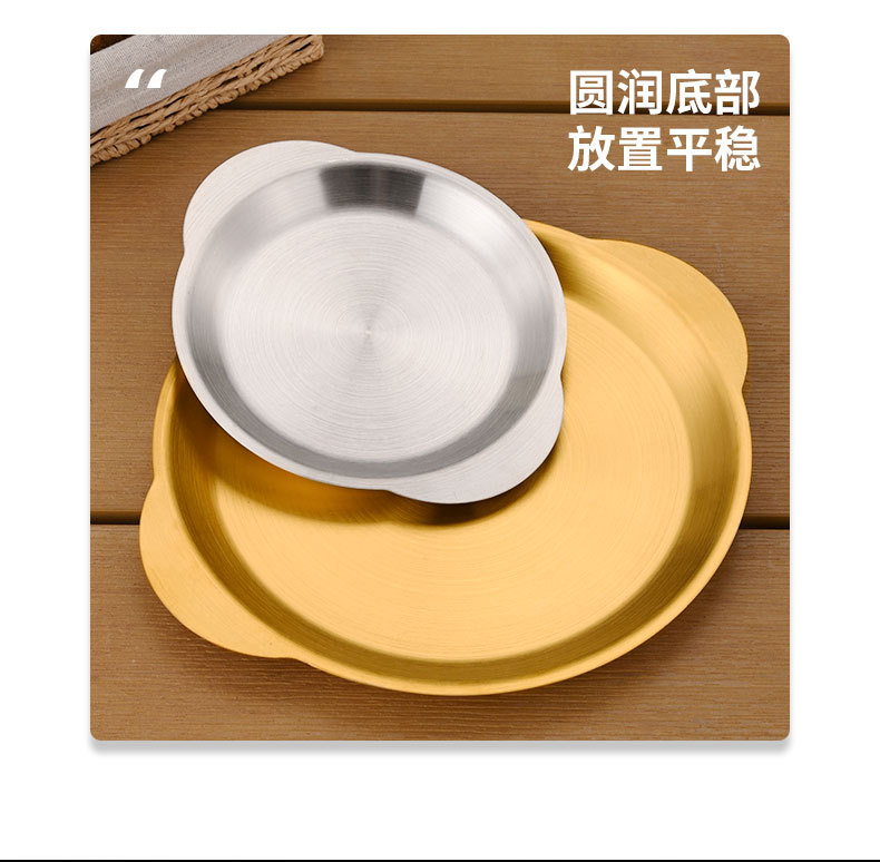 한국식 스테인레스 스틸 바이노럴 스낵 플레이트 평면 바닥 얕은 플레이트 바베큐 플레이트 결합 된 스낵 플레이트 트레이 과일 플레이트 페이스트리 플레이트스토어 가기