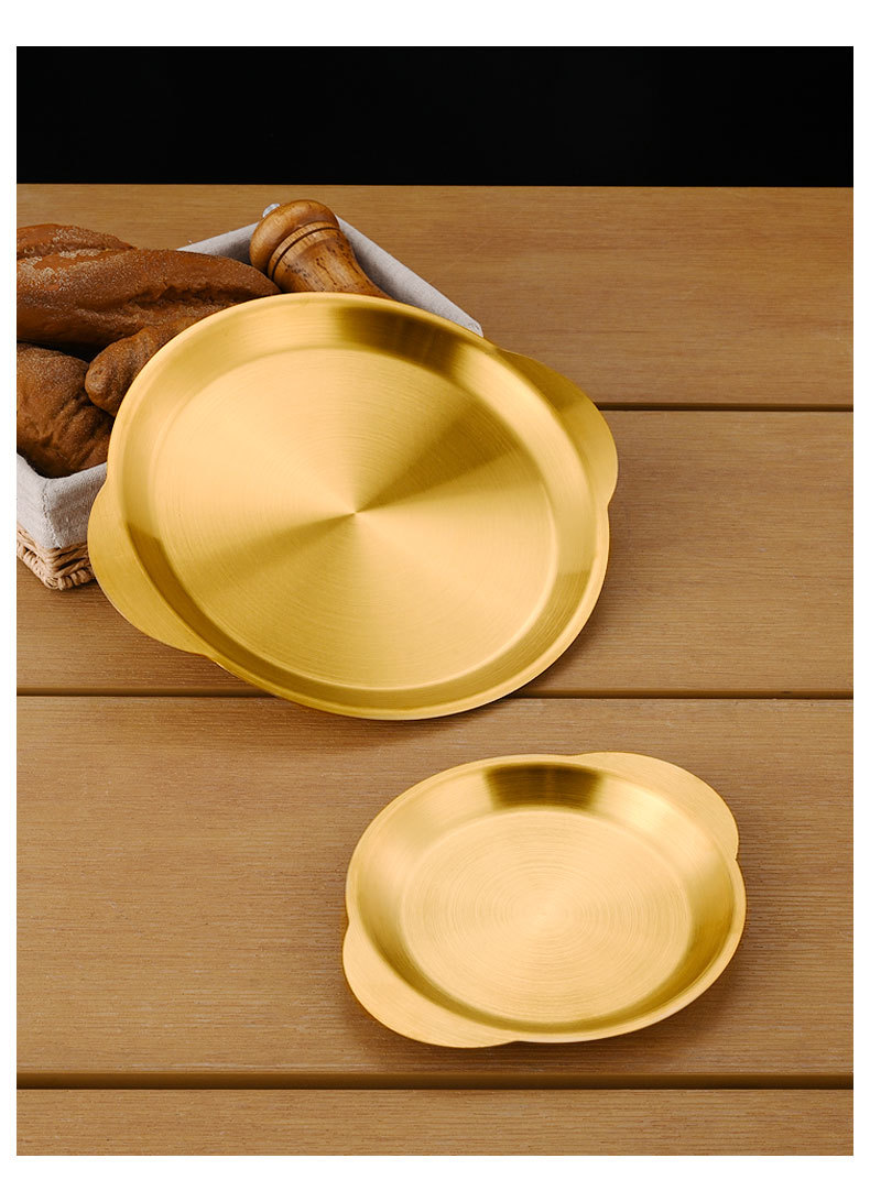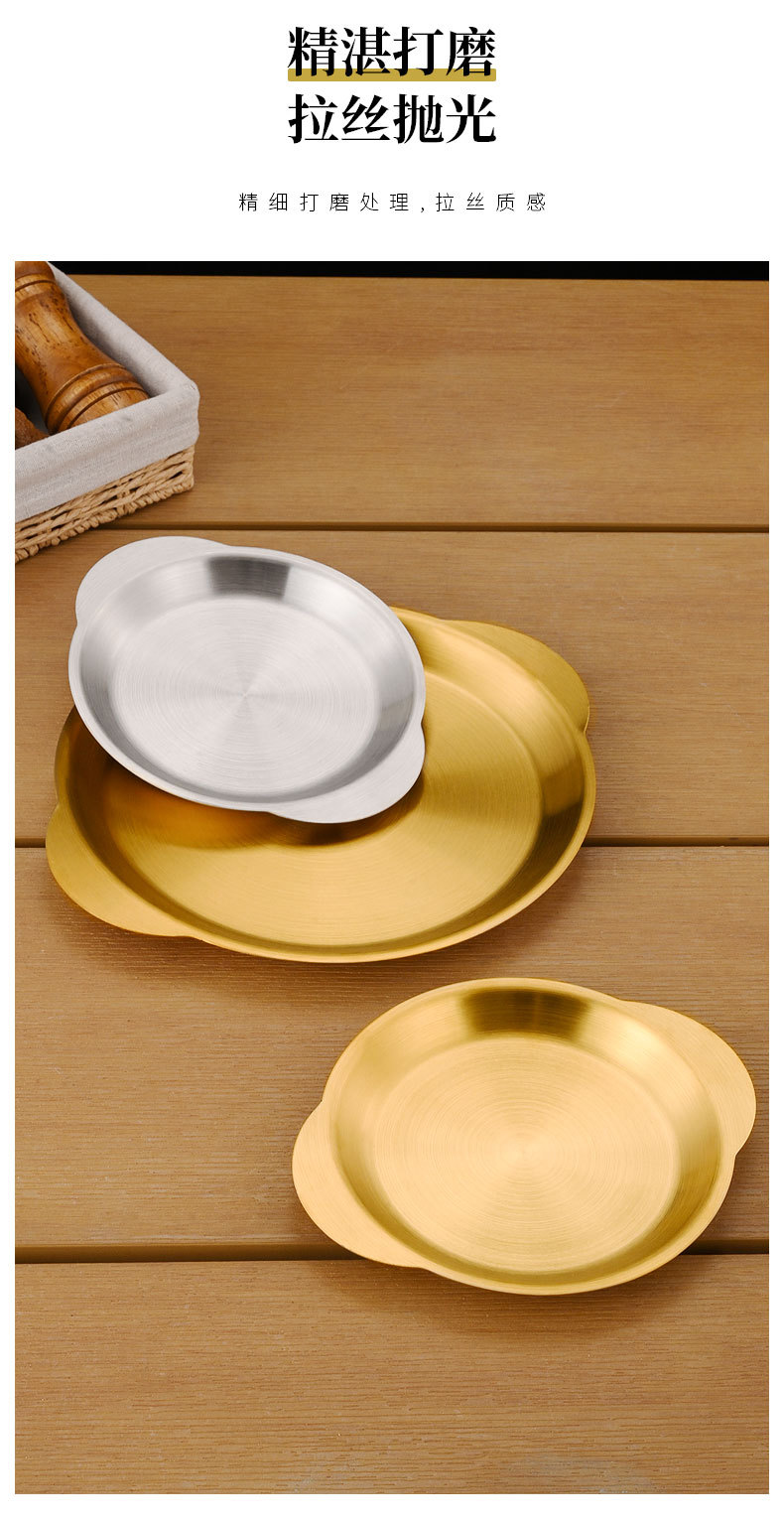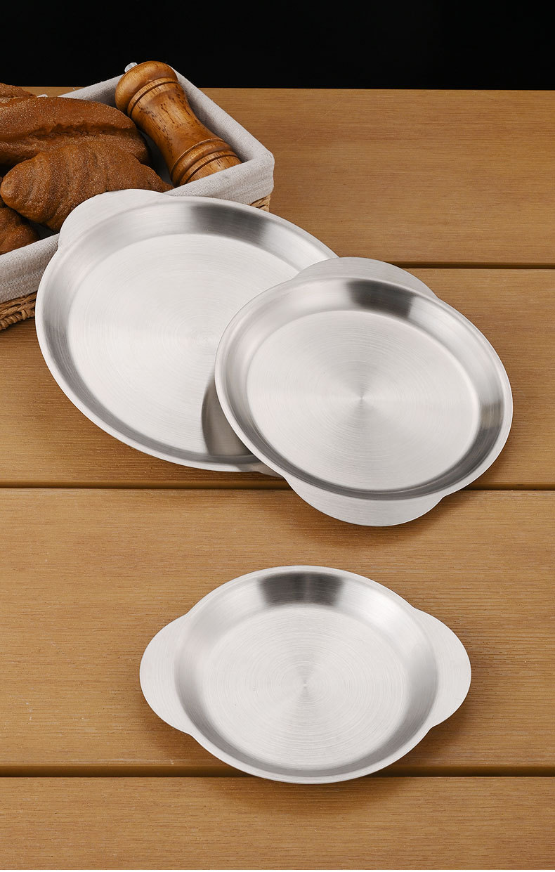 한국식 스테인레스 스틸 바이노럴 스낵 플레이트 평면 바닥 얕은 플레이트 바베큐 플레이트 결합 된 스낵 플레이트 트레이 과일 플레이트 페이스트리 플레이트