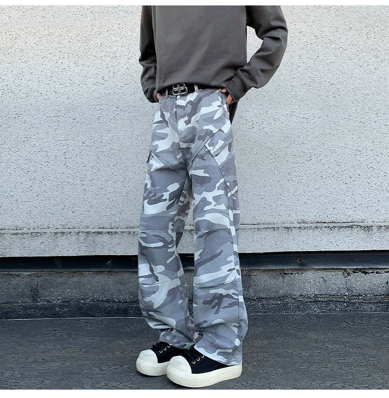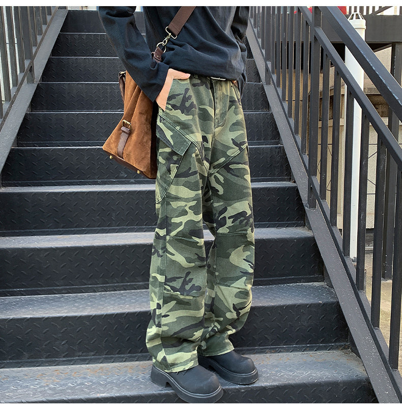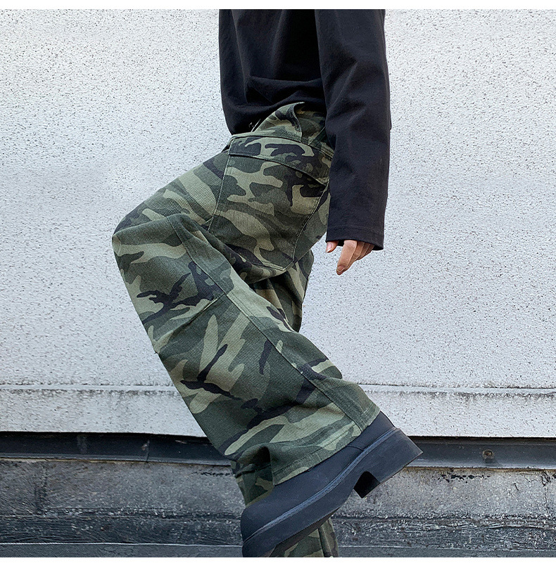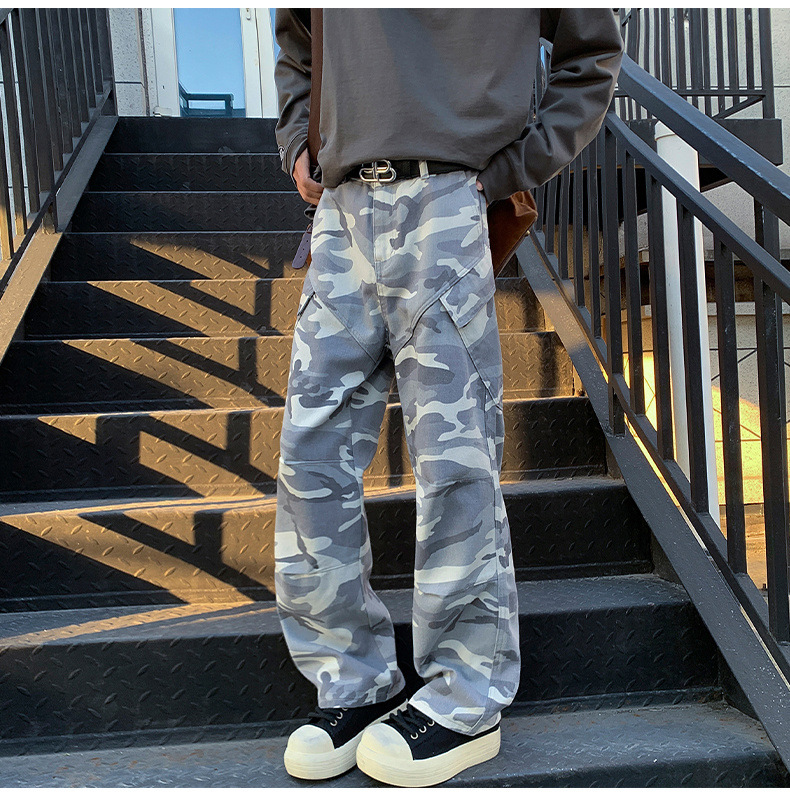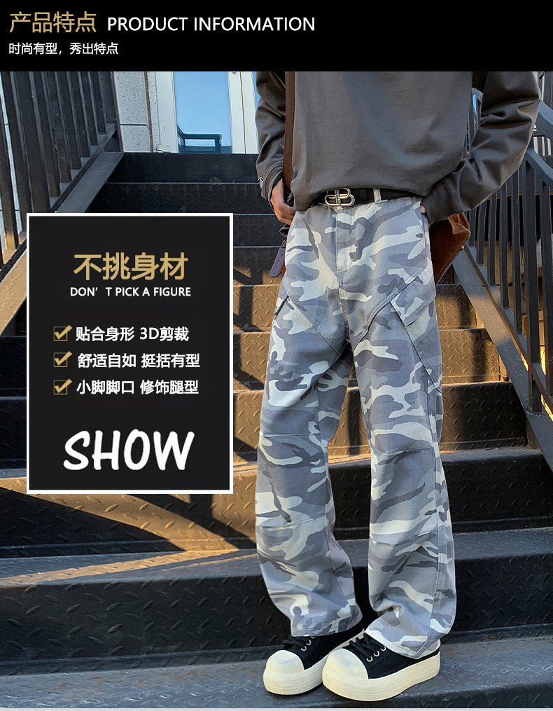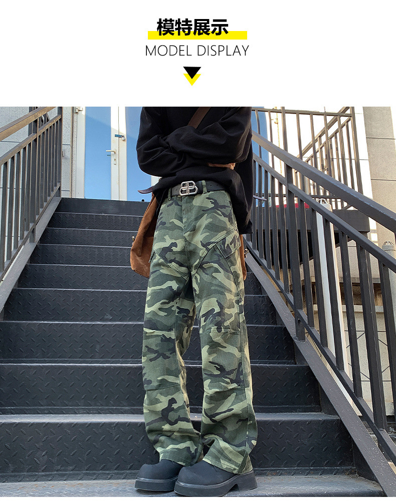 아메리칸 레트로 위장 바지 남성용 봄 하이 스트리트 트렌디 브랜드 남성 툴링 스트레이트 캐주얼 바지 남성용 청바지 트렌디스토어 가기