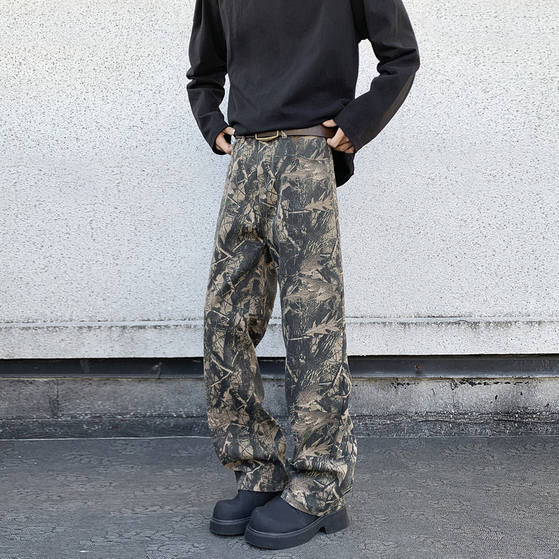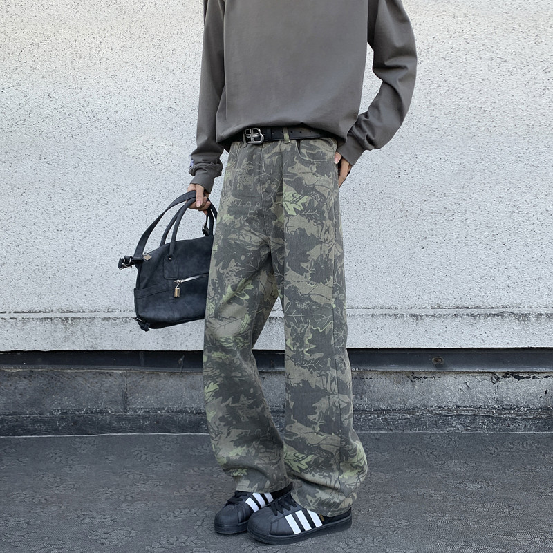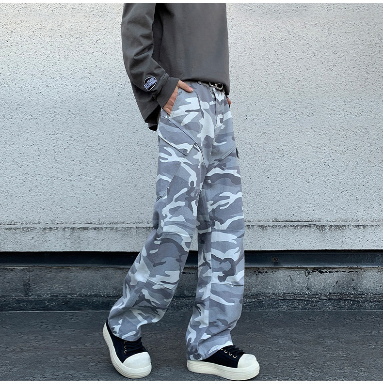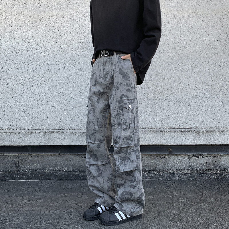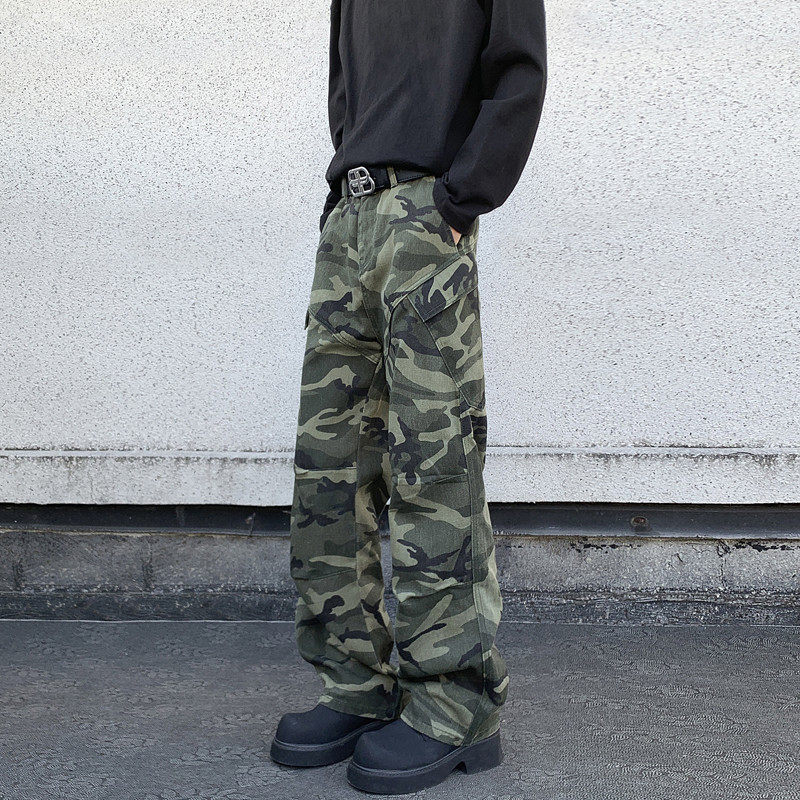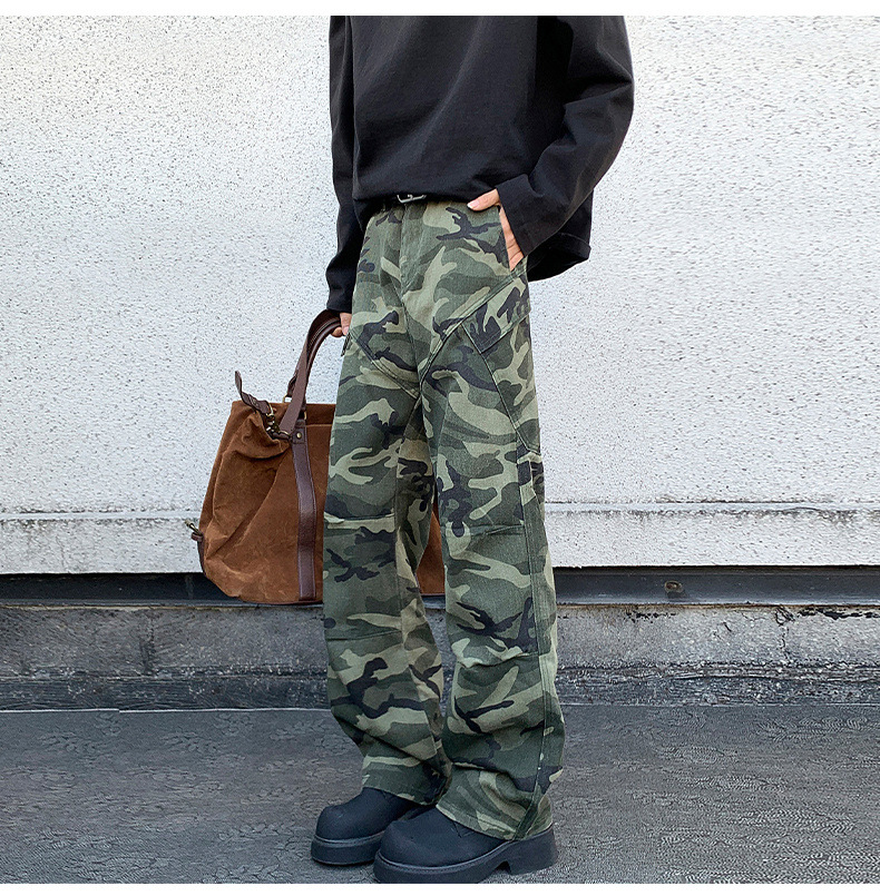 아메리칸 레트로 위장 바지 남성용 봄 하이 스트리트 트렌디 브랜드 남성 툴링 스트레이트 캐주얼 바지 남성용 청바지 트렌디스토어 가기
