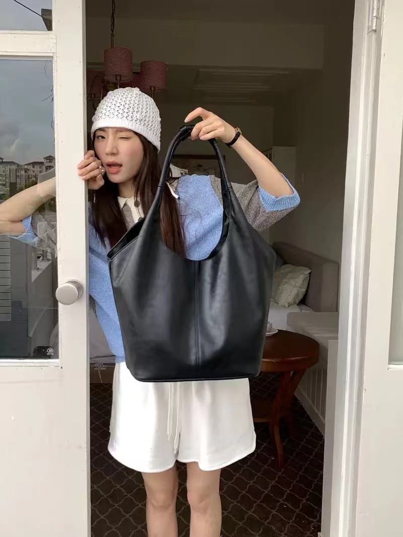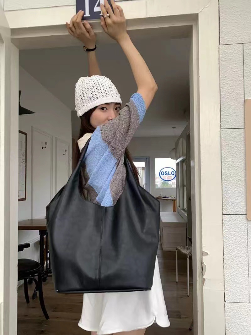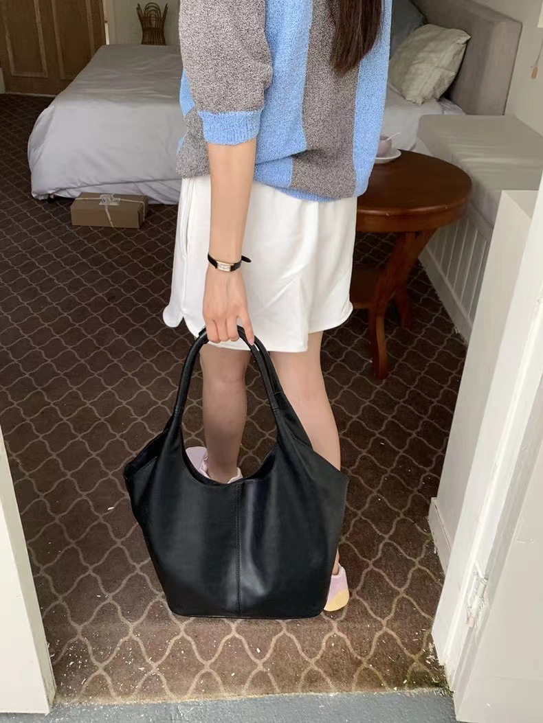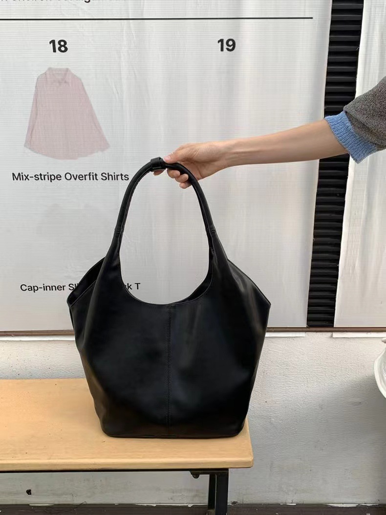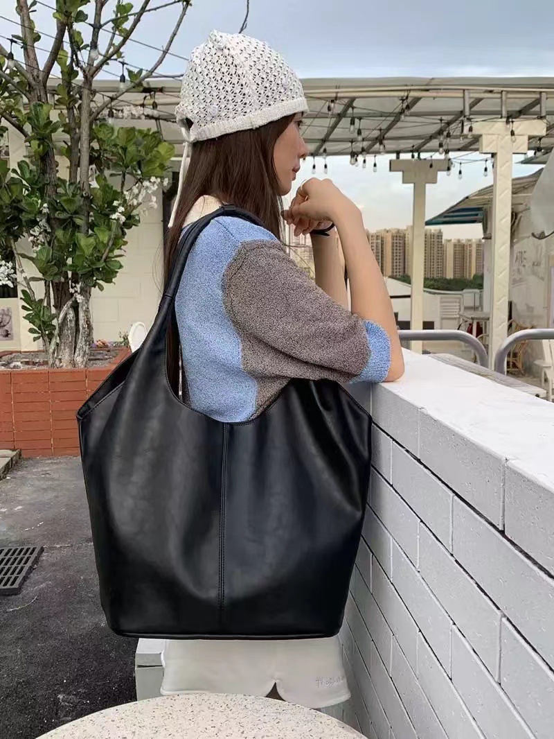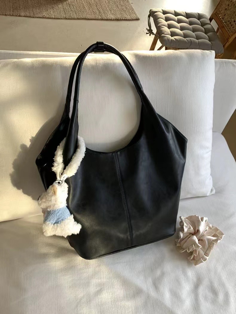 한국 작은 크라우드 소싱 여성의 2024 새로운 이른 가을 간단한 검은 모든 매치 토트 대용량 어깨 언더암 가방스토어 가기