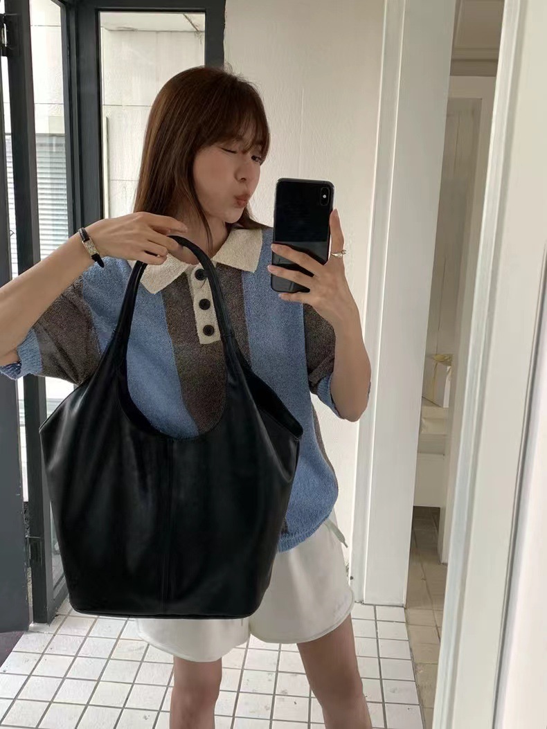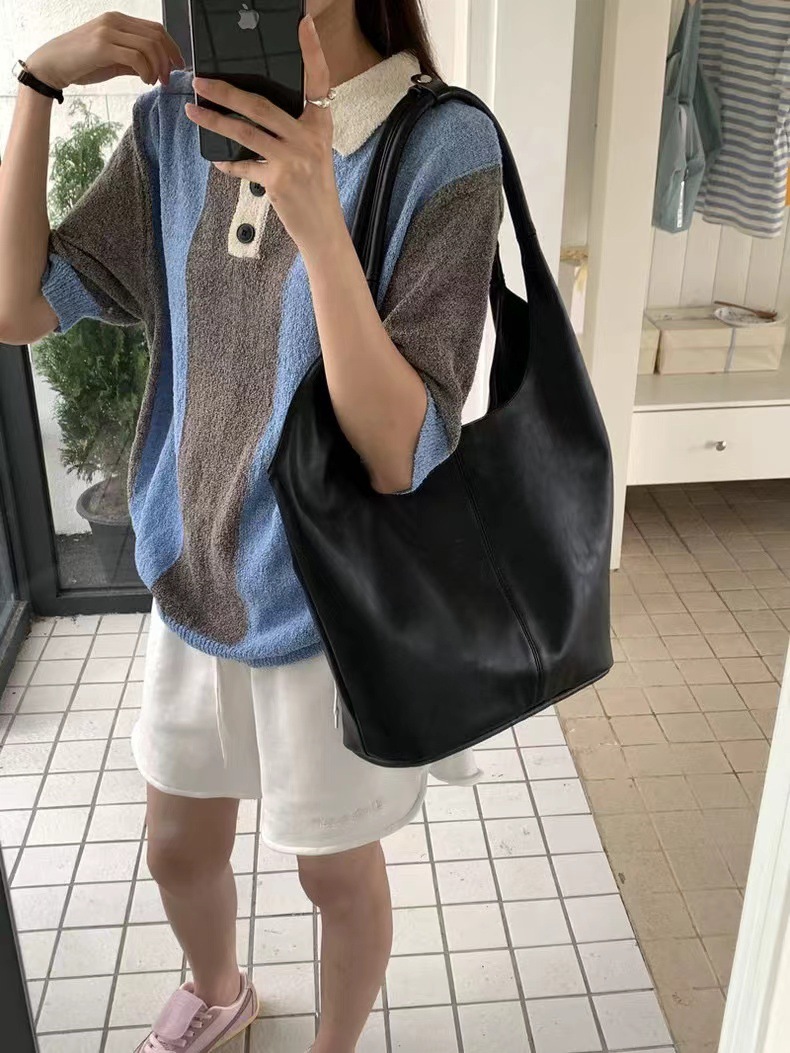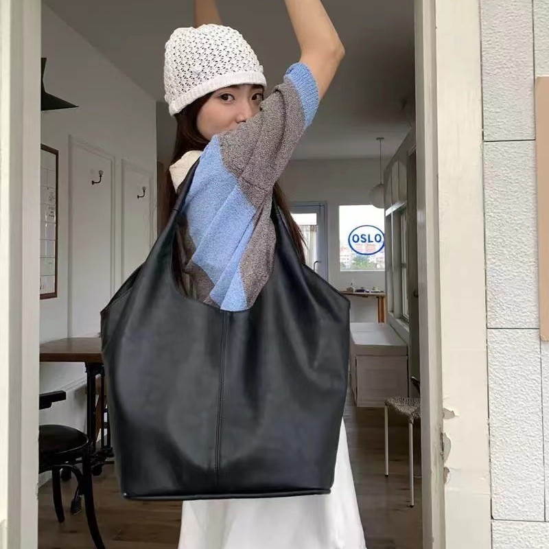 한국 작은 크라우드 소싱 여성의 2024 새로운 이른 가을 간단한 검은 모든 매치 토트 대용량 어깨 언더암 가방