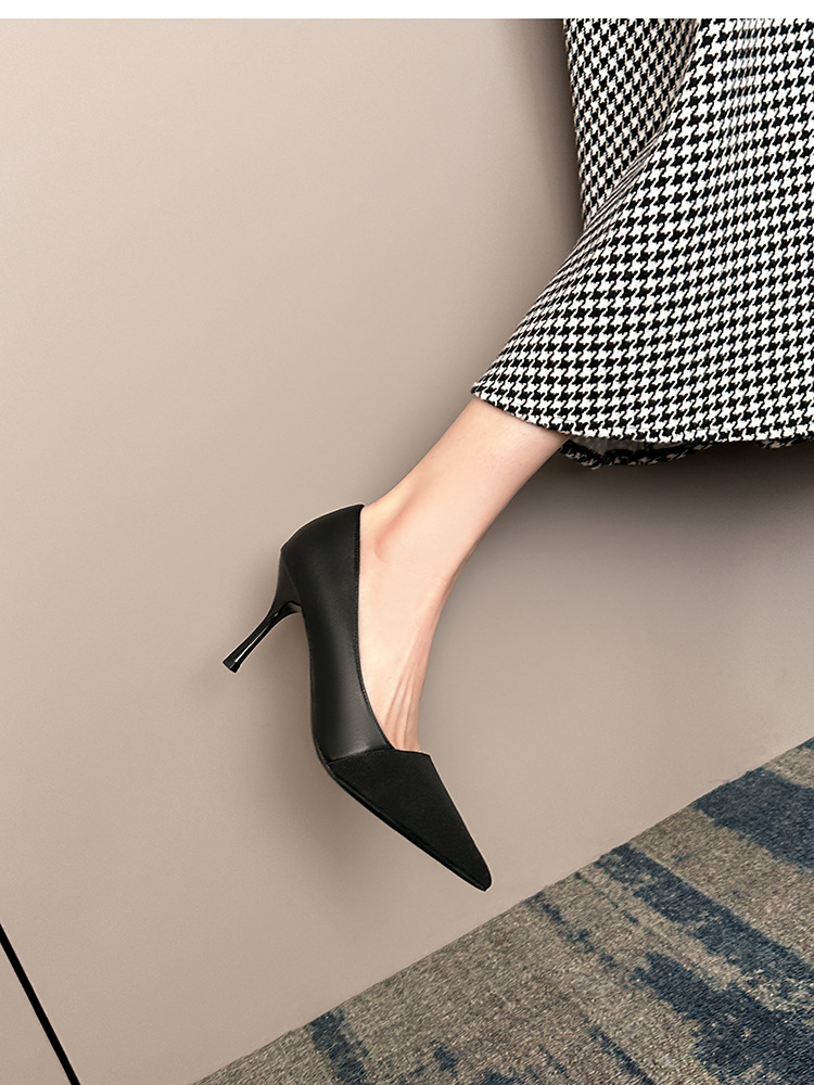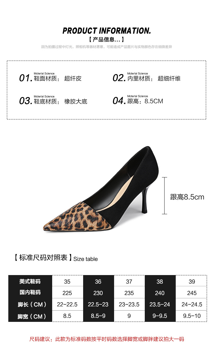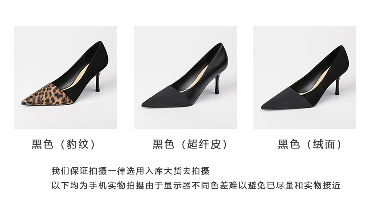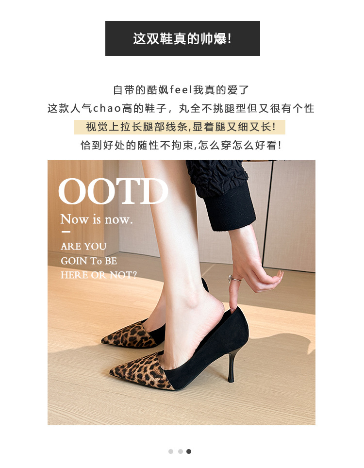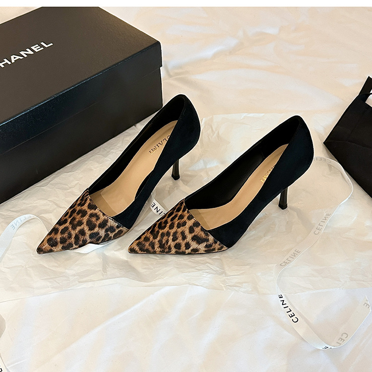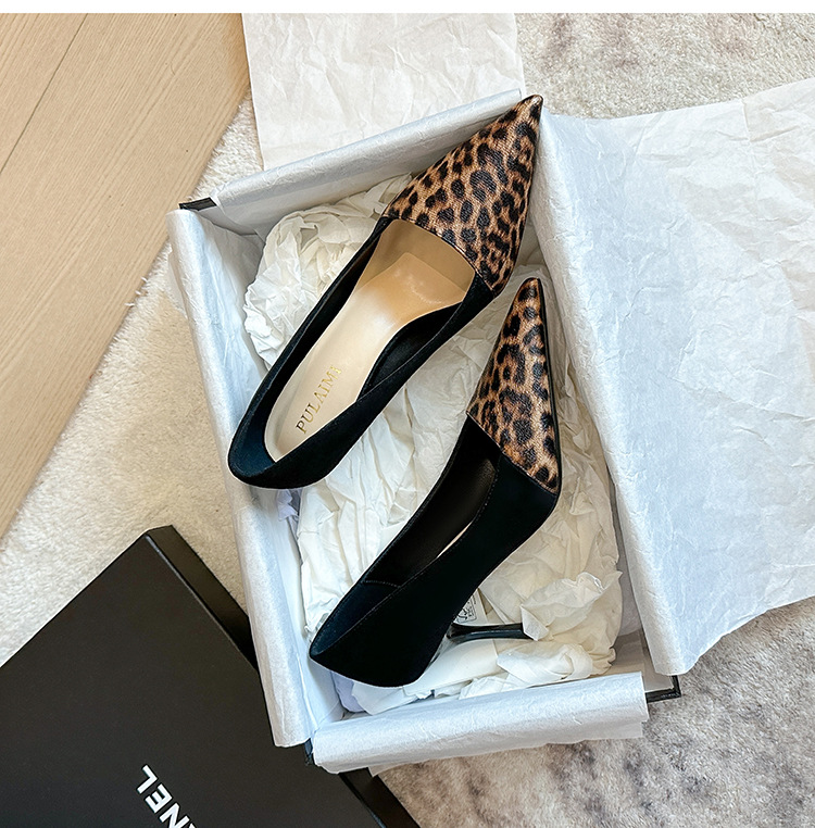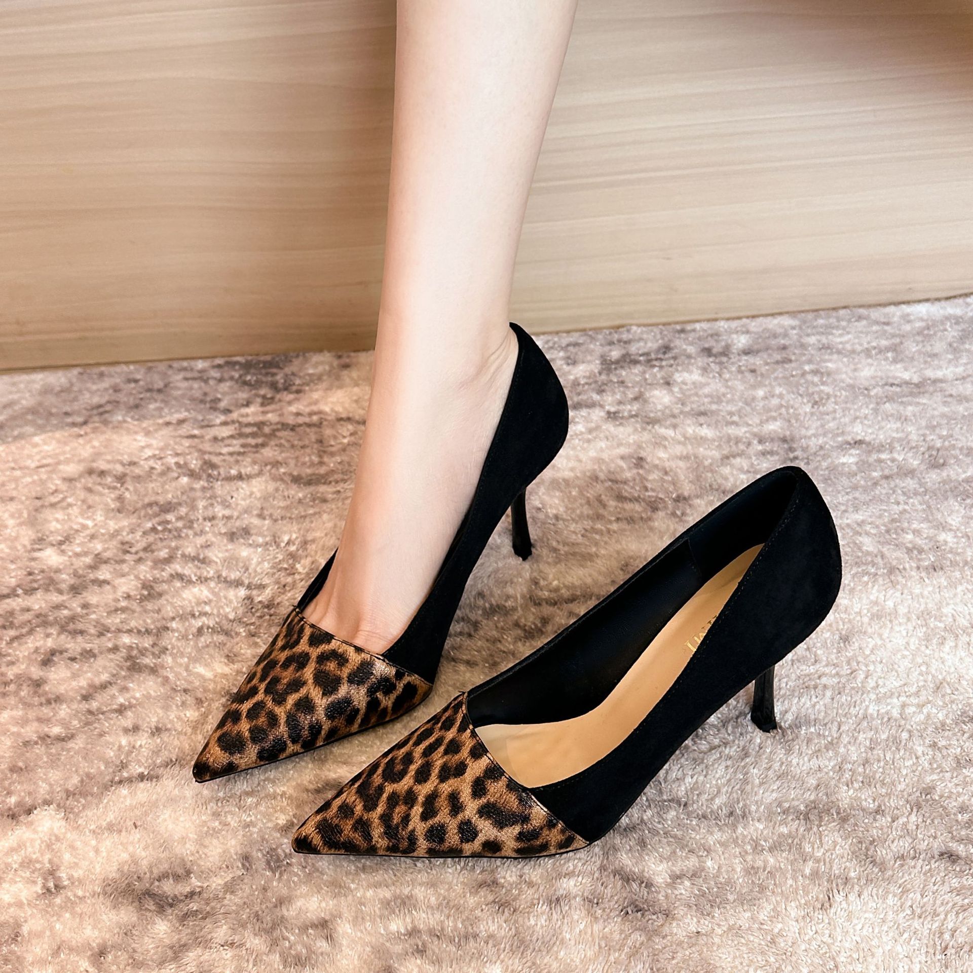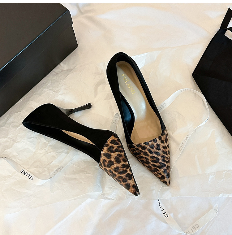 레오파드 무늬 결합 된 뾰족한 하이힐 2025 새로운 스틸레토 힐 섹시한 우아한 프랑스 스타일 Baotou 싱글 레이어 신발 여성 와이드 버전스토어 가기