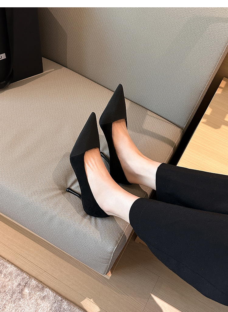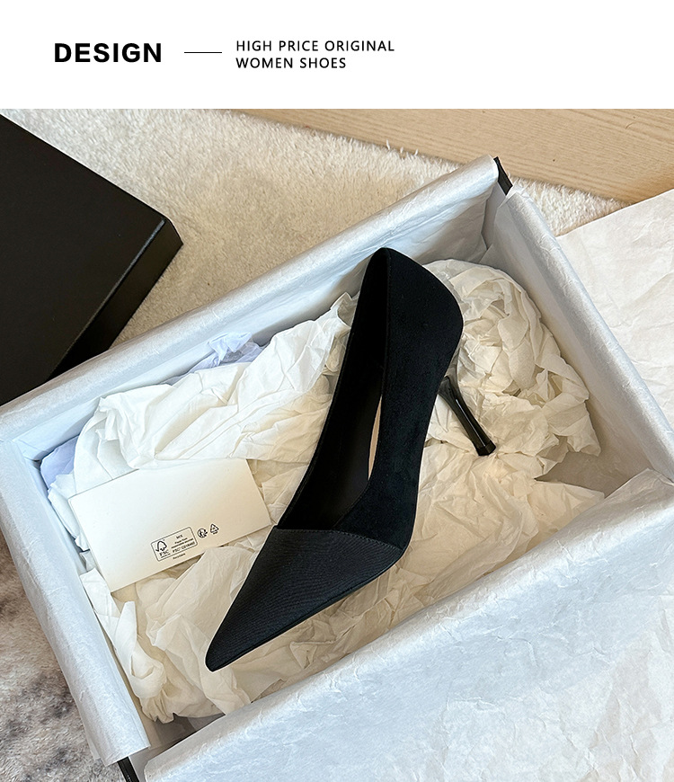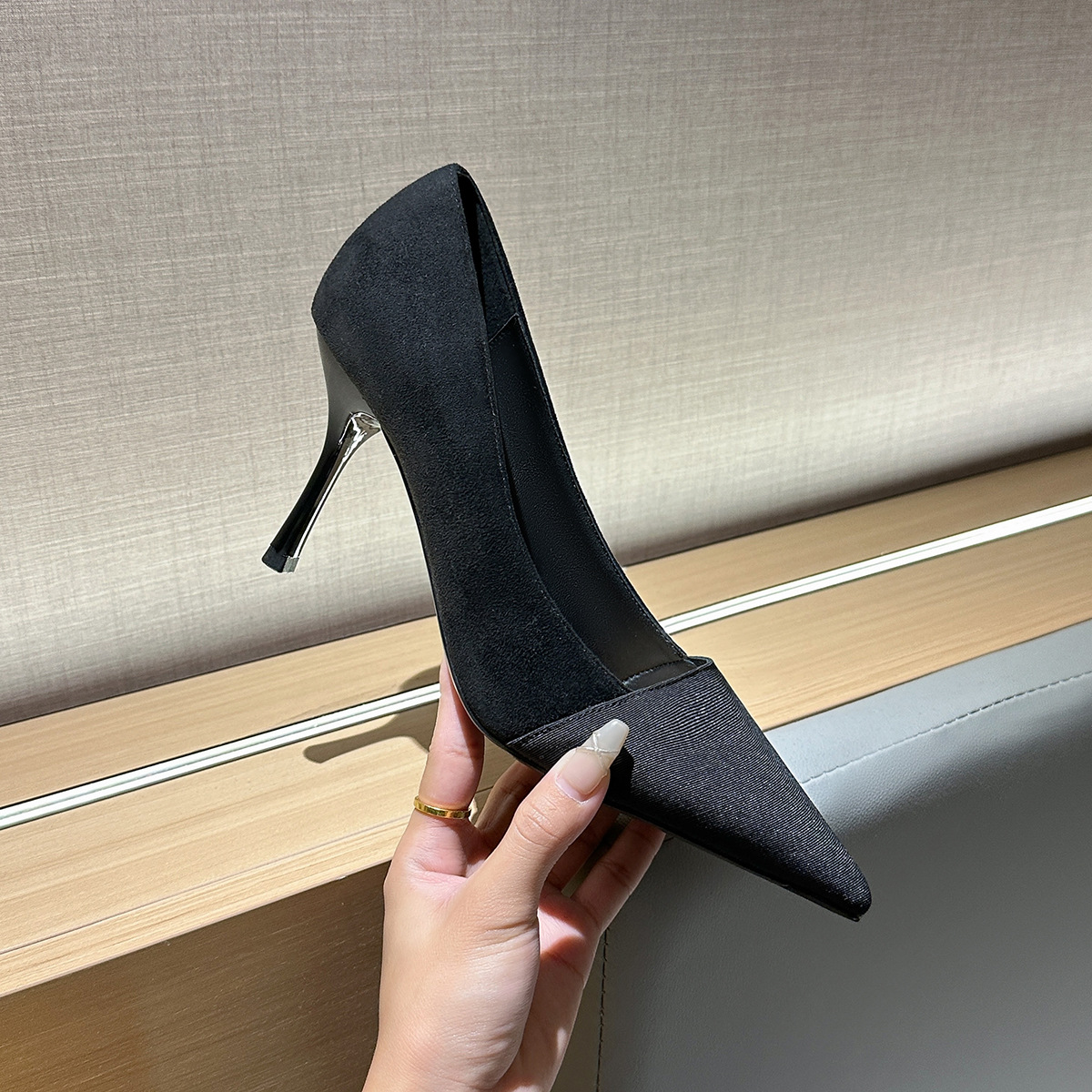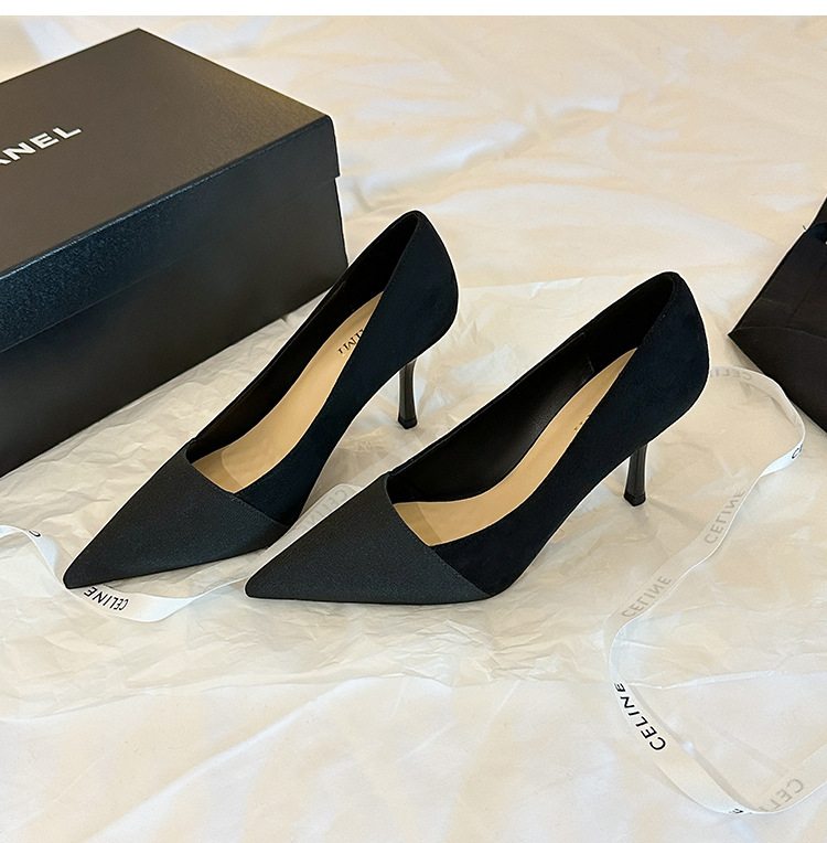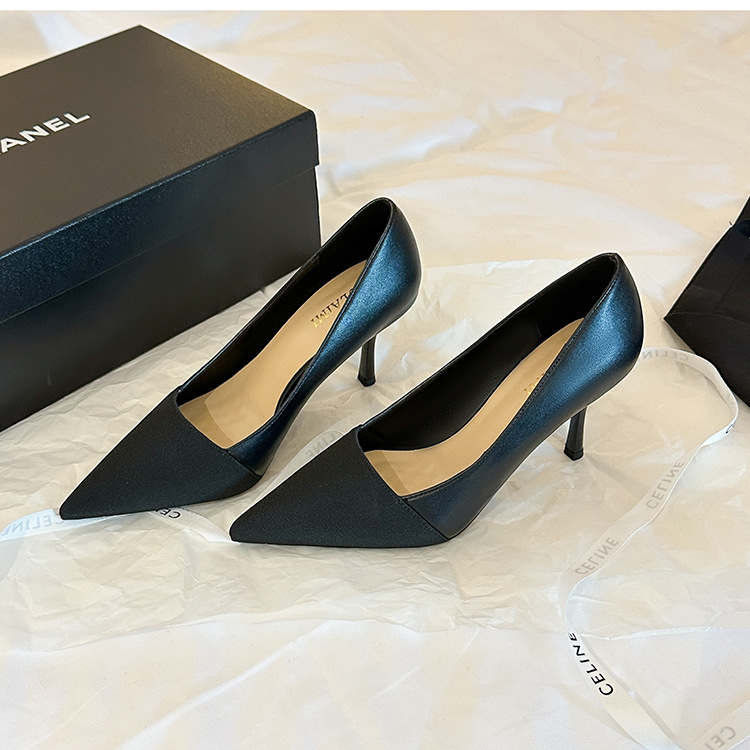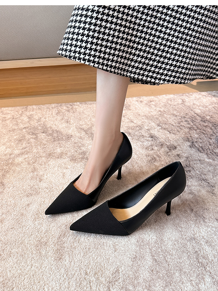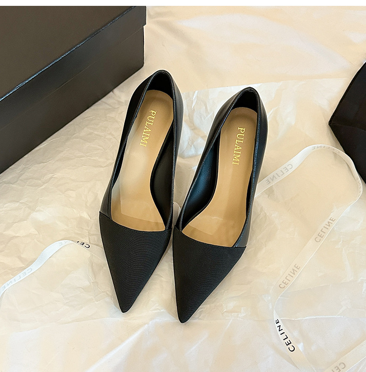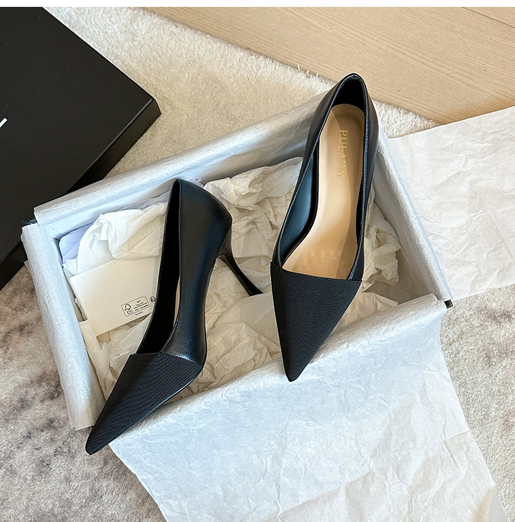 레오파드 무늬 결합 된 뾰족한 하이힐 2025 새로운 스틸레토 힐 섹시한 우아한 프랑스 스타일 Baotou 싱글 레이어 신발 여성 와이드 버전스토어 가기