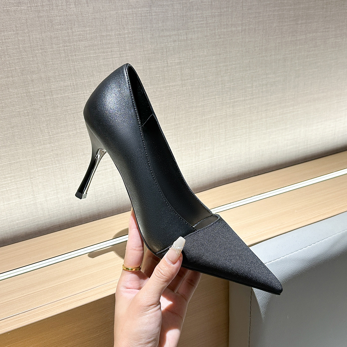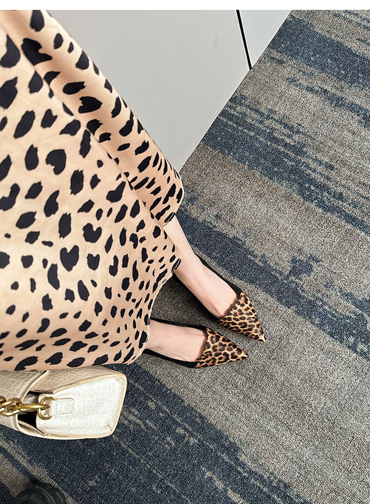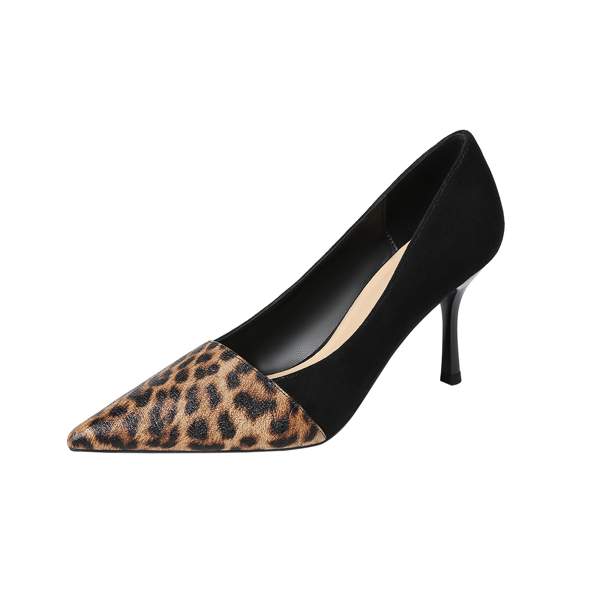 레오파드 무늬 결합 된 뾰족한 하이힐 2025 새로운 스틸레토 힐 섹시한 우아한 프랑스 스타일 Baotou 싱글 레이어 신발 여성 와이드 버전