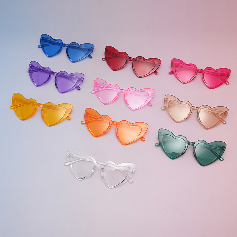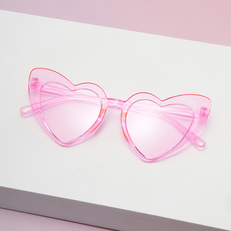 2025 프레임리스 베벨이 결합 된 사랑 모양의 어린이 선글라스 젤리 베이비 선글라스 유럽과 미국 복숭아 심장 어린이 안경스토어 가기