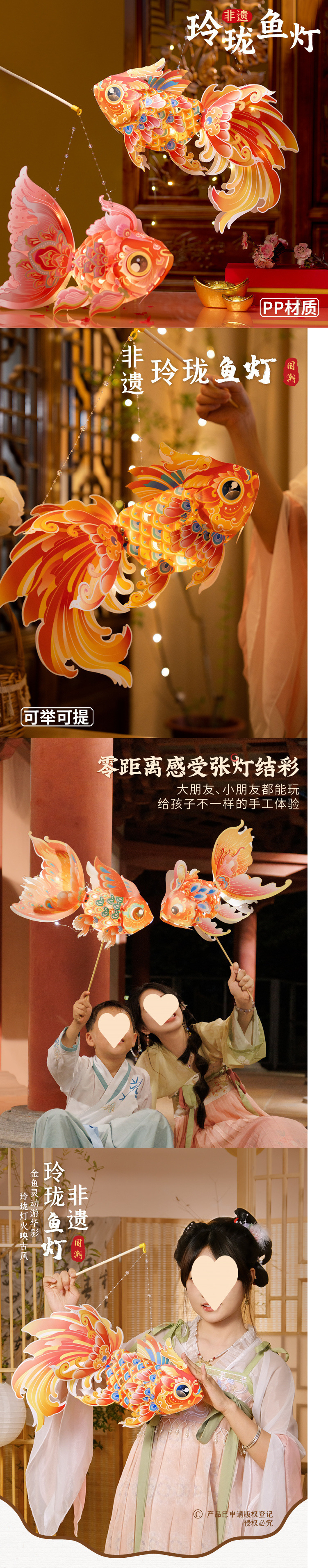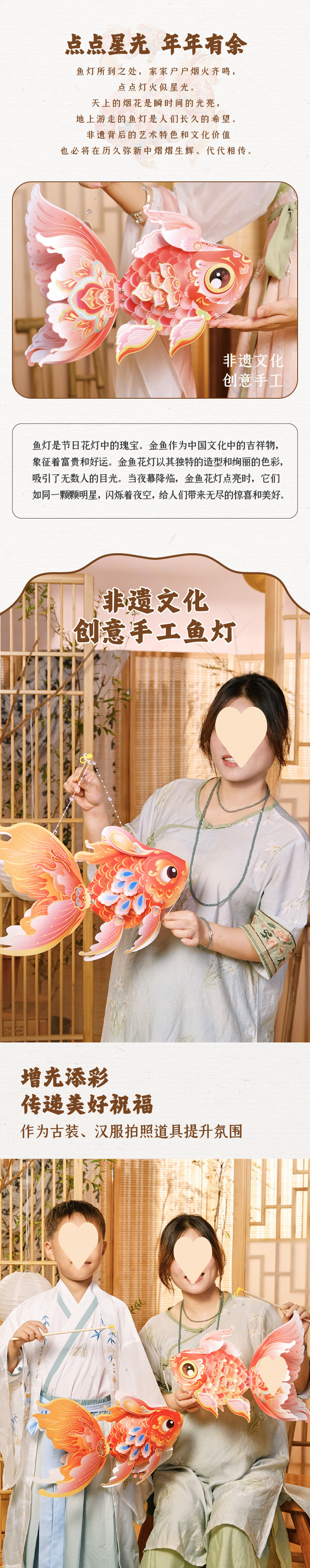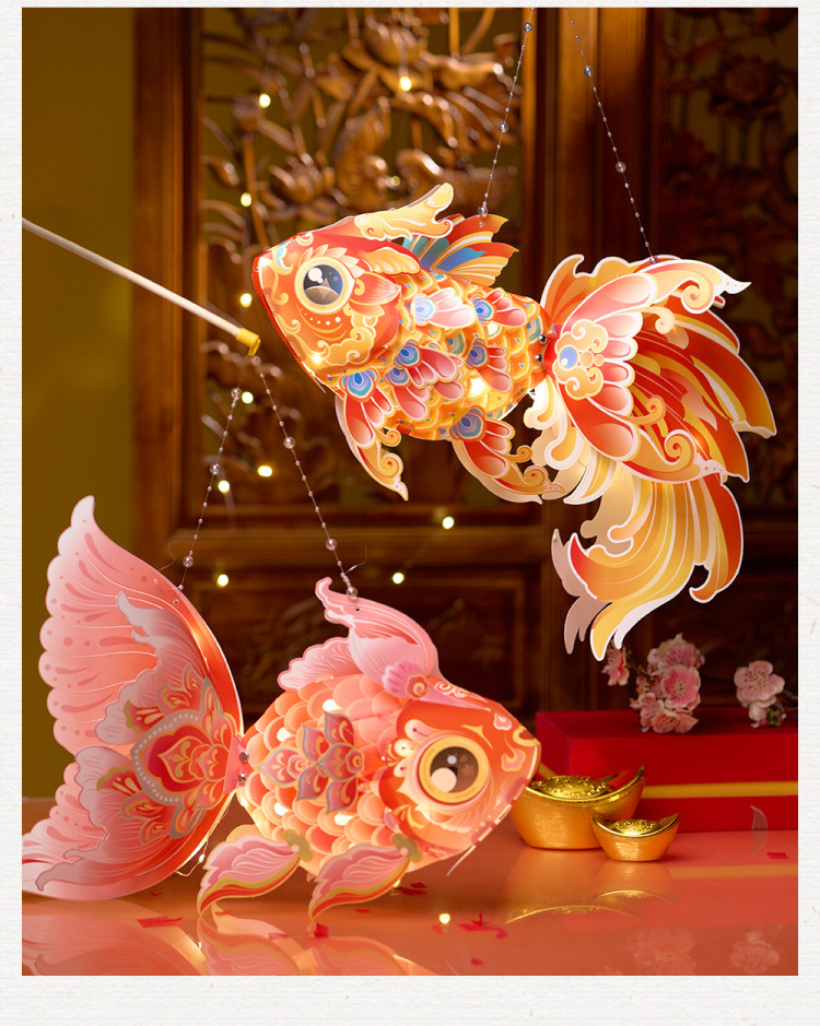 뱀 새해 비 레거시 절묘한 생선 등불 수제 재료 어린이 등불 골동품 Koi 금붕어 등불