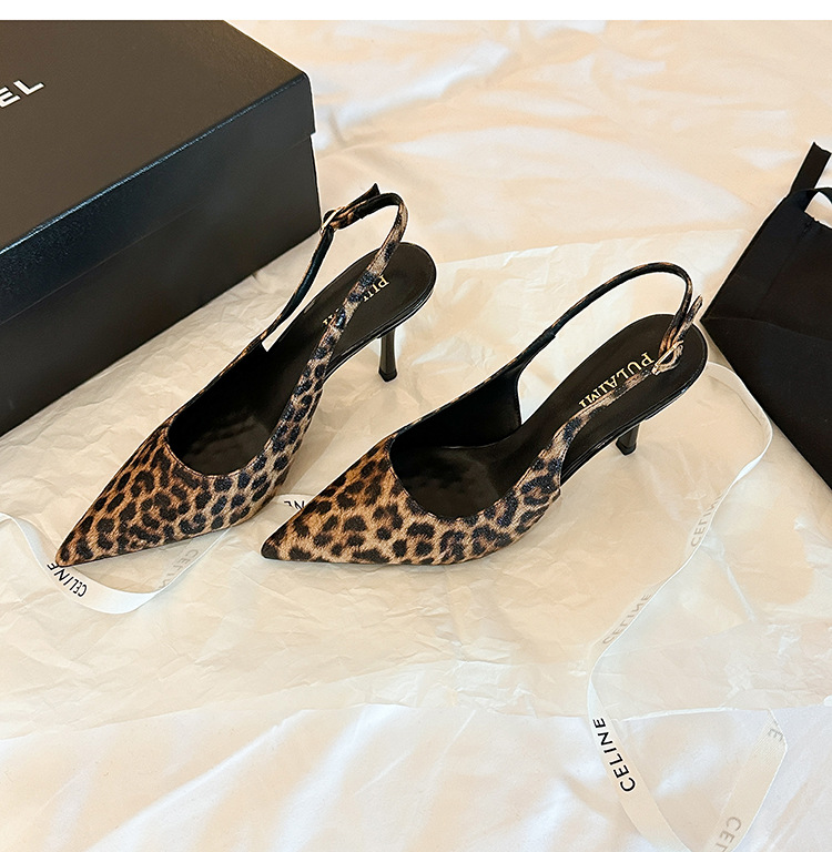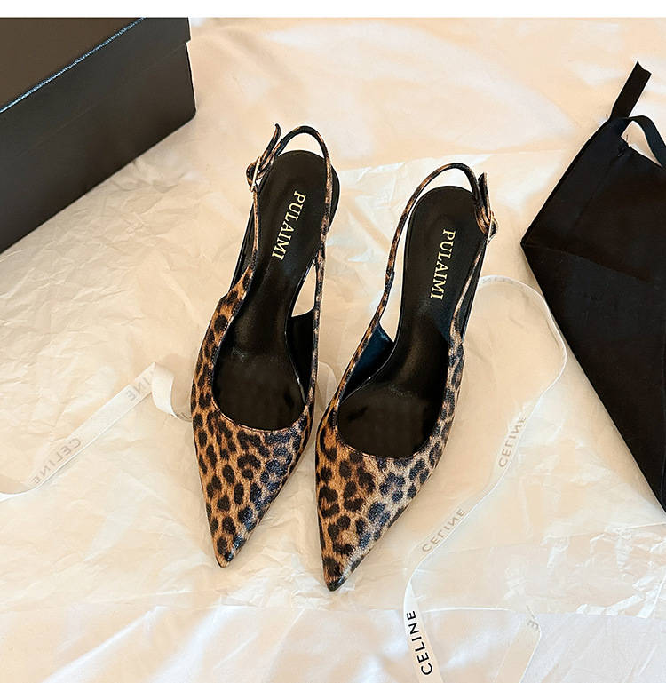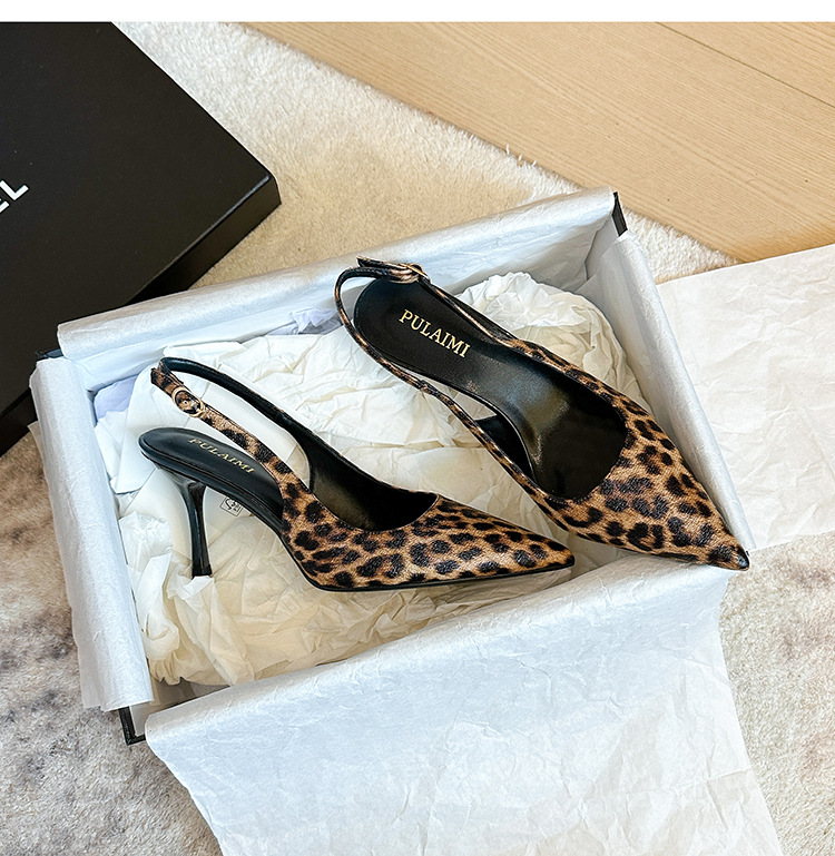 2025 새로운 레오파드 무늬 가죽 뾰족한 하이힐 스틸레토 힐 얕은 입 유행 섹시한 빈 신발 반 여성용 슬리퍼스토어 가기