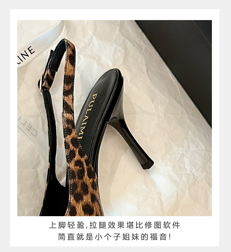 2025 새로운 레오파드 무늬 가죽 뾰족한 하이힐 스틸레토 힐 얕은 입 유행 섹시한 빈 신발 반 여성용 슬리퍼