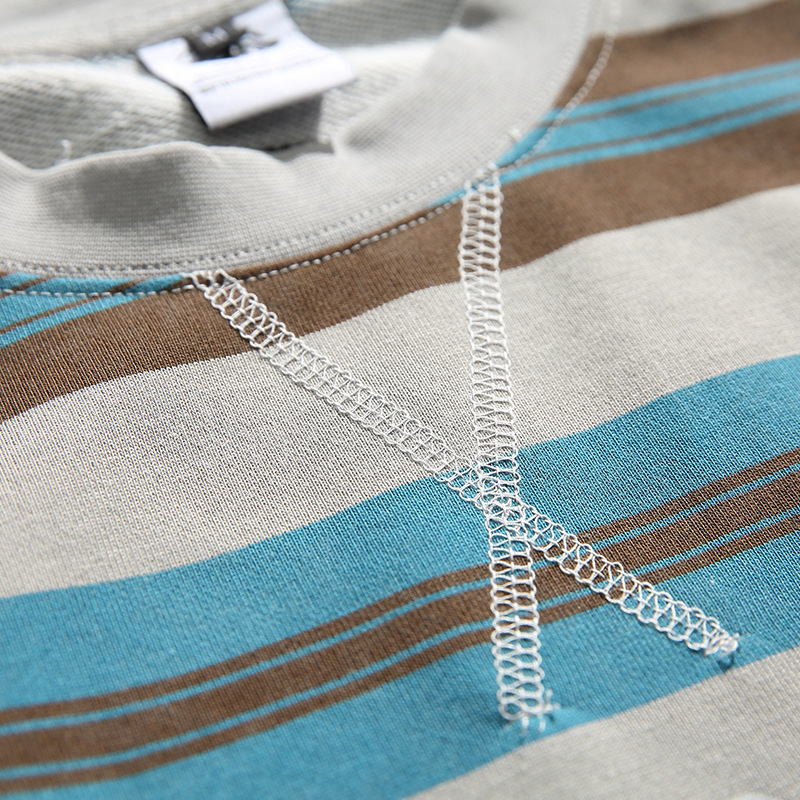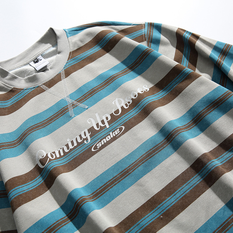 남부 여름 원피스 2025 봄 새로운 일본 빈티지 대조 둥근 목 땀 유행 커플 캐주얼 탑
