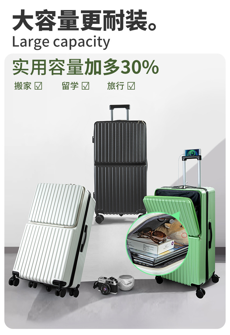 전면 개방형 트렁크 5륜 28inch 대용량 다기능 학생 트롤리 튼튼하고 내구성이 뛰어난 비밀번호 상자 재고 있음스토어 가기