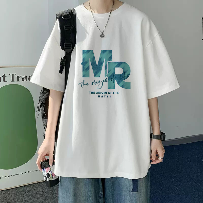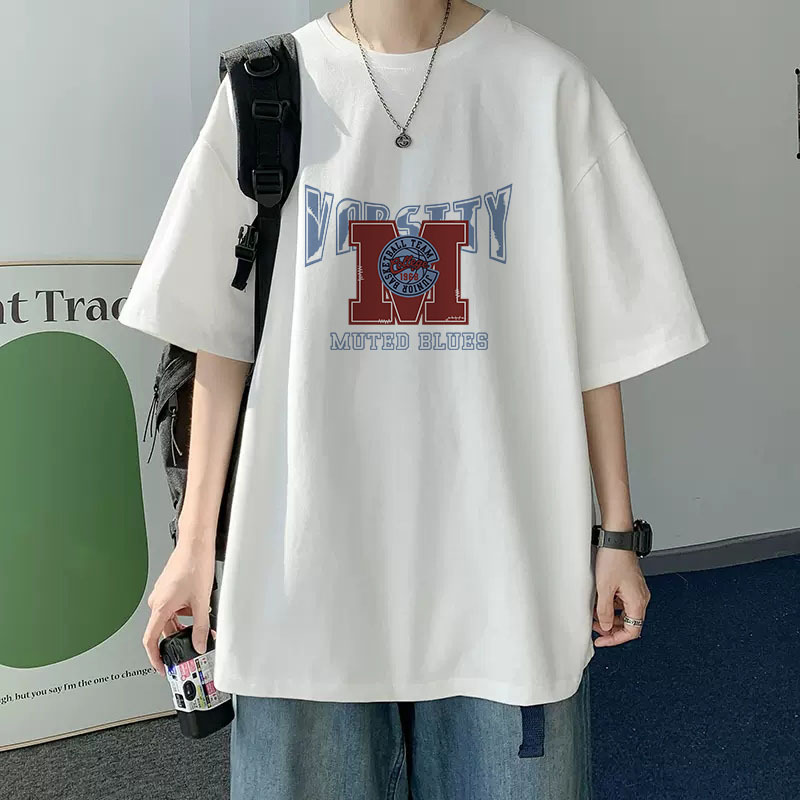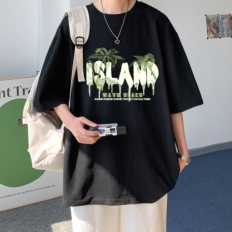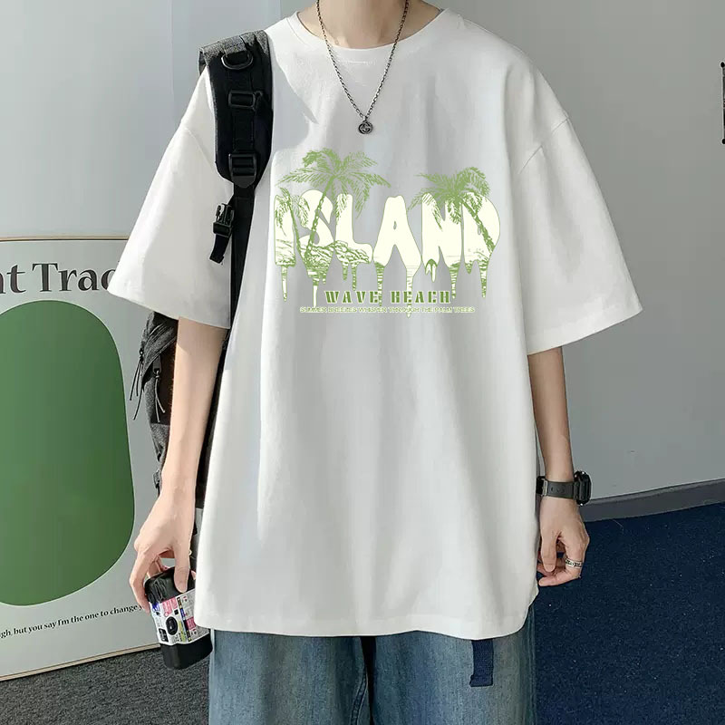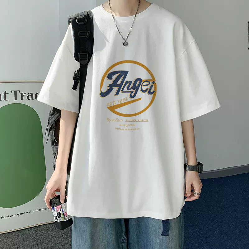 헤비 코튼 반팔 티셔츠 남자 2025 년 새 여름 느슨한 유행 브랜드 트렌디 인쇄 올 매치 하이 엔드 탑스토어 가기