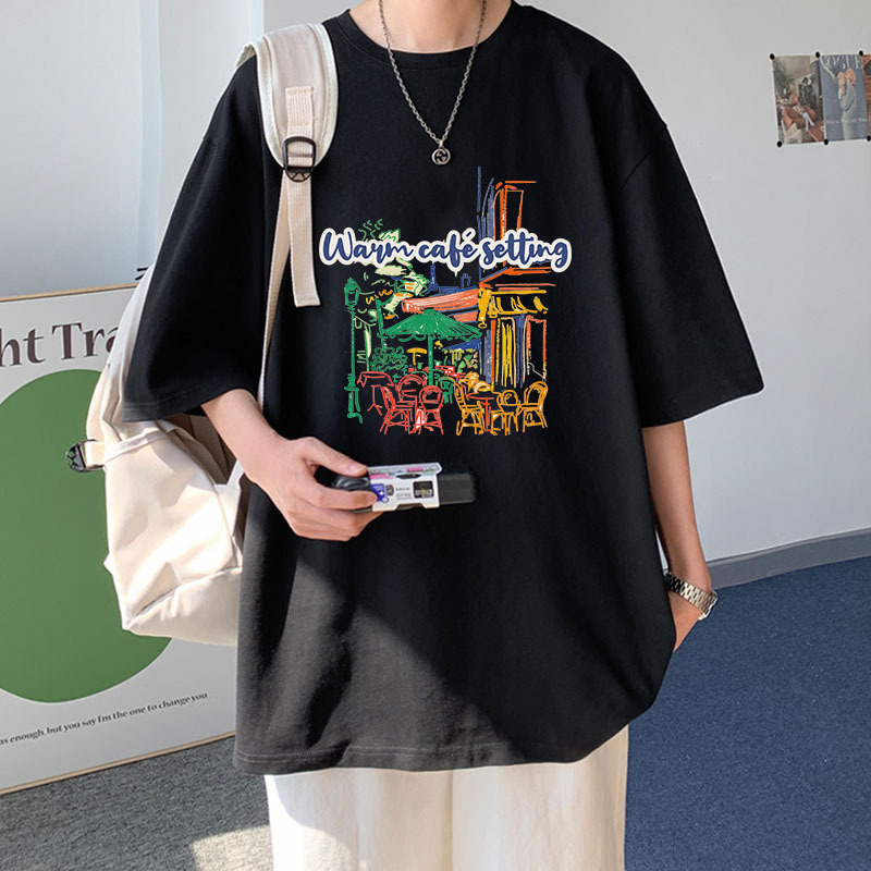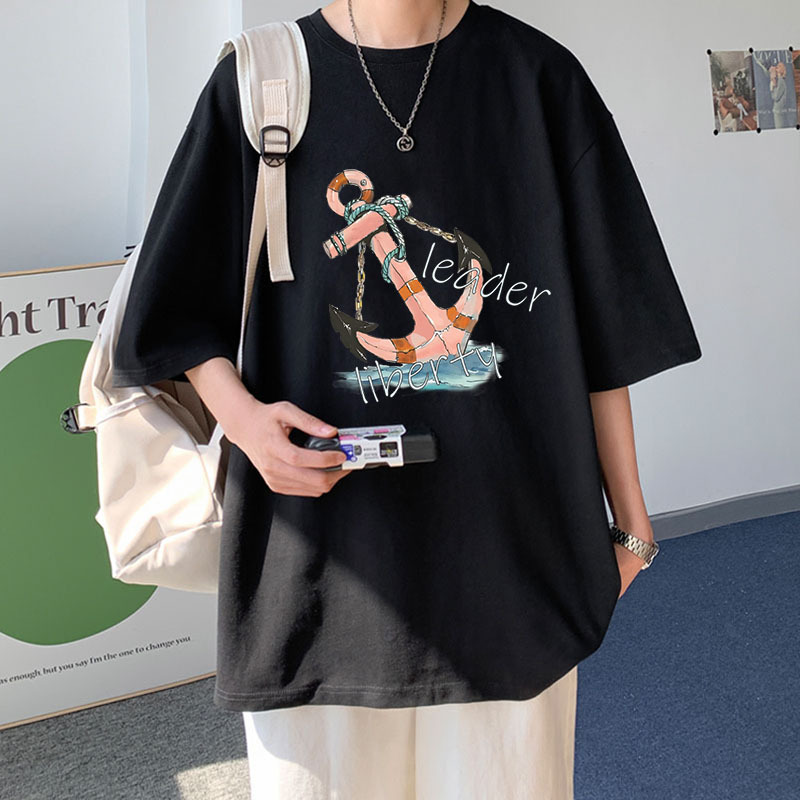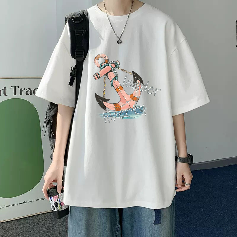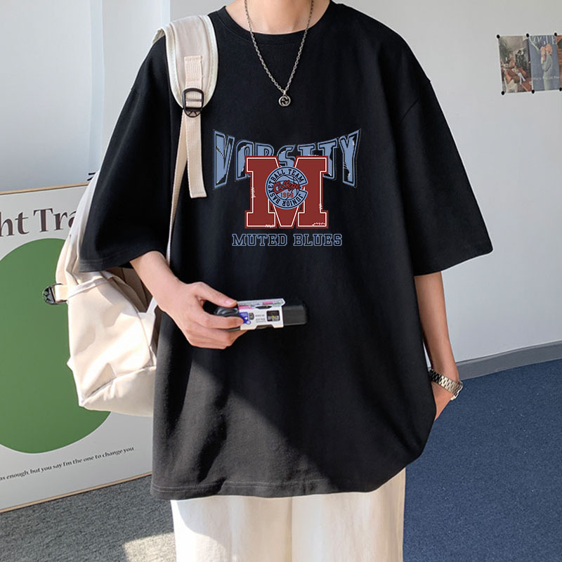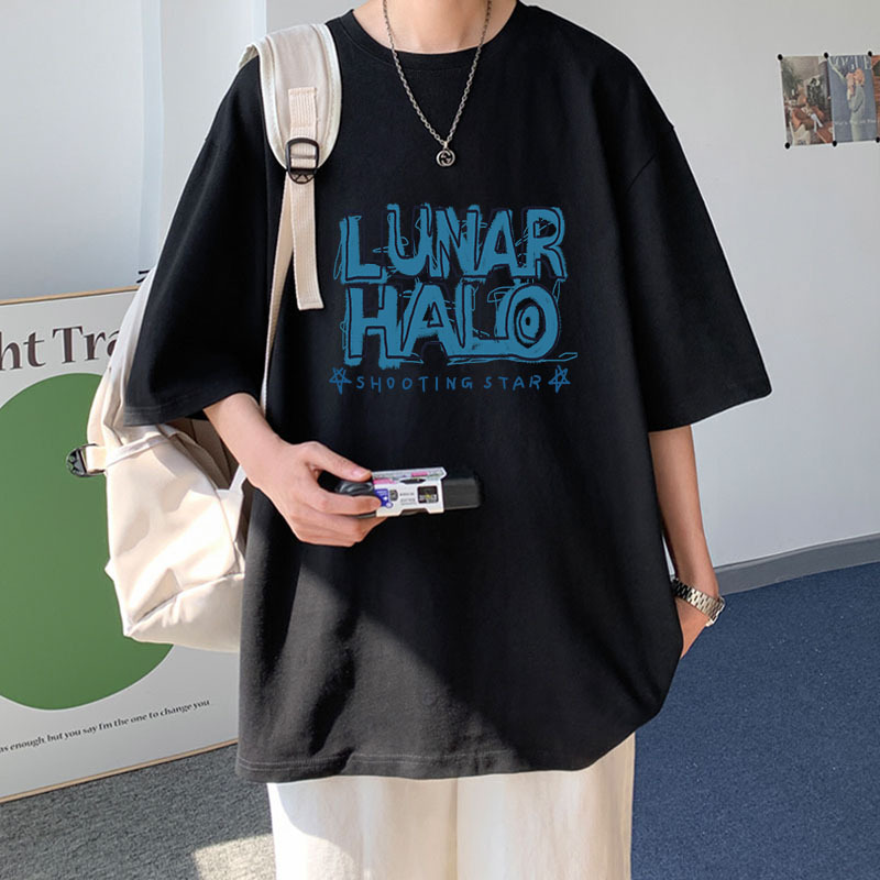 헤비 코튼 반팔 티셔츠 남자 2025 년 새 여름 느슨한 유행 브랜드 트렌디 인쇄 올 매치 하이 엔드 탑스토어 가기